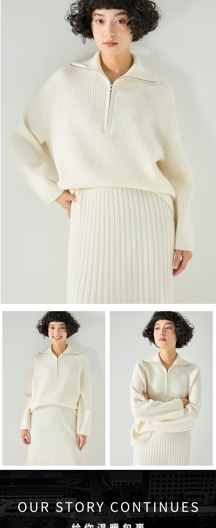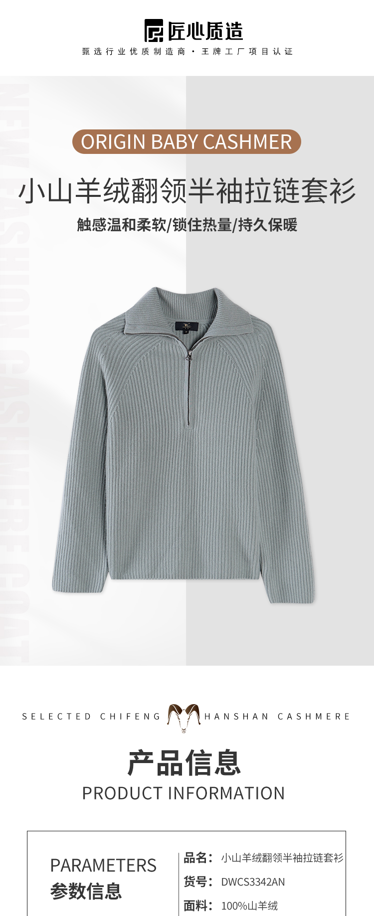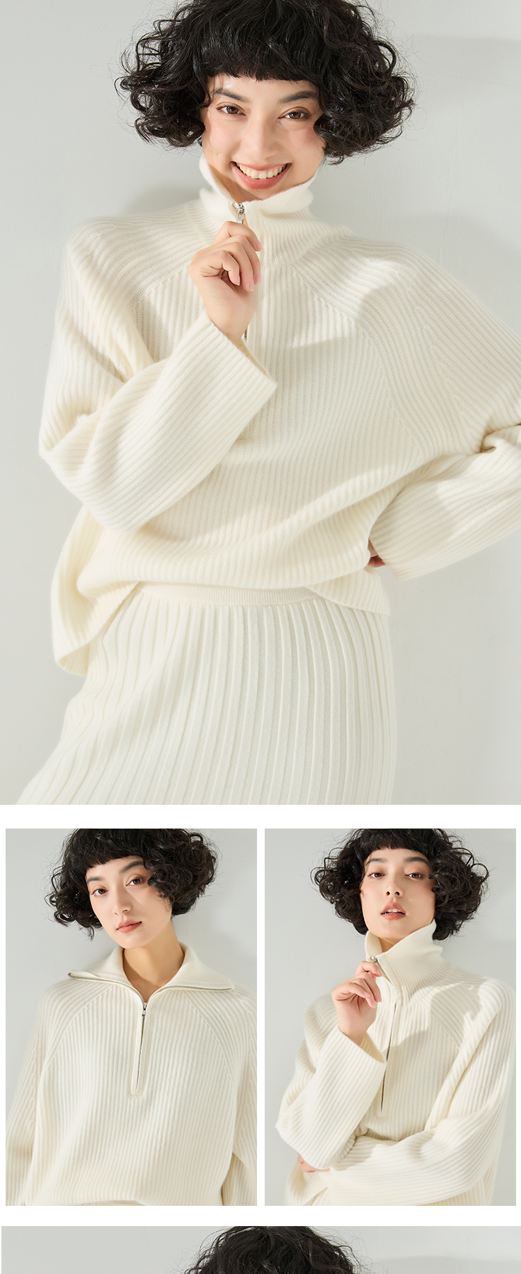 东黎 • 小山羊绒女士秋冬拉链翻领半胸套头衫 3342