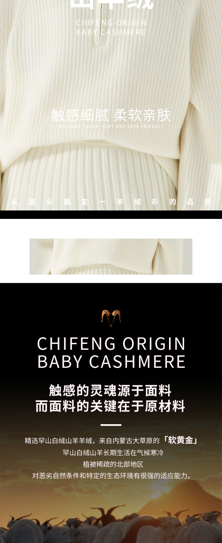 东黎羊绒是赤峰东荣集团自主品牌,自有牧场/羊绒制品全产业链优势,实现了羊绒从“牧场”到“商场”的华丽转变。