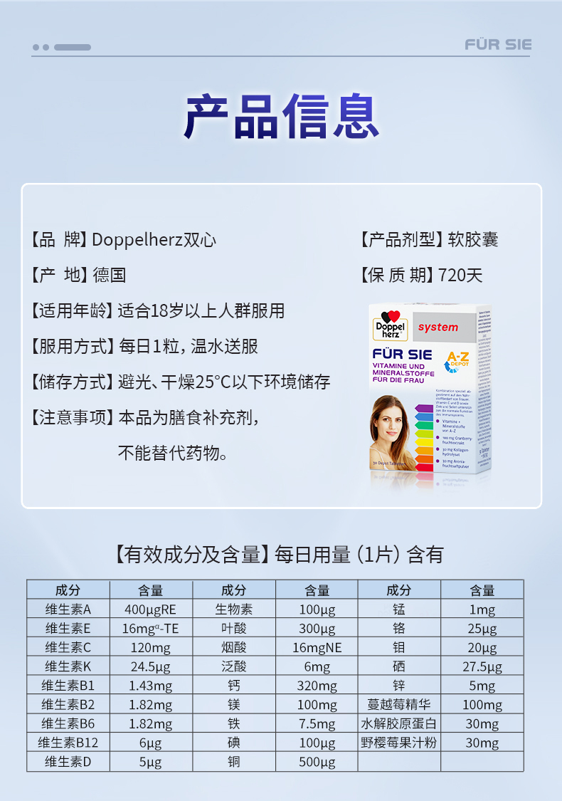 【德国双心】进口女士复合维生素女性多维矿物质缓释综合营养
