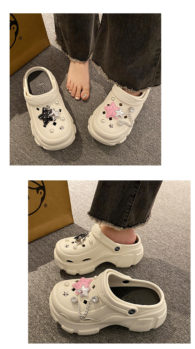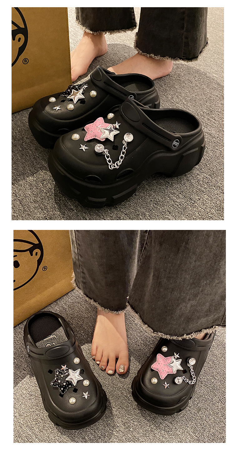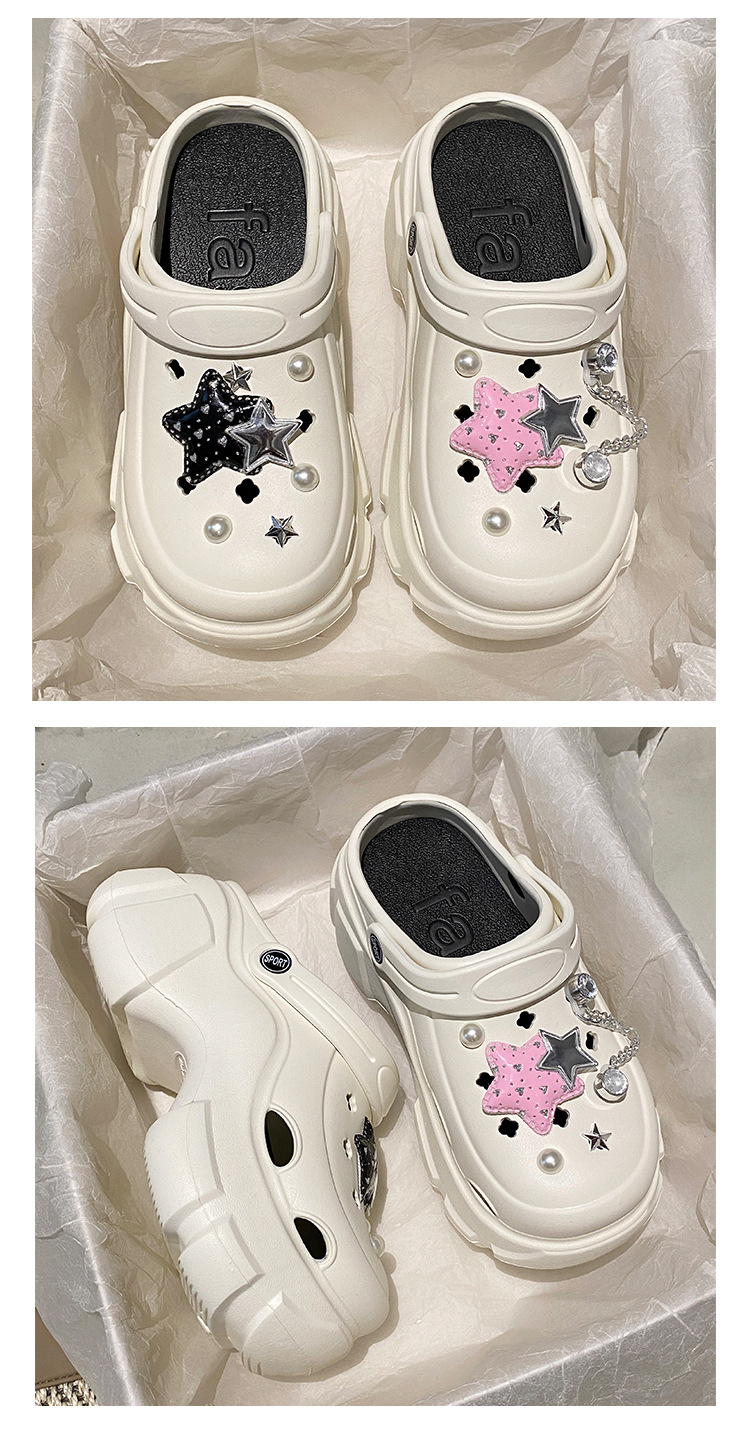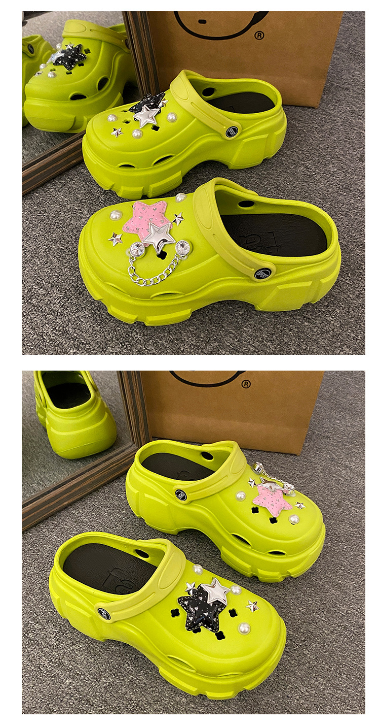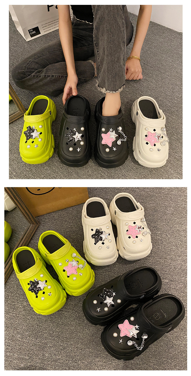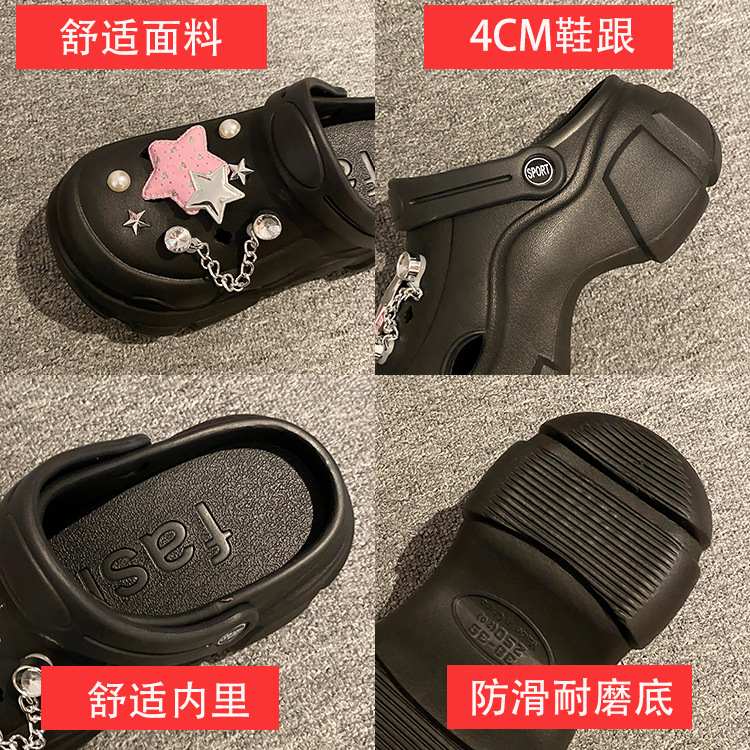 厚底洞洞鞋女夏季24新款外穿增高防滑踩屎感沙滩包头学生拖鞋卡通