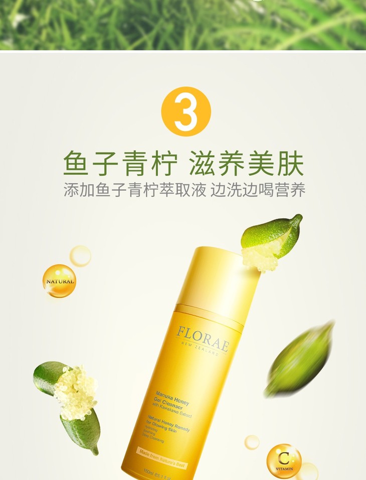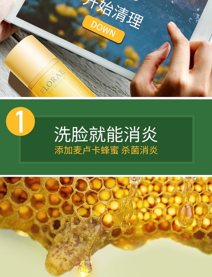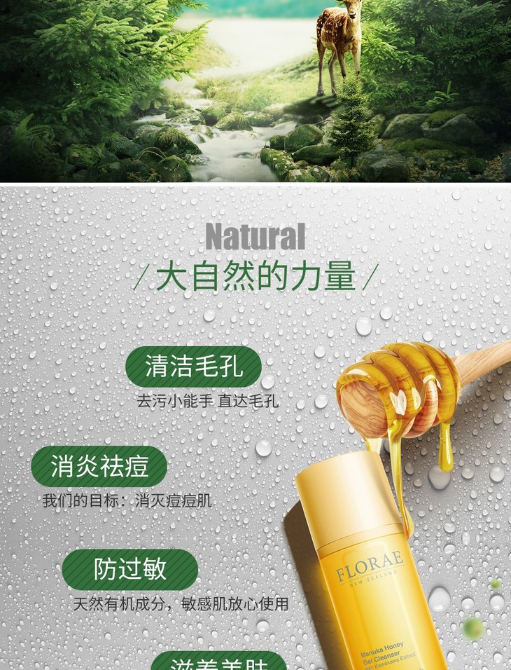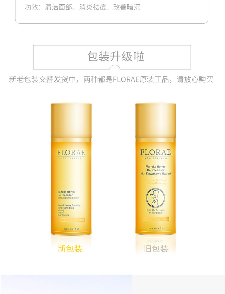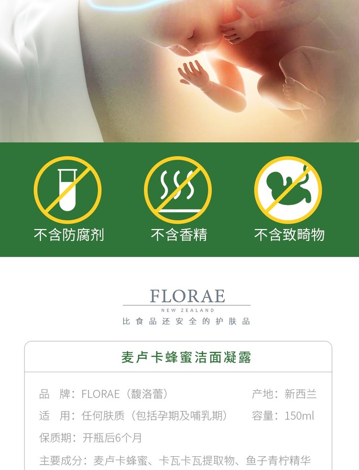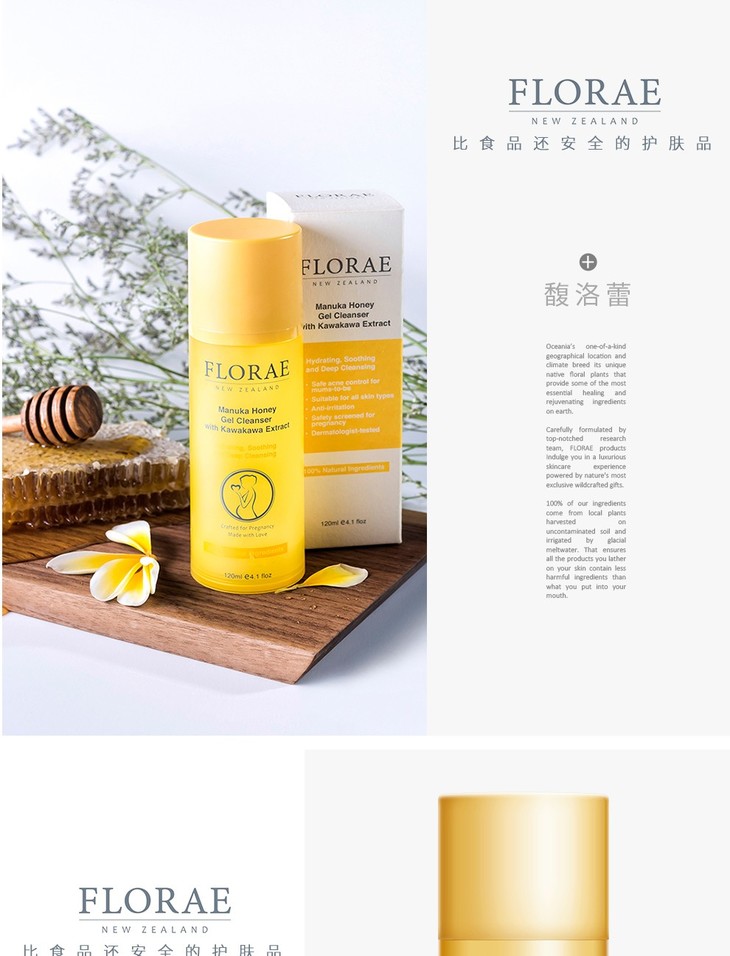 【保税仓】新西兰原装进口Florae馥洛蕾孕妇控油洁面乳深层清洁蜂蜜洗面奶