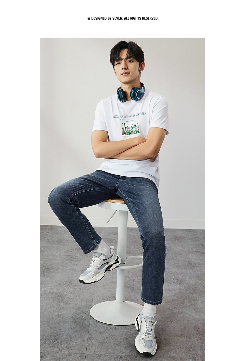 【保形索罗纳】柒牌短袖T恤男2024夏季新款花卉印花休闲圆领上衣 126T73460