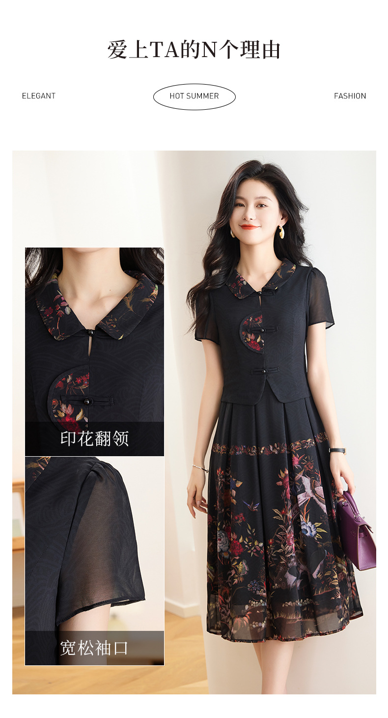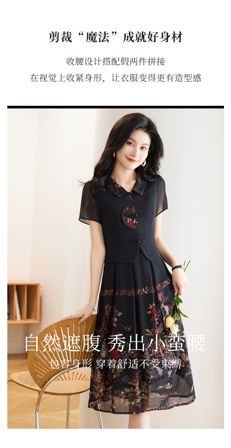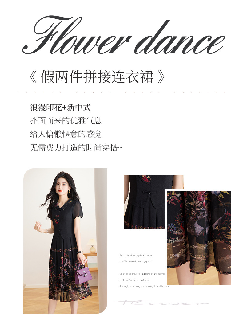 时尚气质拼接,印花假两件连衣裙QYM-TB-FD1454-Y