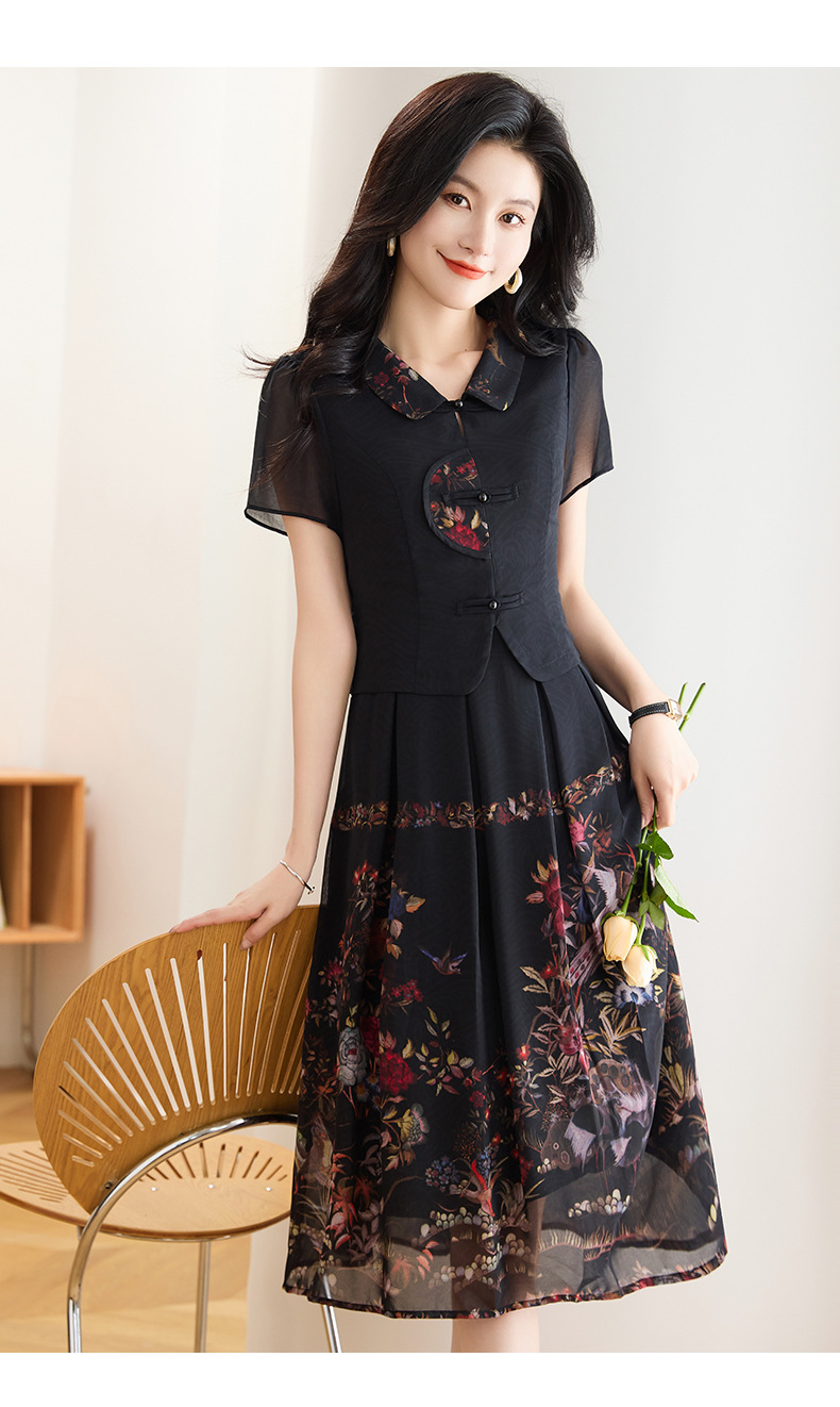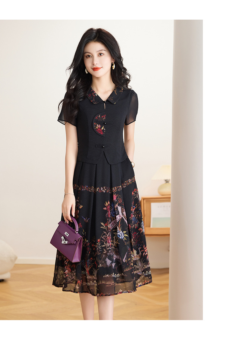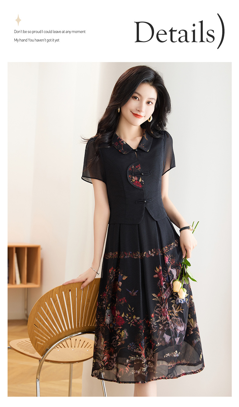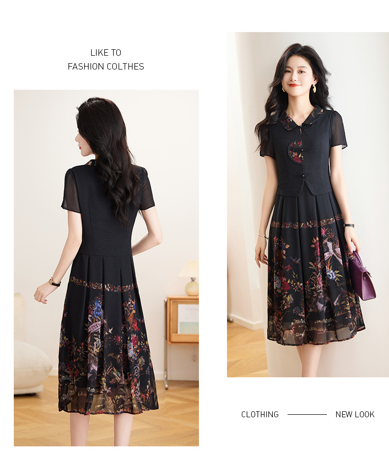 时尚气质拼接,印花假两件连衣裙QYM-TB-FD1454-Y