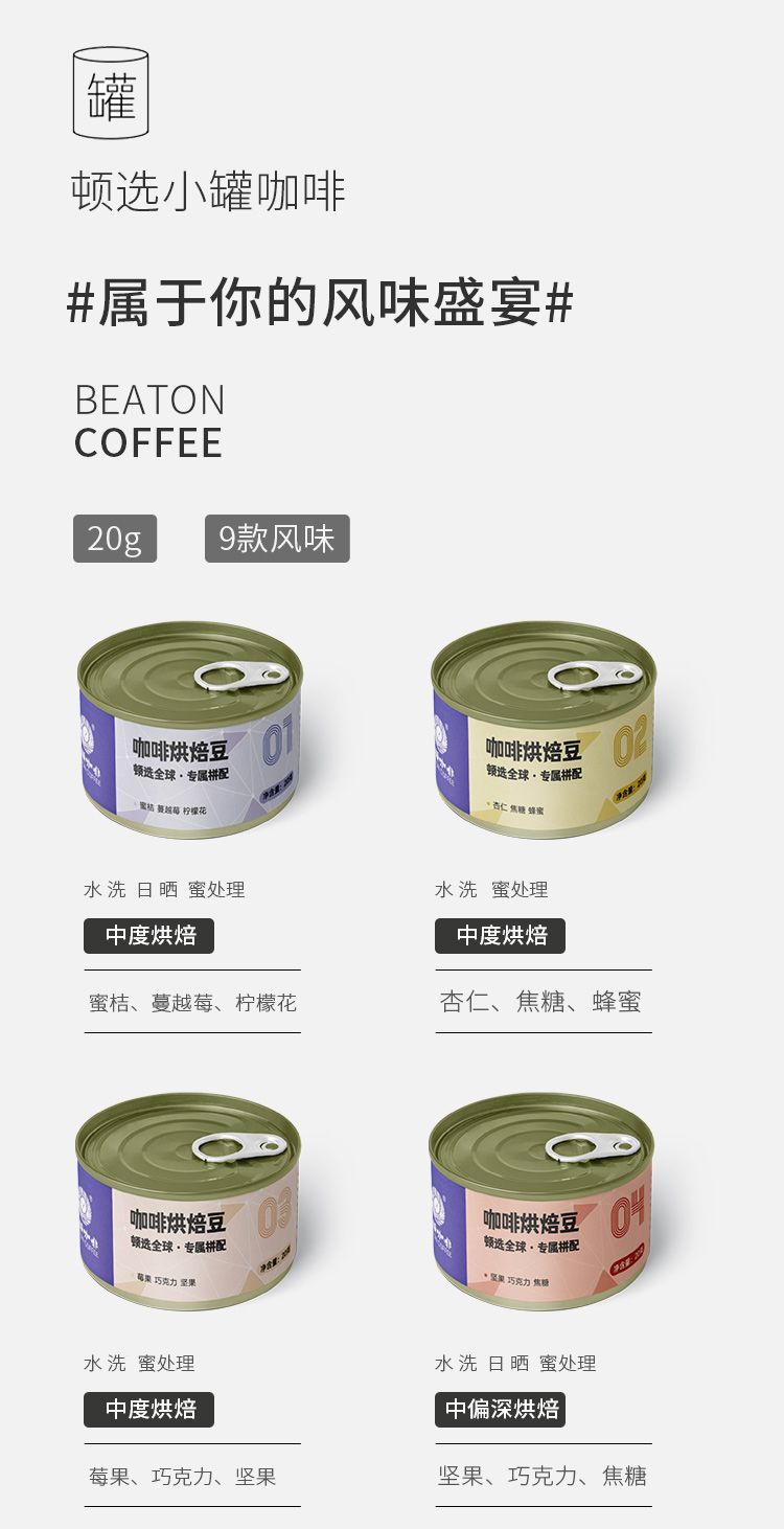 20克顿选系列拼配咖啡豆 9种咖啡豆可选