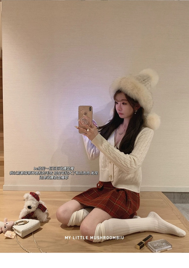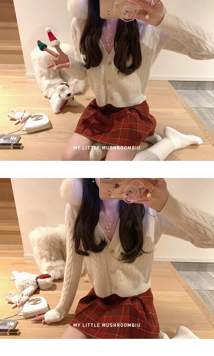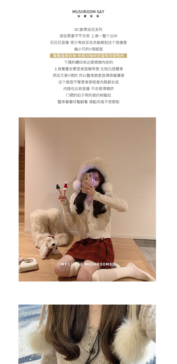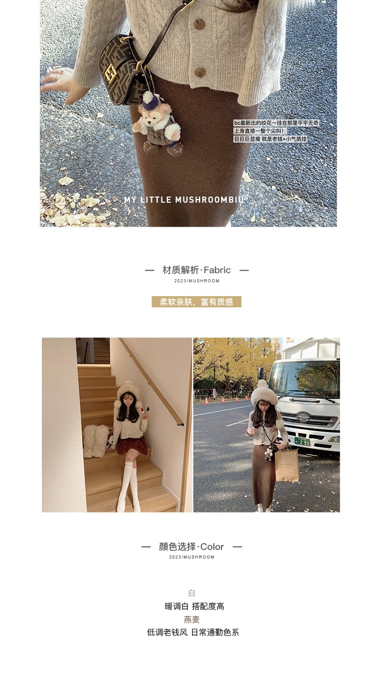 金蘑菇菇 bc慢节奏绞花套组 / V领绞花设计感毛衣开衫+半裙
