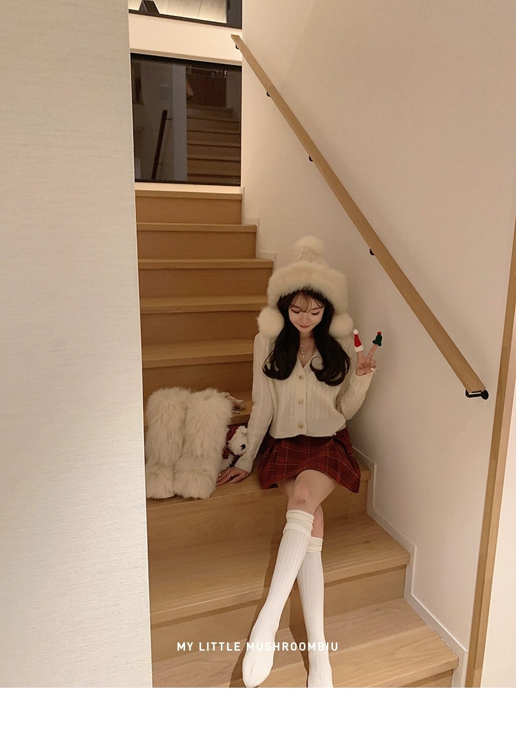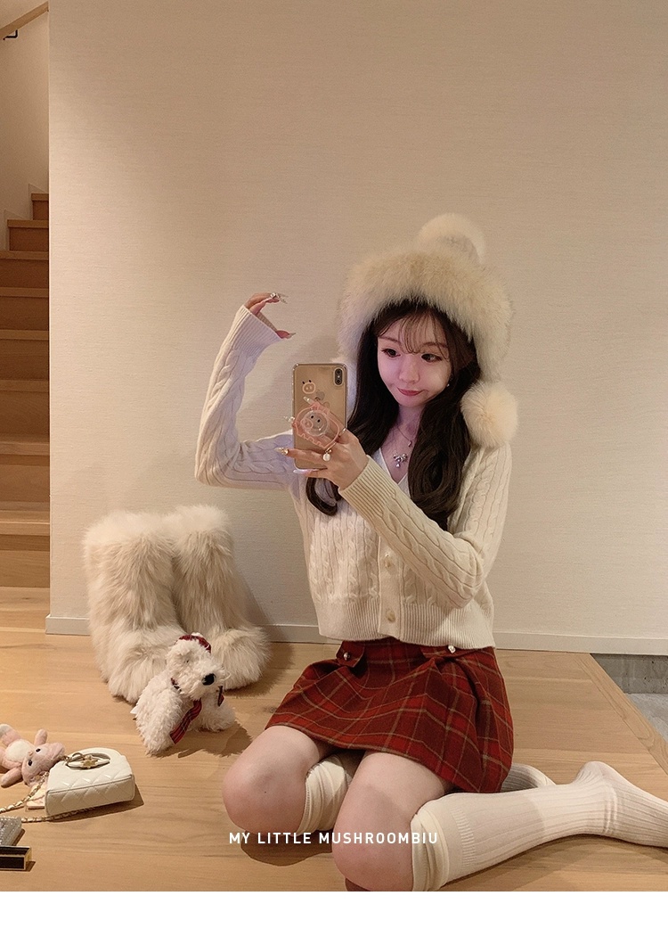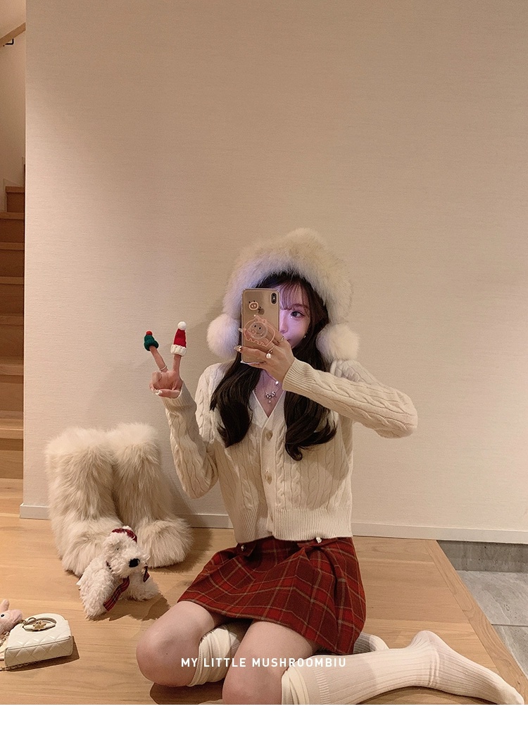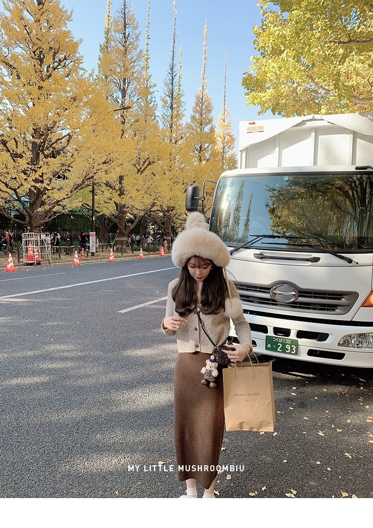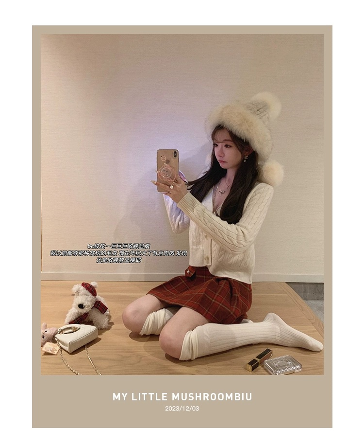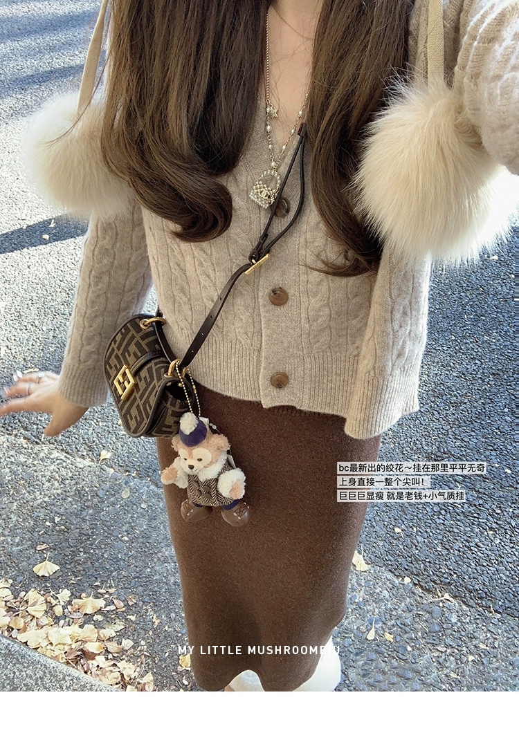 金蘑菇菇 bc慢节奏绞花套组 / V领绞花设计感毛衣开衫+半裙
