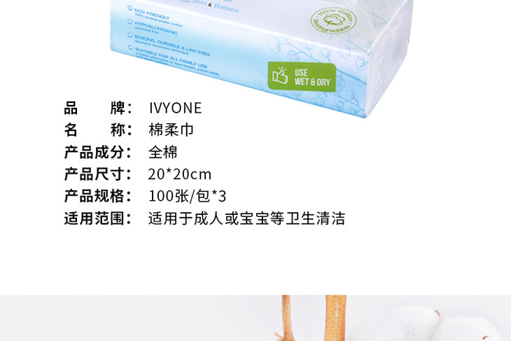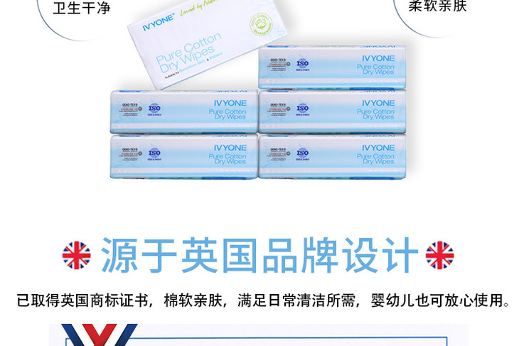 【一般贸易】英国IVYONE全棉柔软敏感肌擦脸巾卸妆巾100张/包