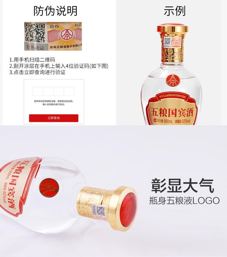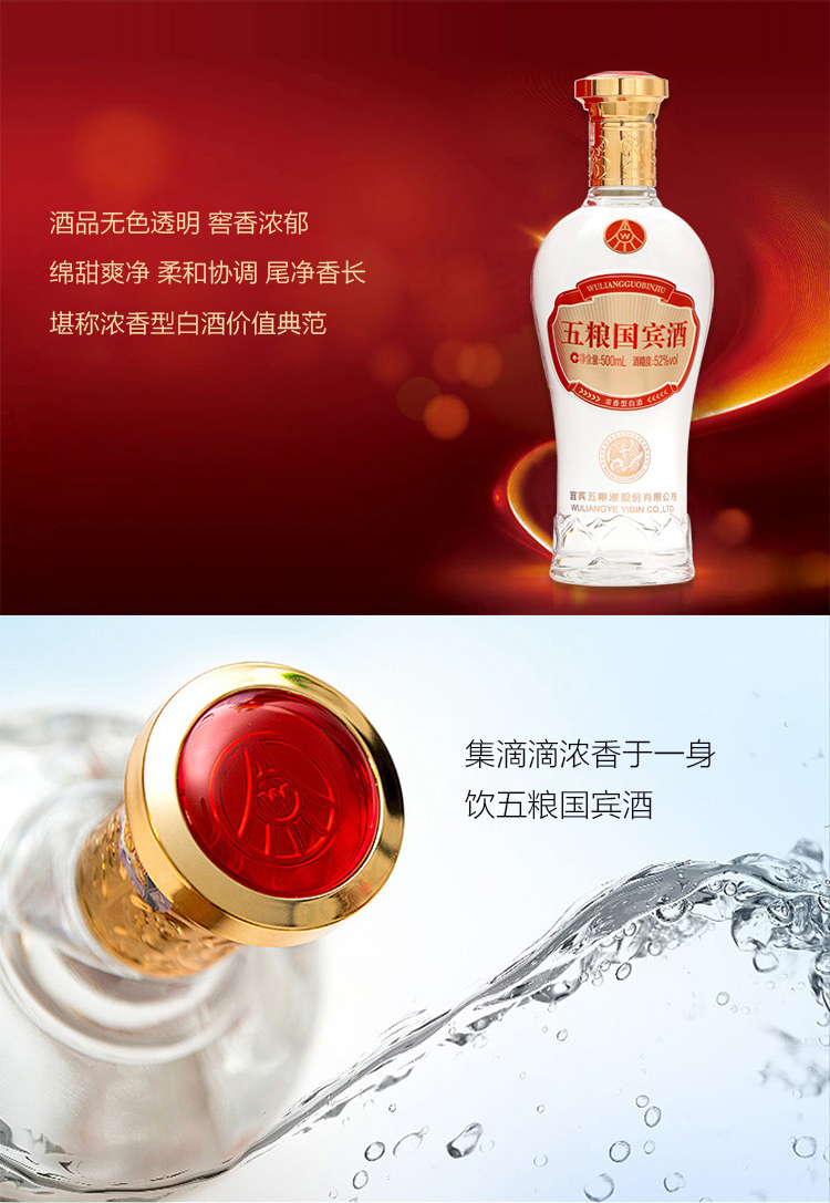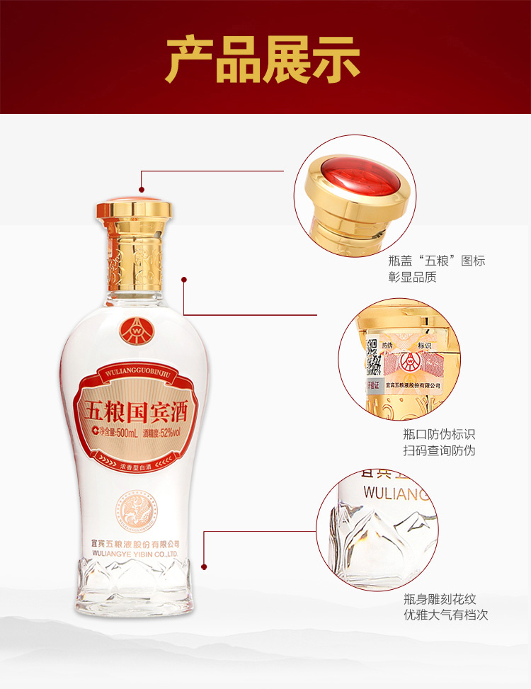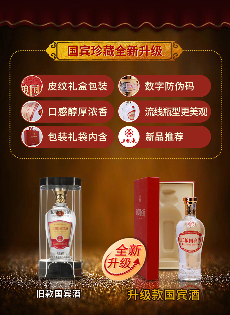 五粮液股份出品 五粮国宾酒 52度500ml*6瓶整箱装 浓香型白酒(国宾珍藏升级版)