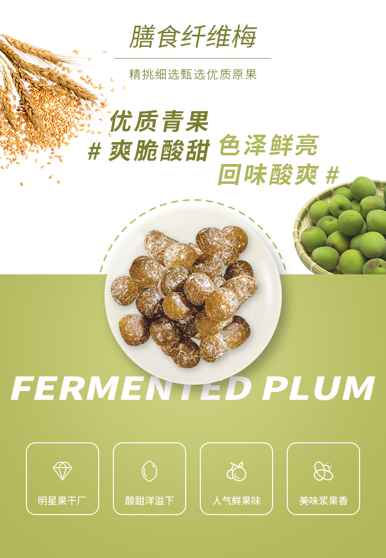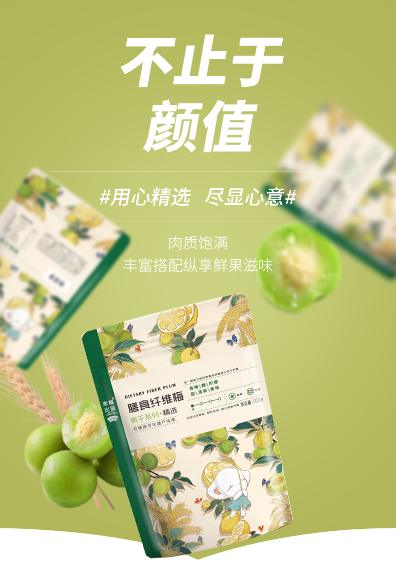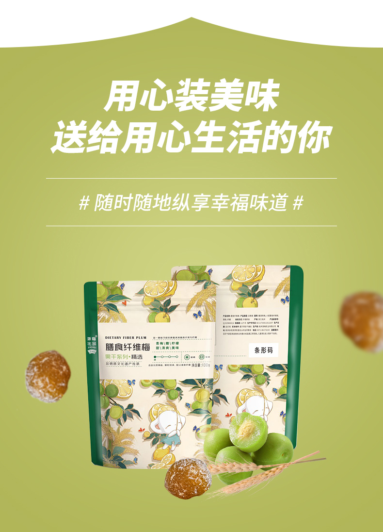 浙梅膳食纤维梅100g*3袋蜜饯干果青梅酸梅休闲零食话梅干