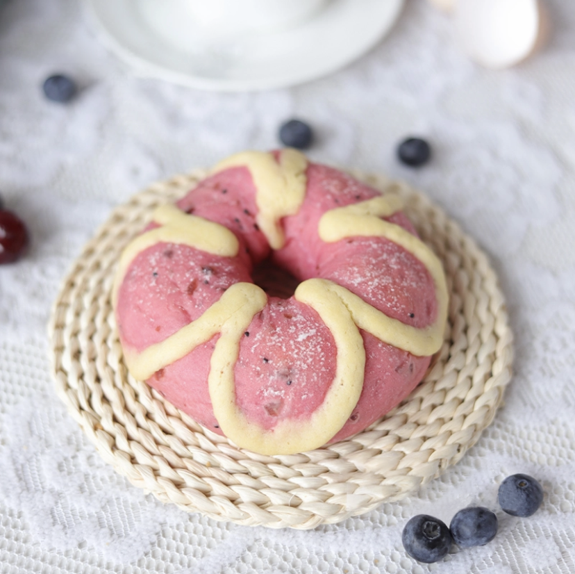 配料:山茶花面粉,芝士,红心火龙果,果糖