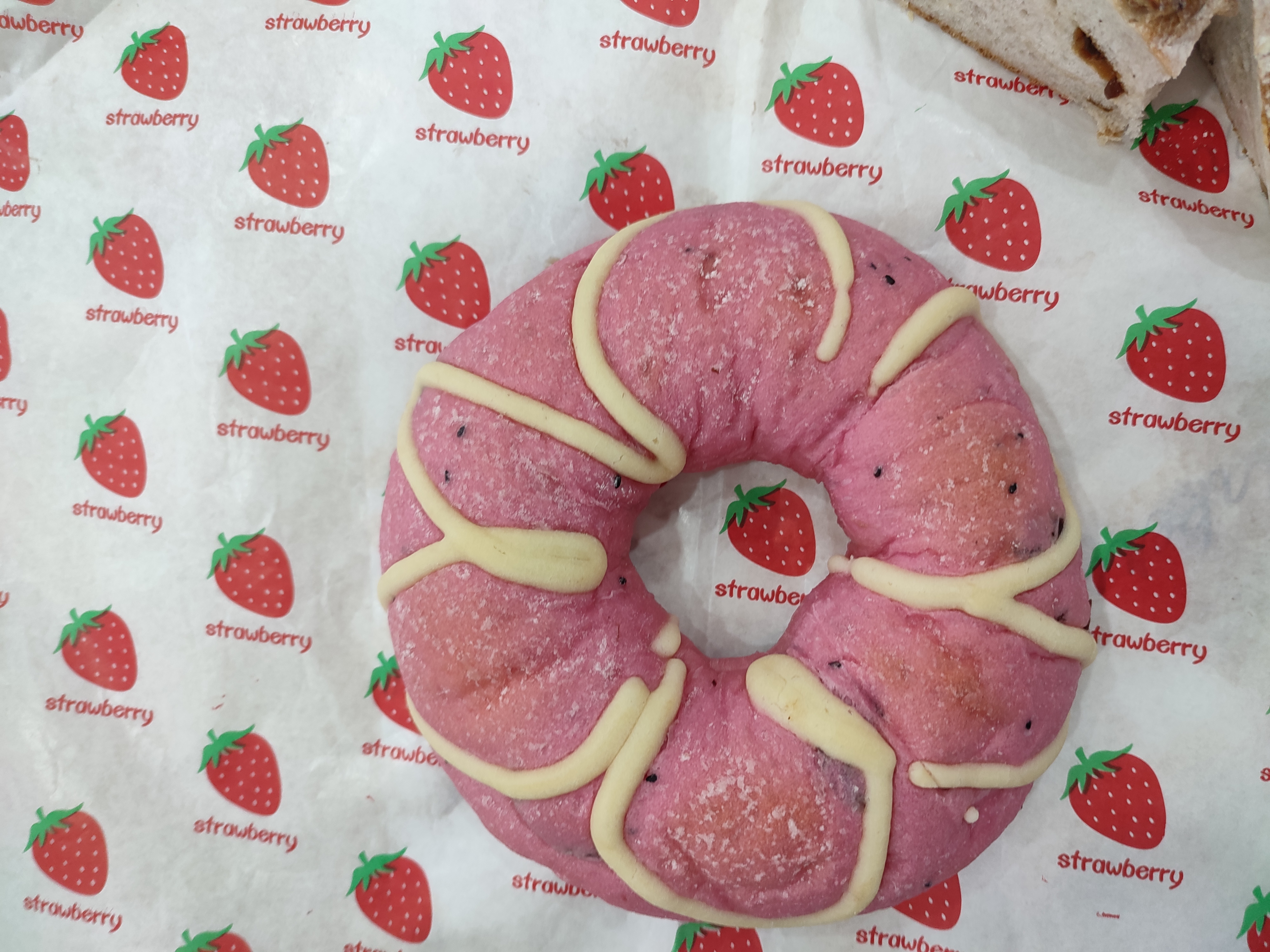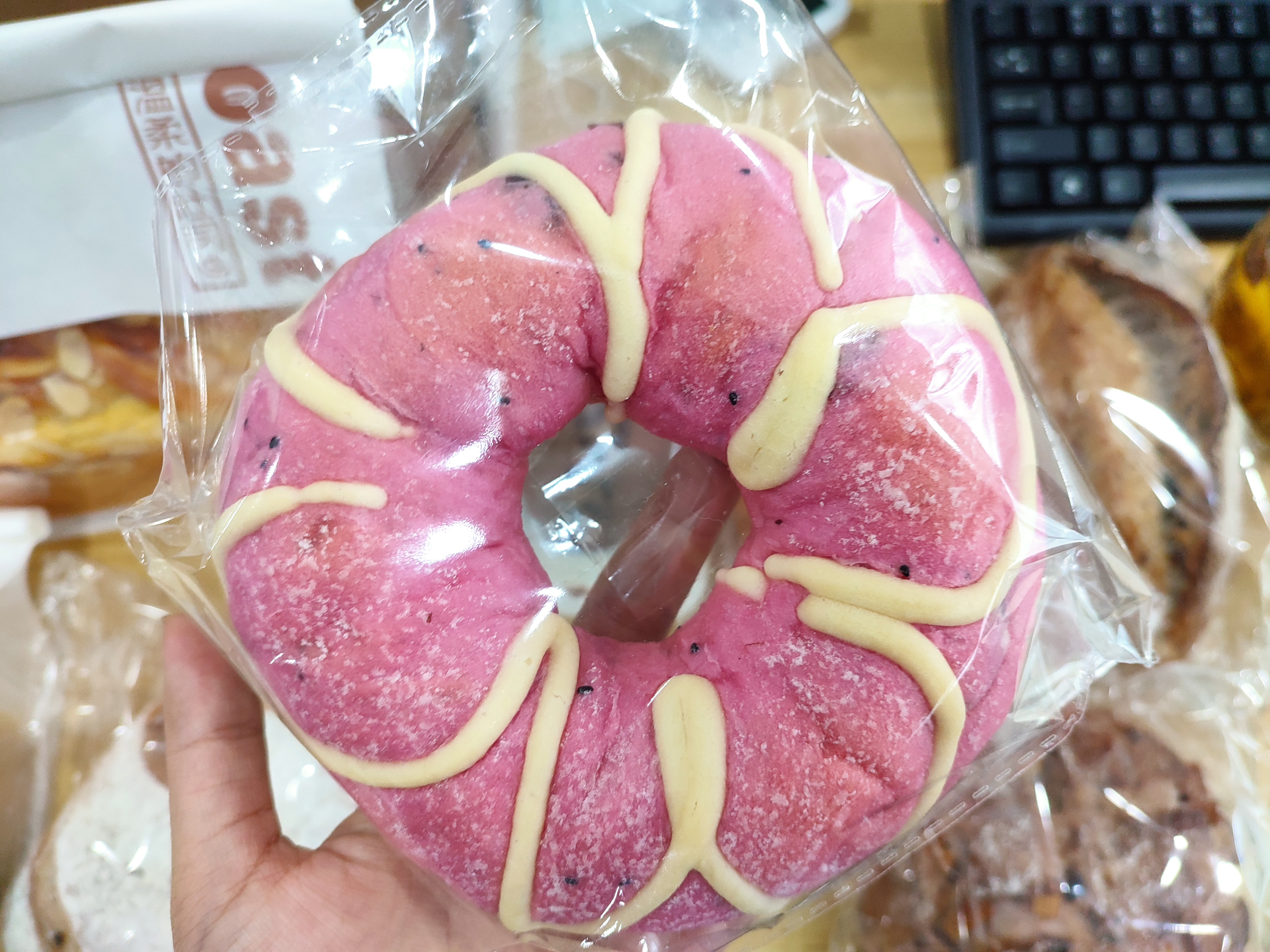 一堆面包里面,最突出最显眼的就是它了,刚开始我还以为里面的夹心是酸奶,但其实是芝士夹心
