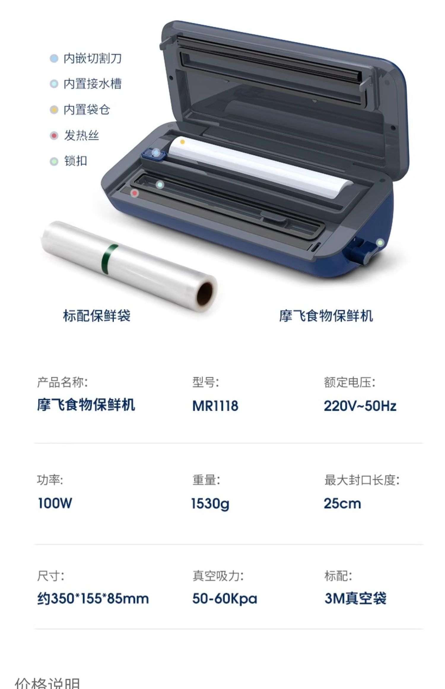 【摩飞真空封口机】MR1118全自动家用小型保鲜食品包装机抽密封机新品塑封机 0329返团