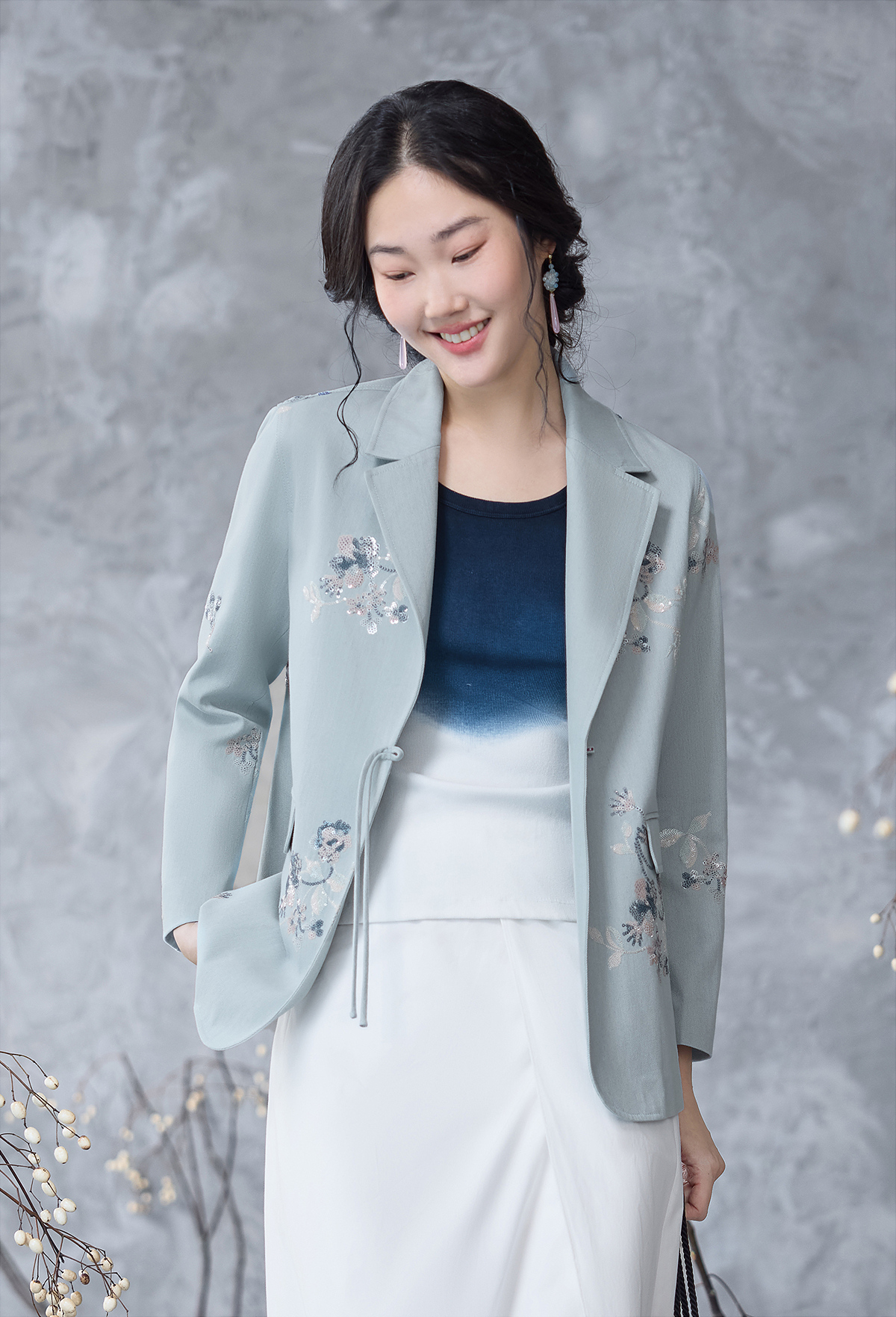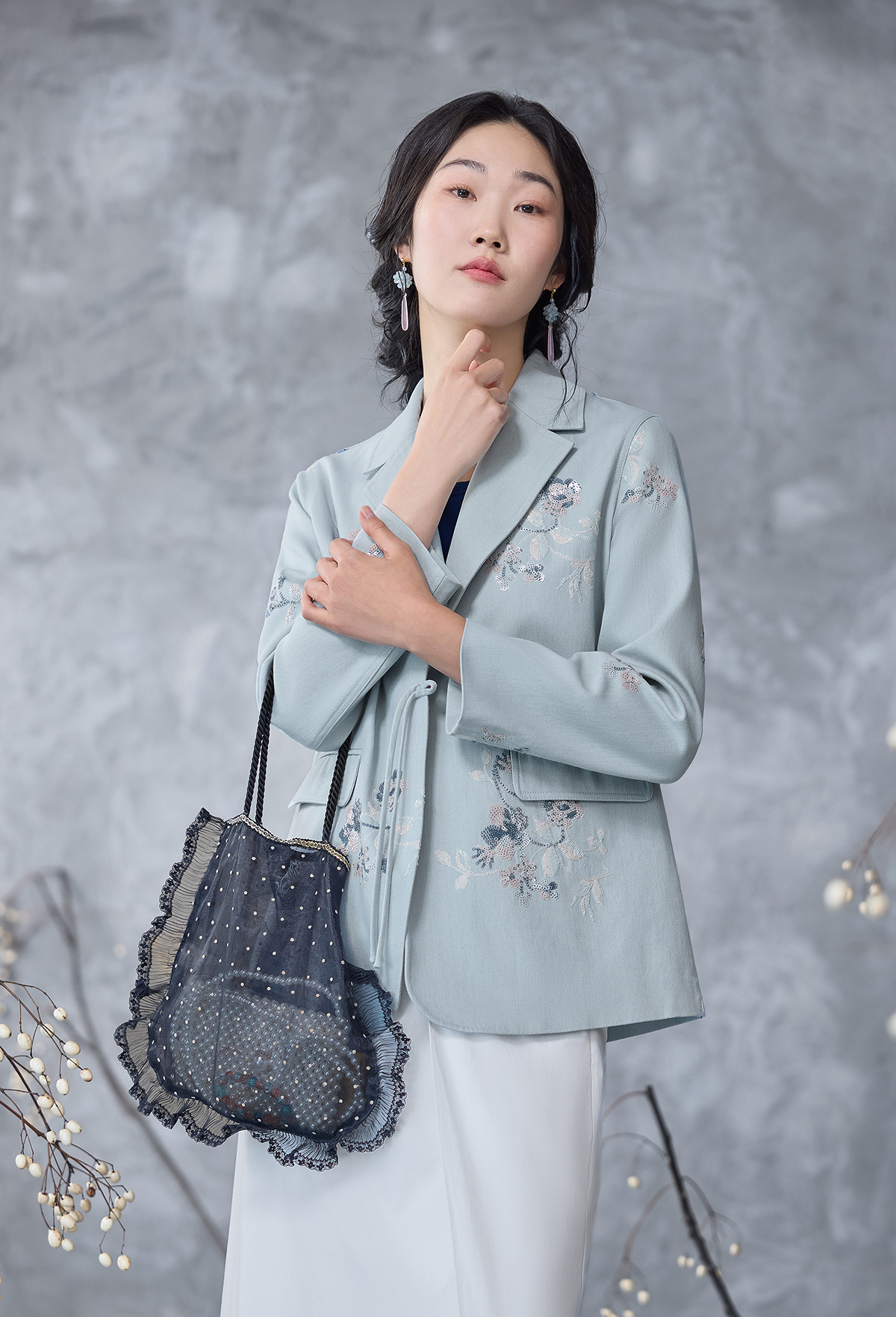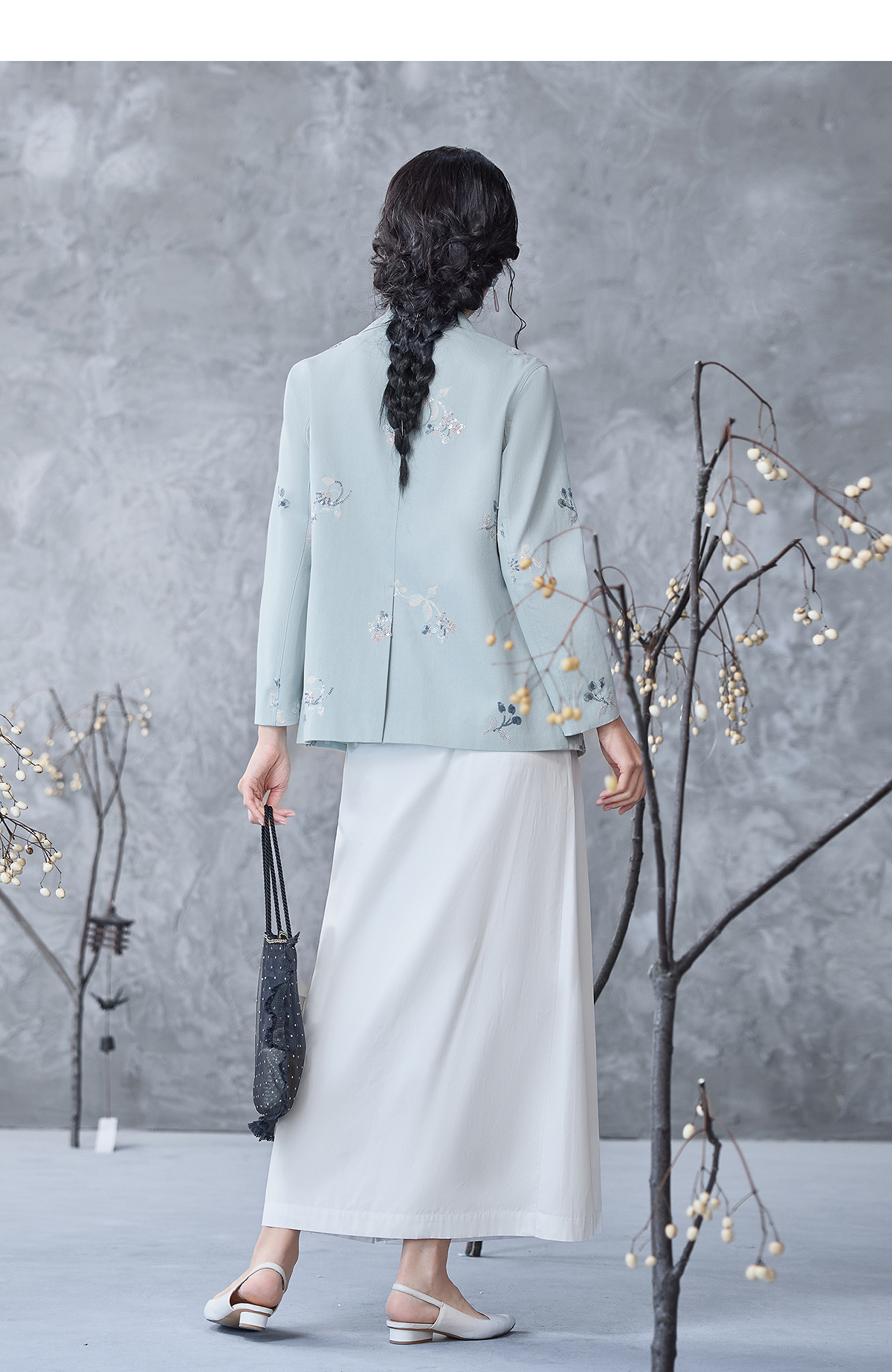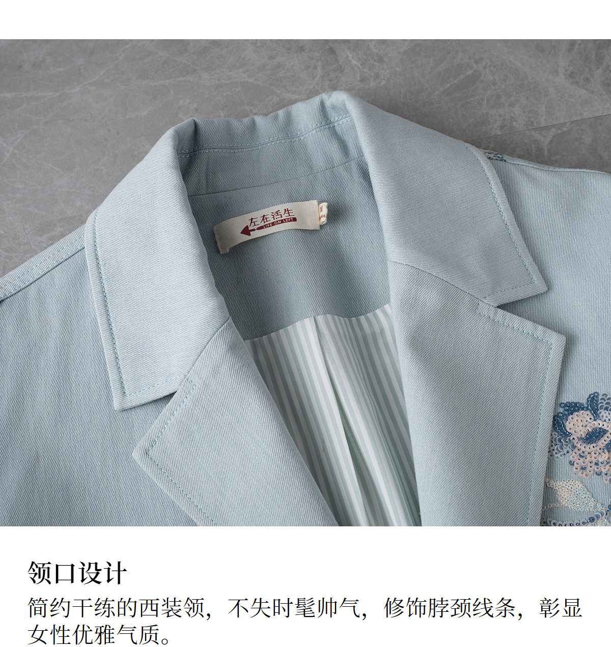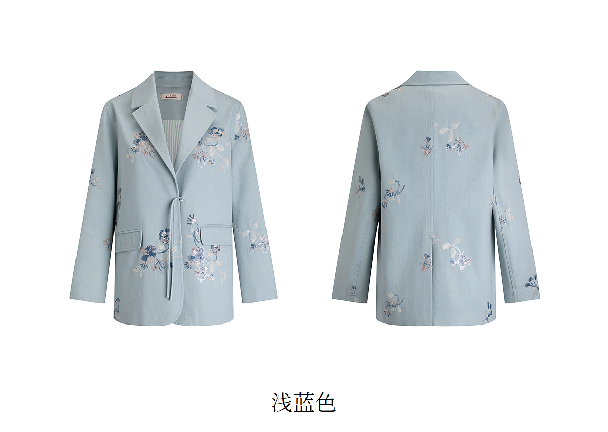 【林栖设计小店】牛仔棉外套珠片绣花复古国风宽松2025春季新品小西装女1952002