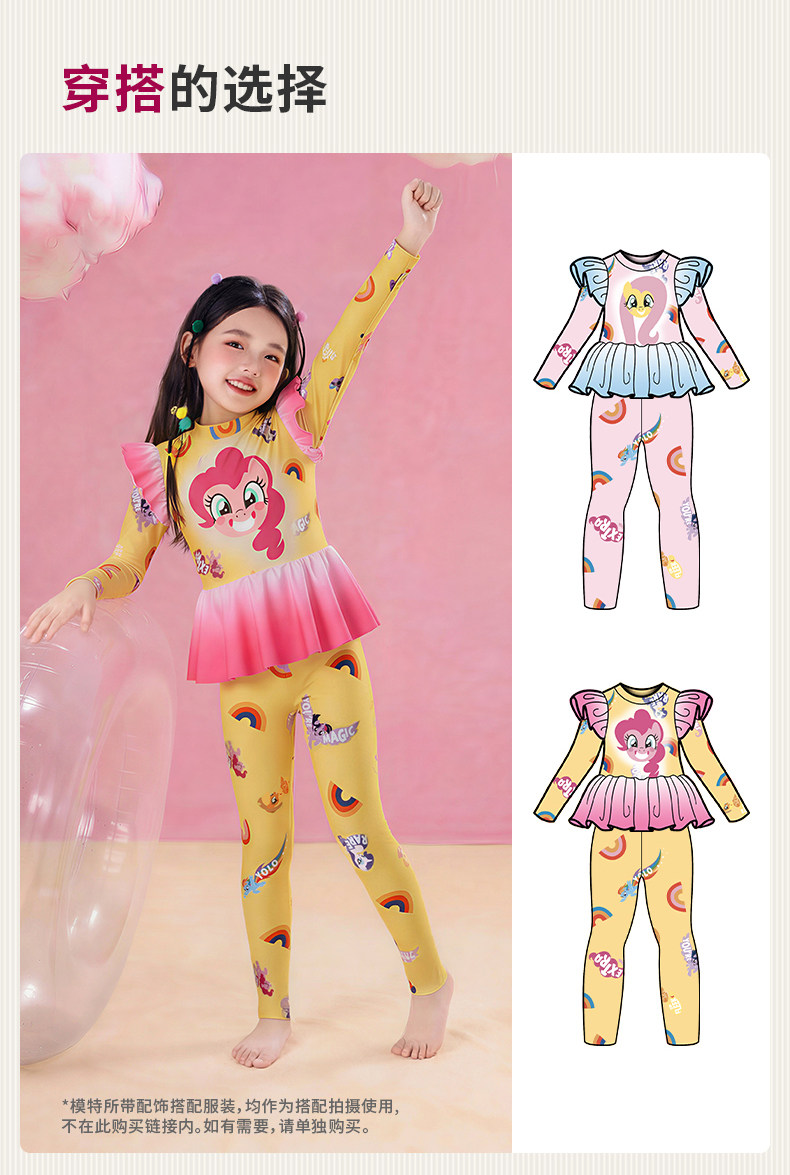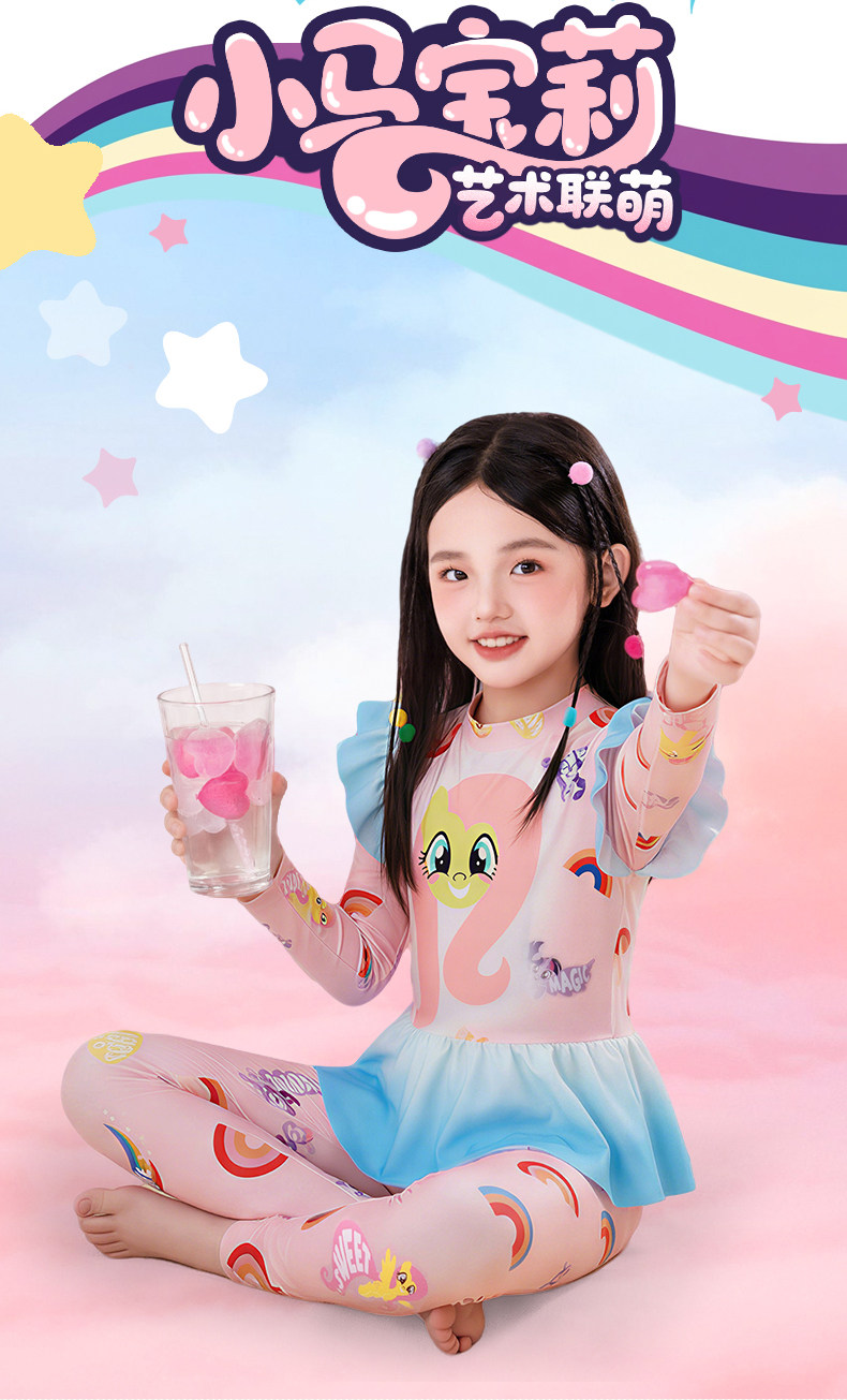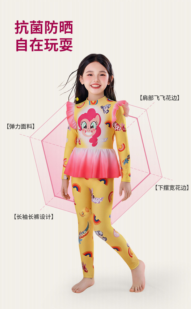 小马宝莉联名年衣童装长袖长裤泳衣套装女童夏季新款卡通防晒泳装