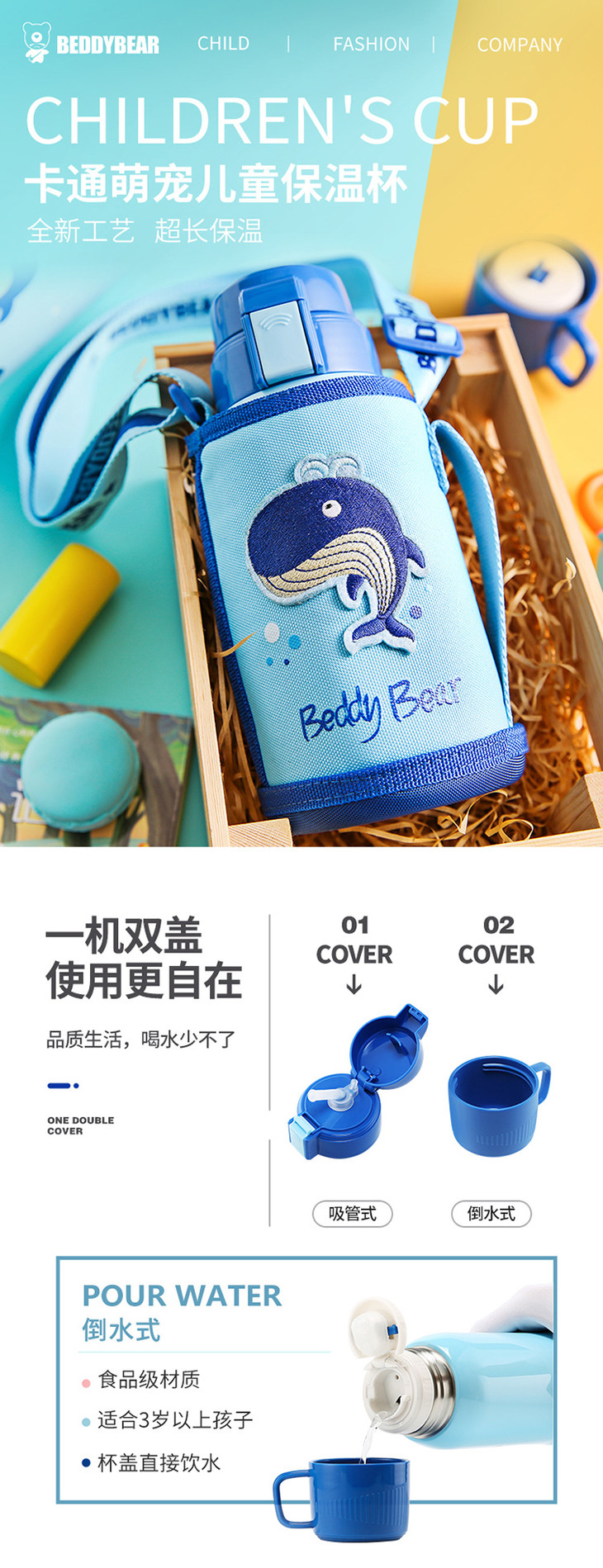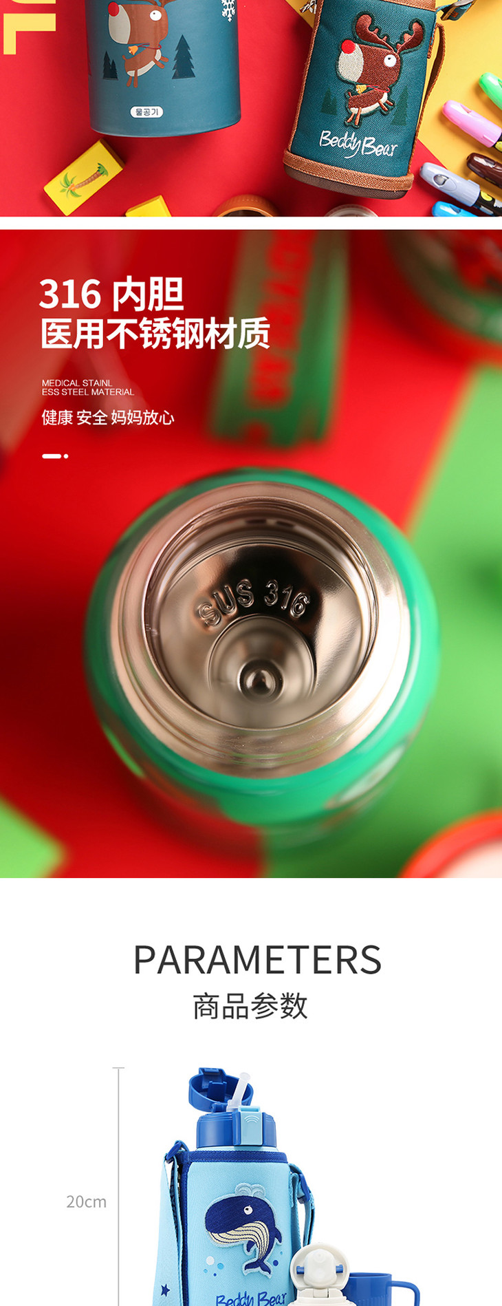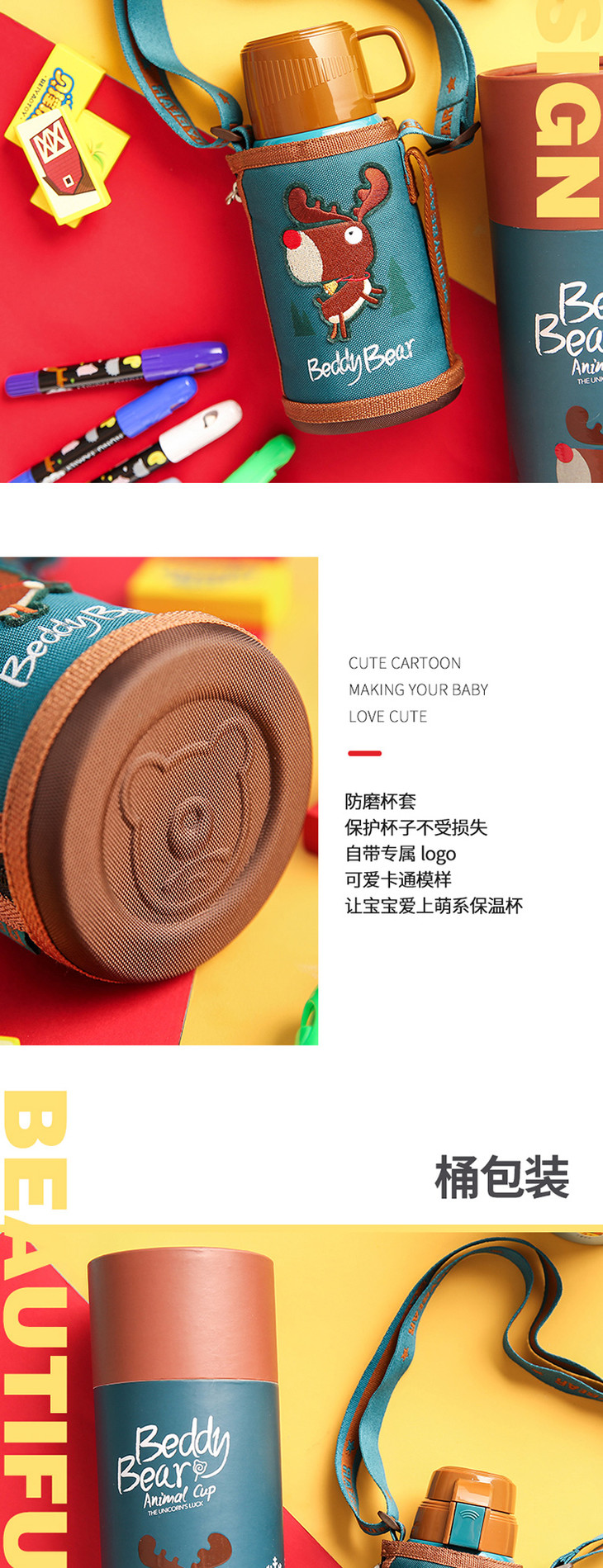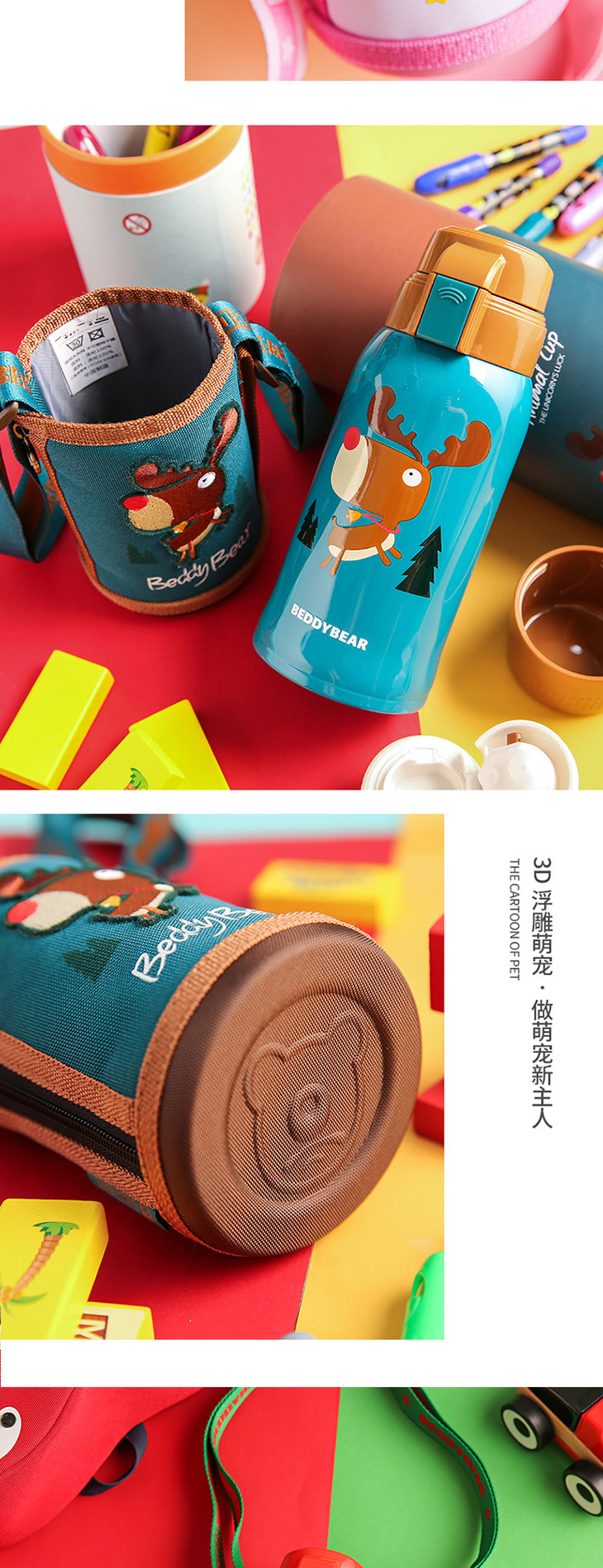 【一般贸易】杯具熊复古浮雕儿童保温杯 浮雕麋鹿款 600ml