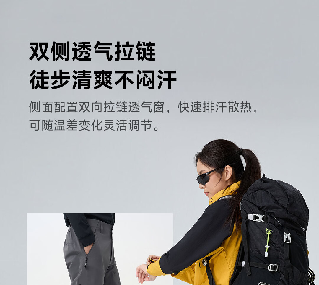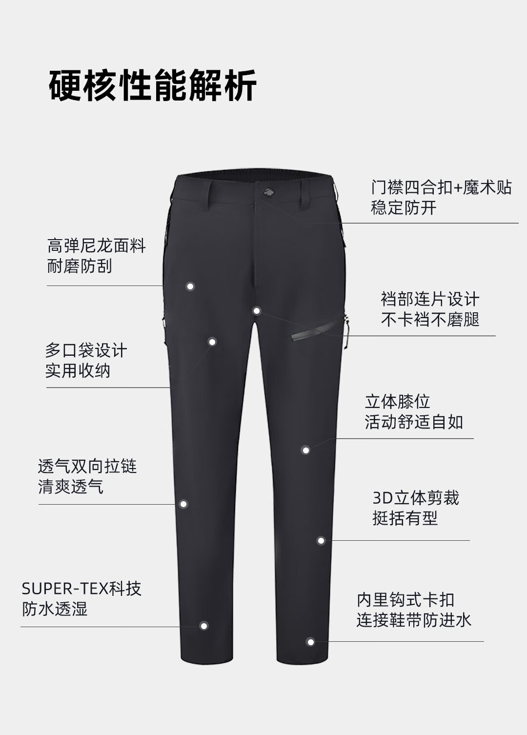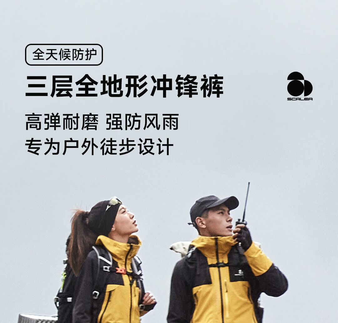 思凯乐(SCALER)户外双侧开拉链三层冲锋裤高弹耐磨防水透气轻量徒步登山裤(男女款)(TBZG)