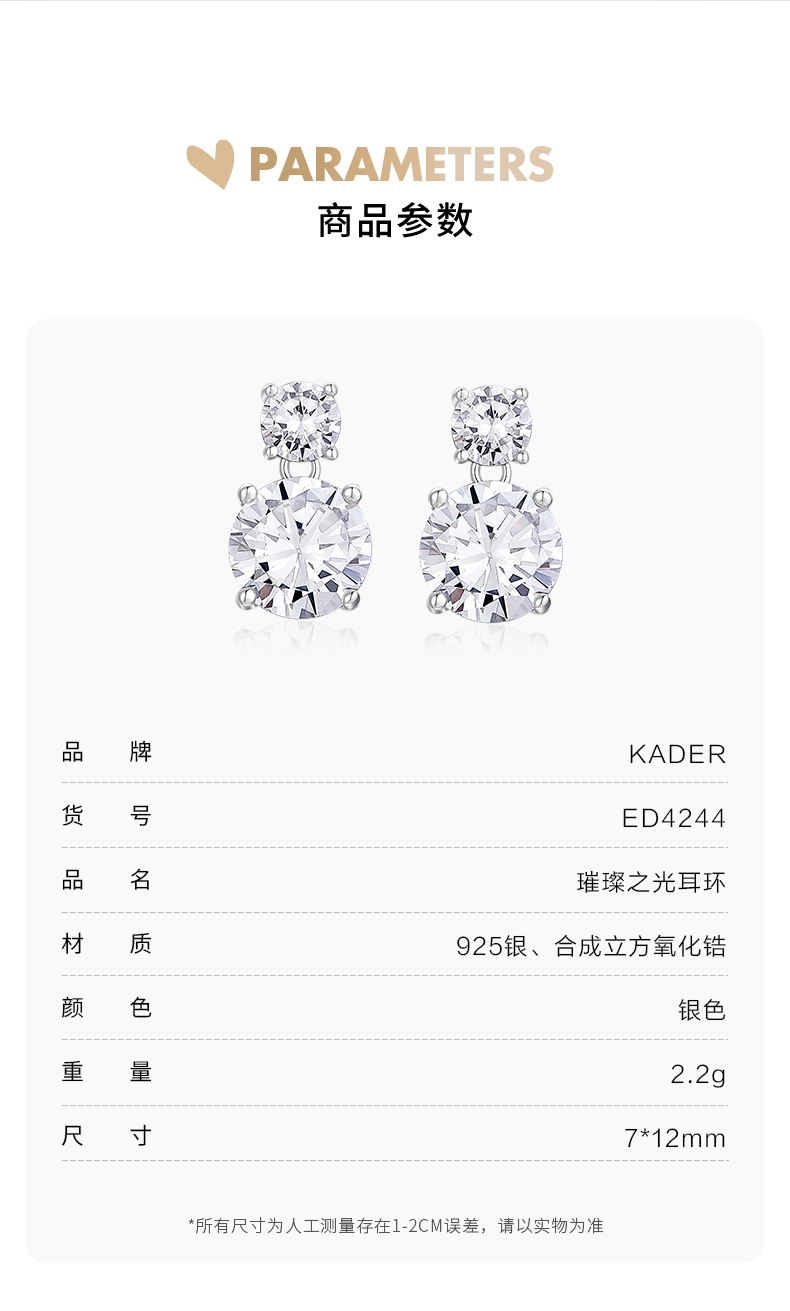卡蒂罗/KADER 爆闪 璀璨之光耳钉 925银满镶锆石闪钻吸睛闪闪发光耳饰 浪漫灵动简约气质配饰 女生女友 节日礼盒