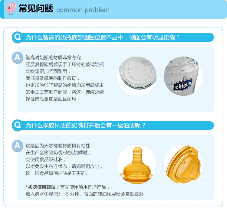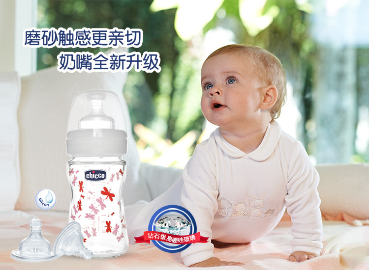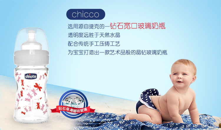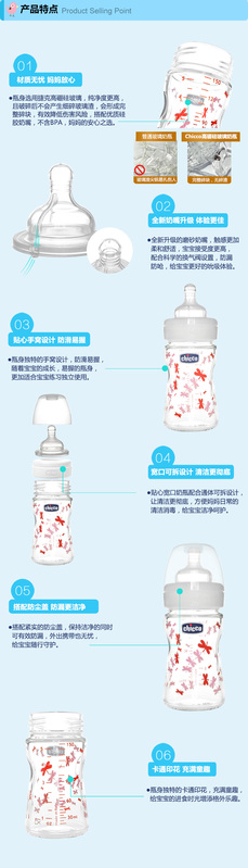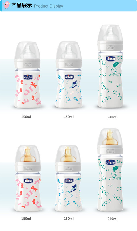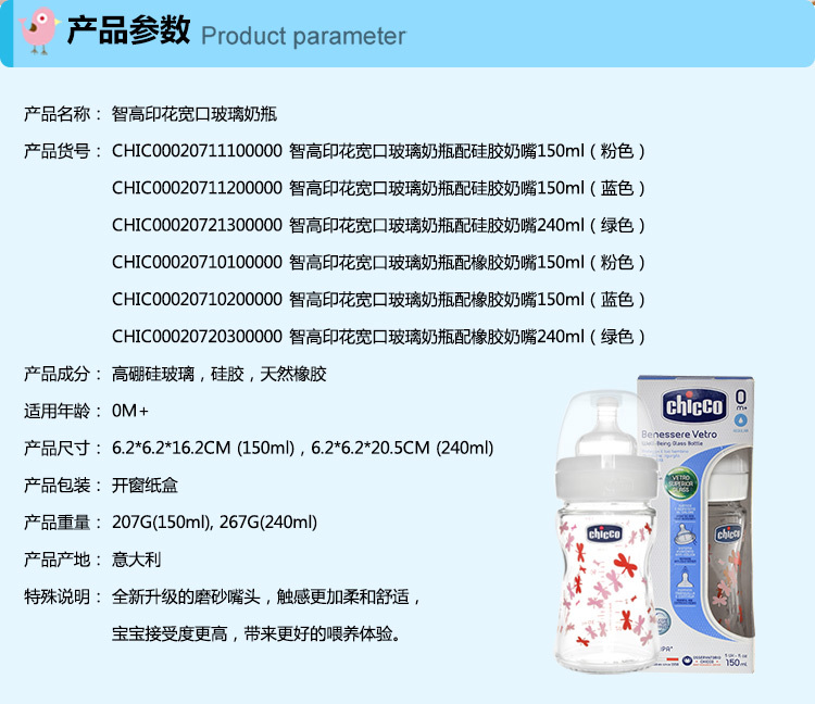智高印花宽口玻璃奶瓶150ml配硅胶奶嘴(蓝色)00070811210000