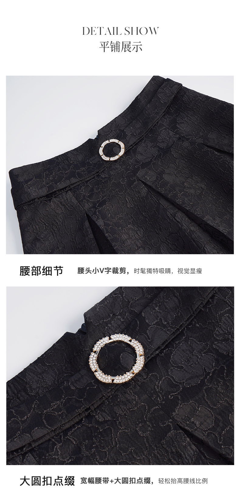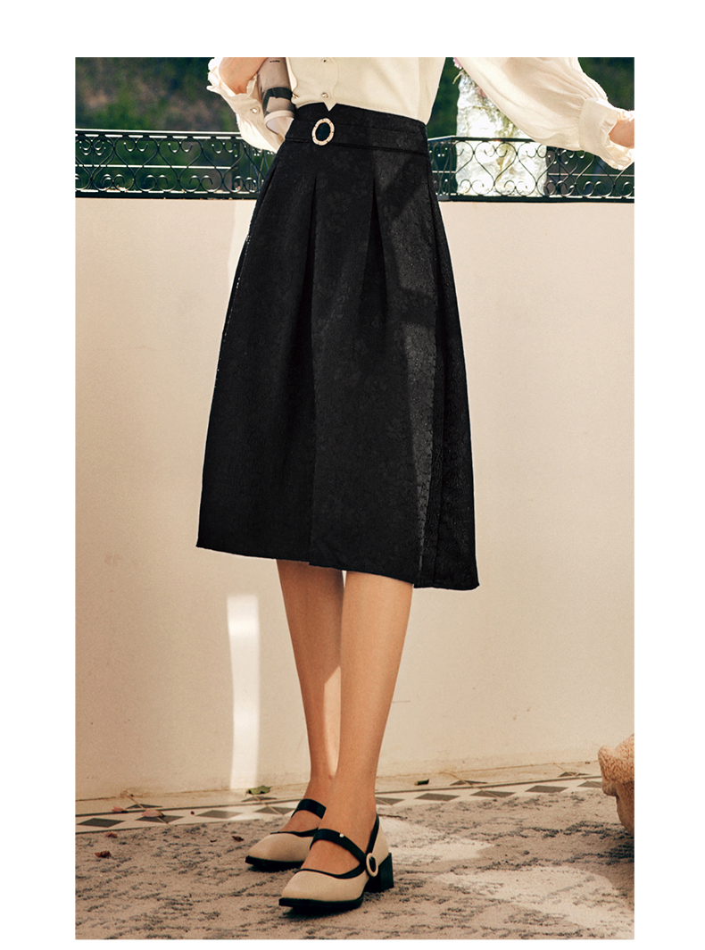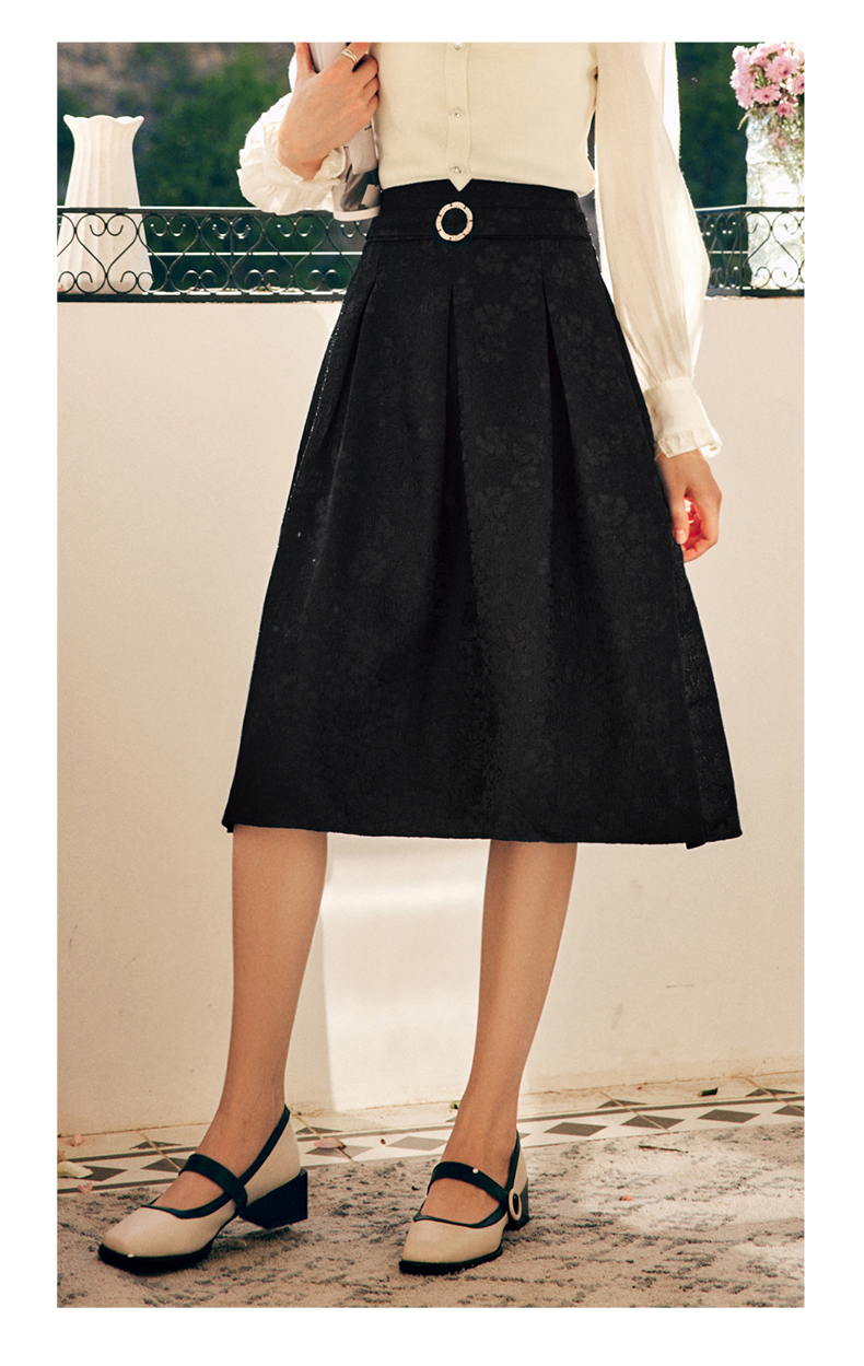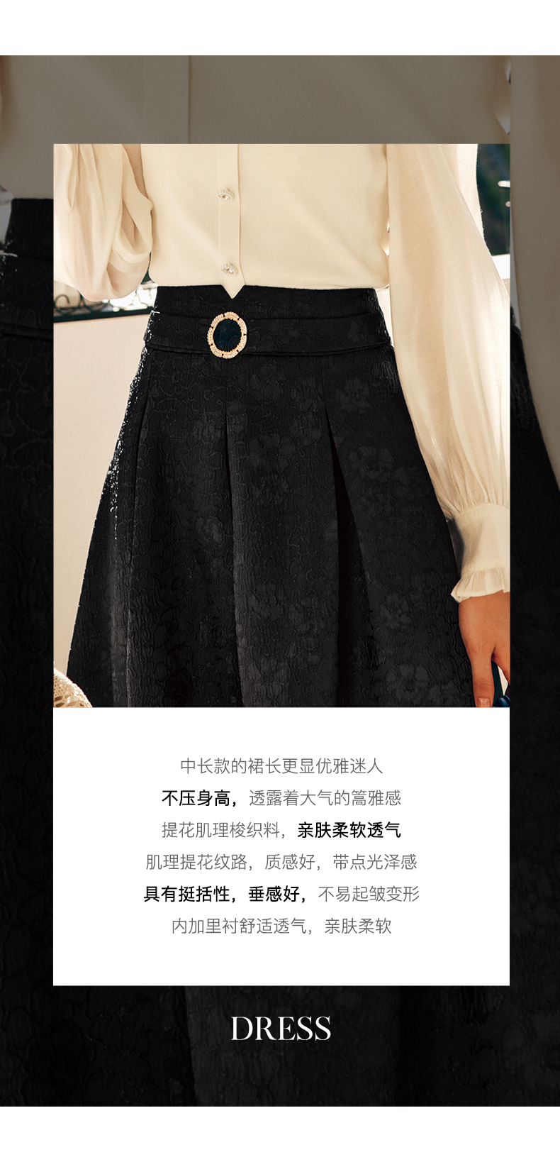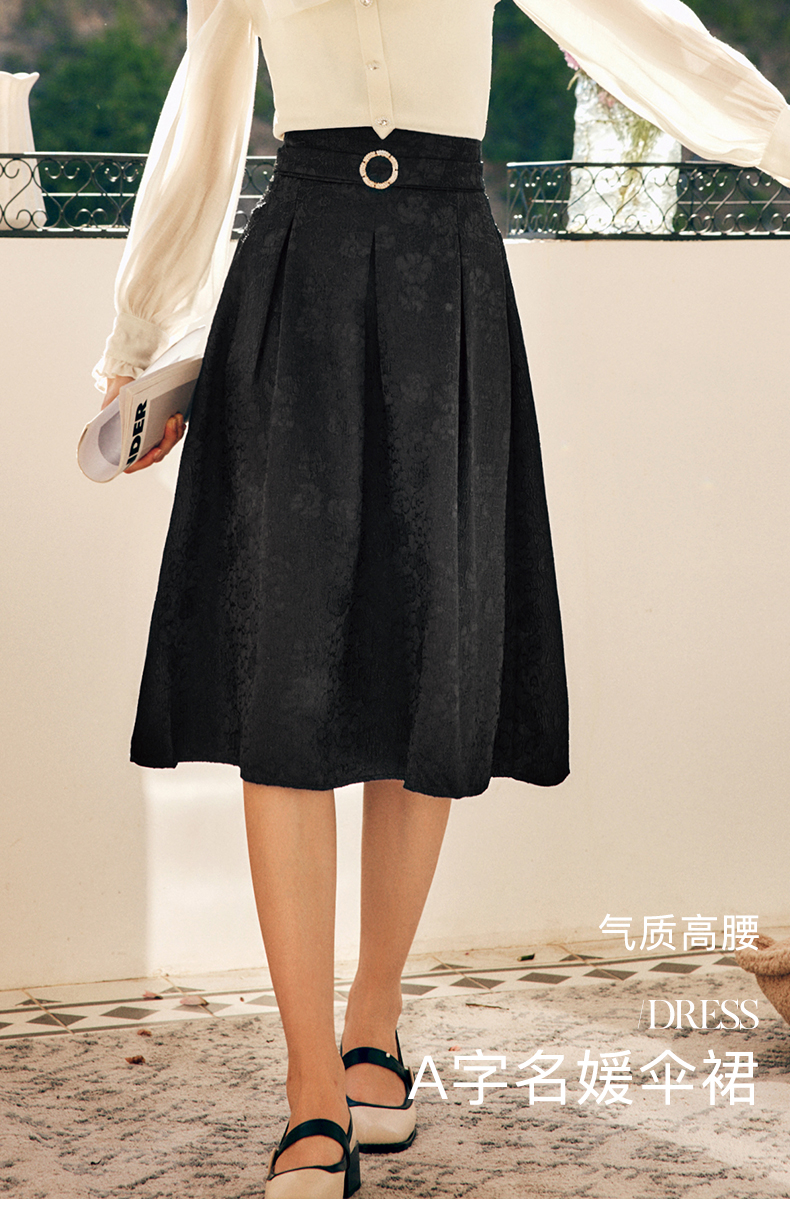 OLrain欧芮儿法式黑色半身裙女秋季2022新款气质名媛提花A字伞裙