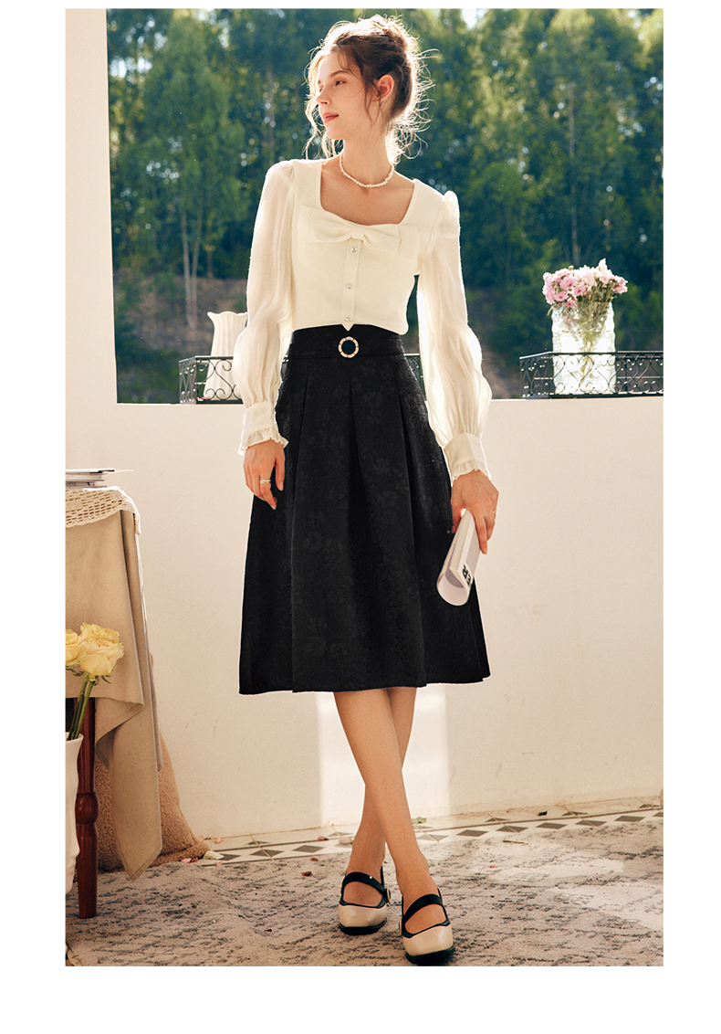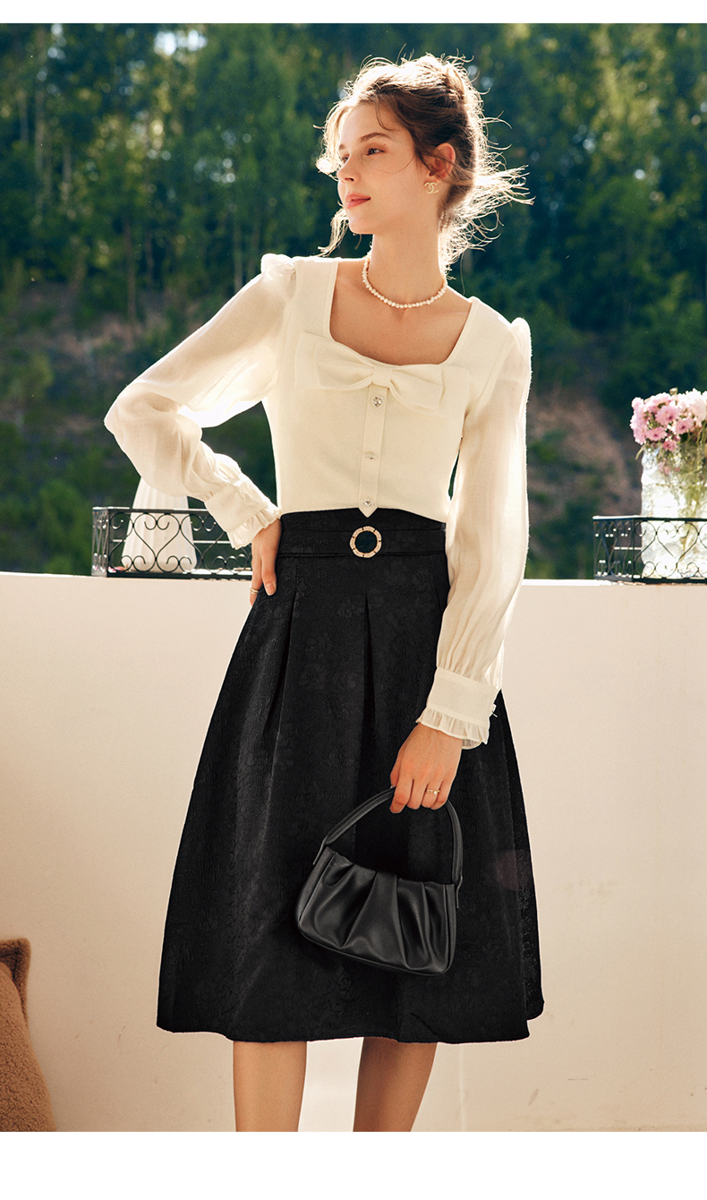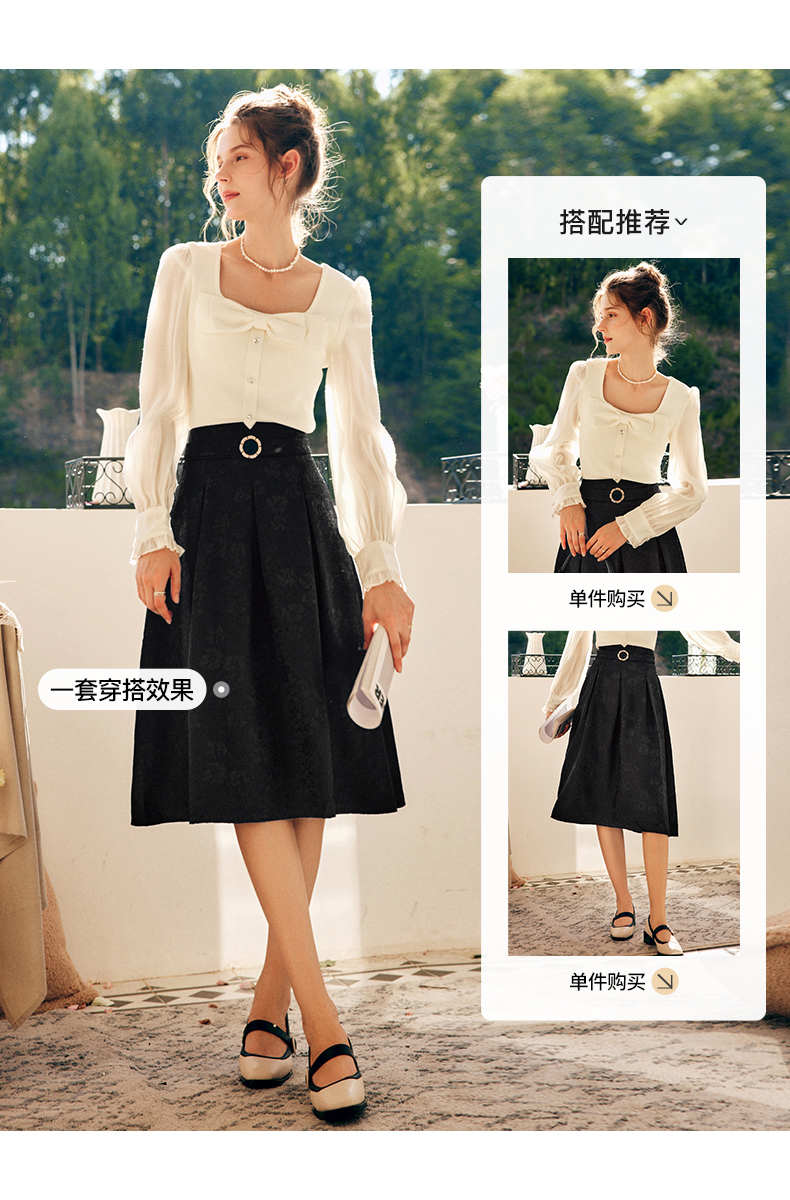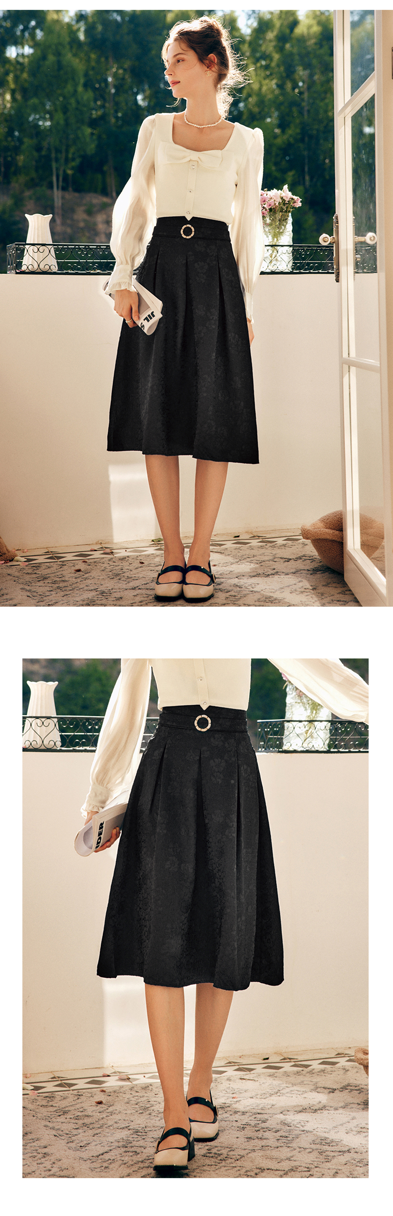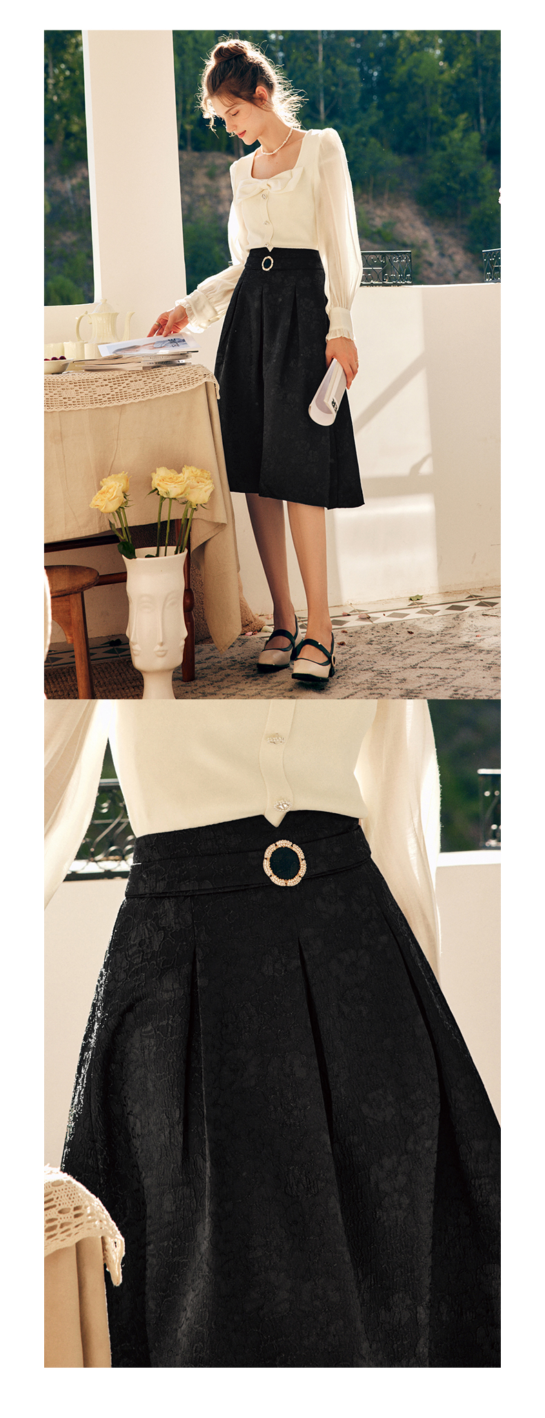 OLrain欧芮儿法式黑色半身裙女秋季2022新款气质名媛提花A字伞裙