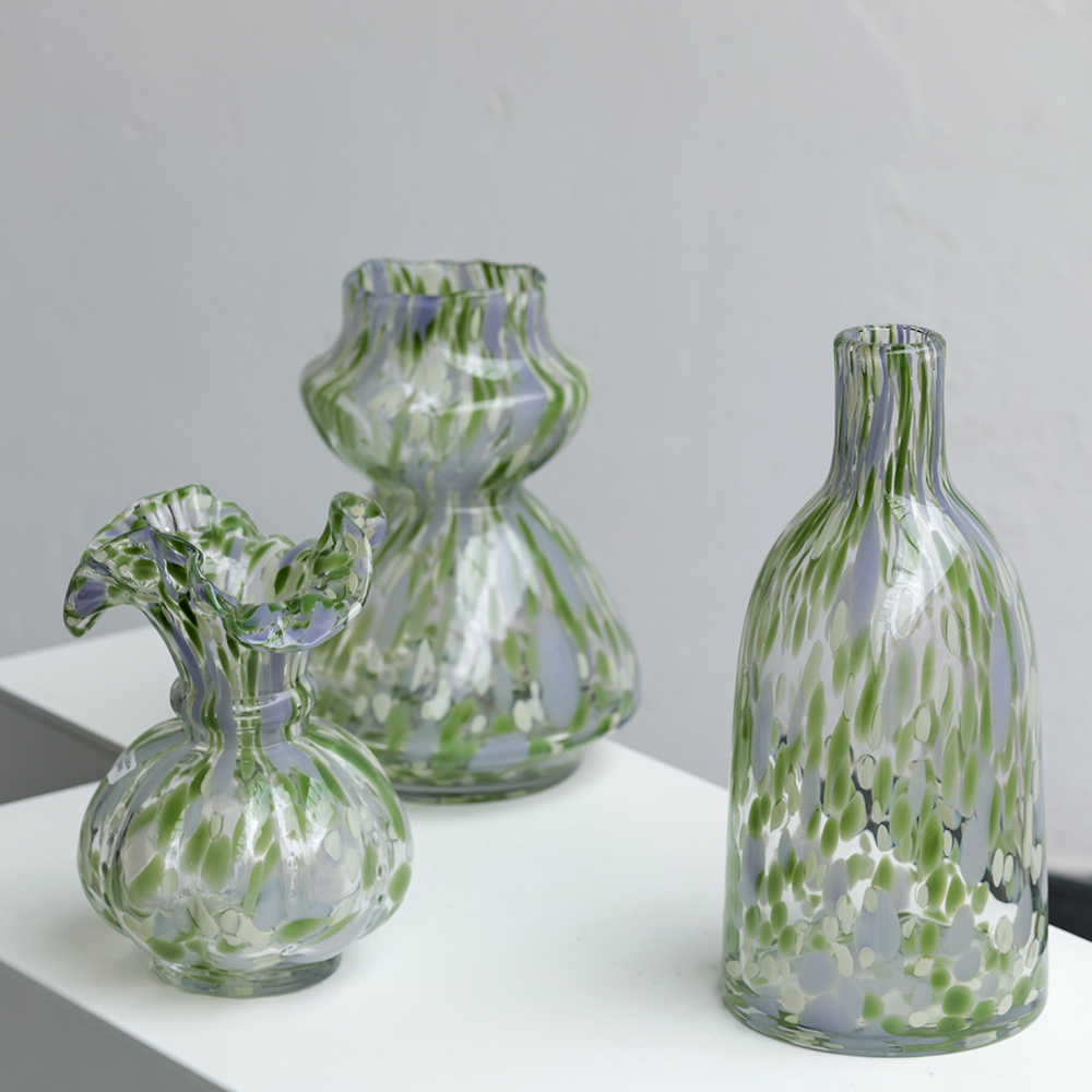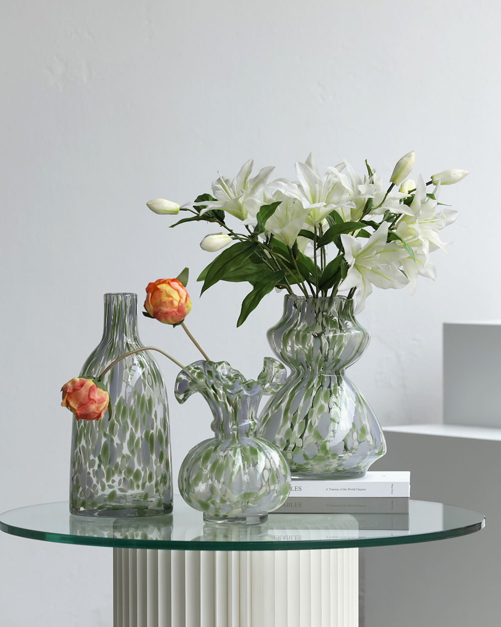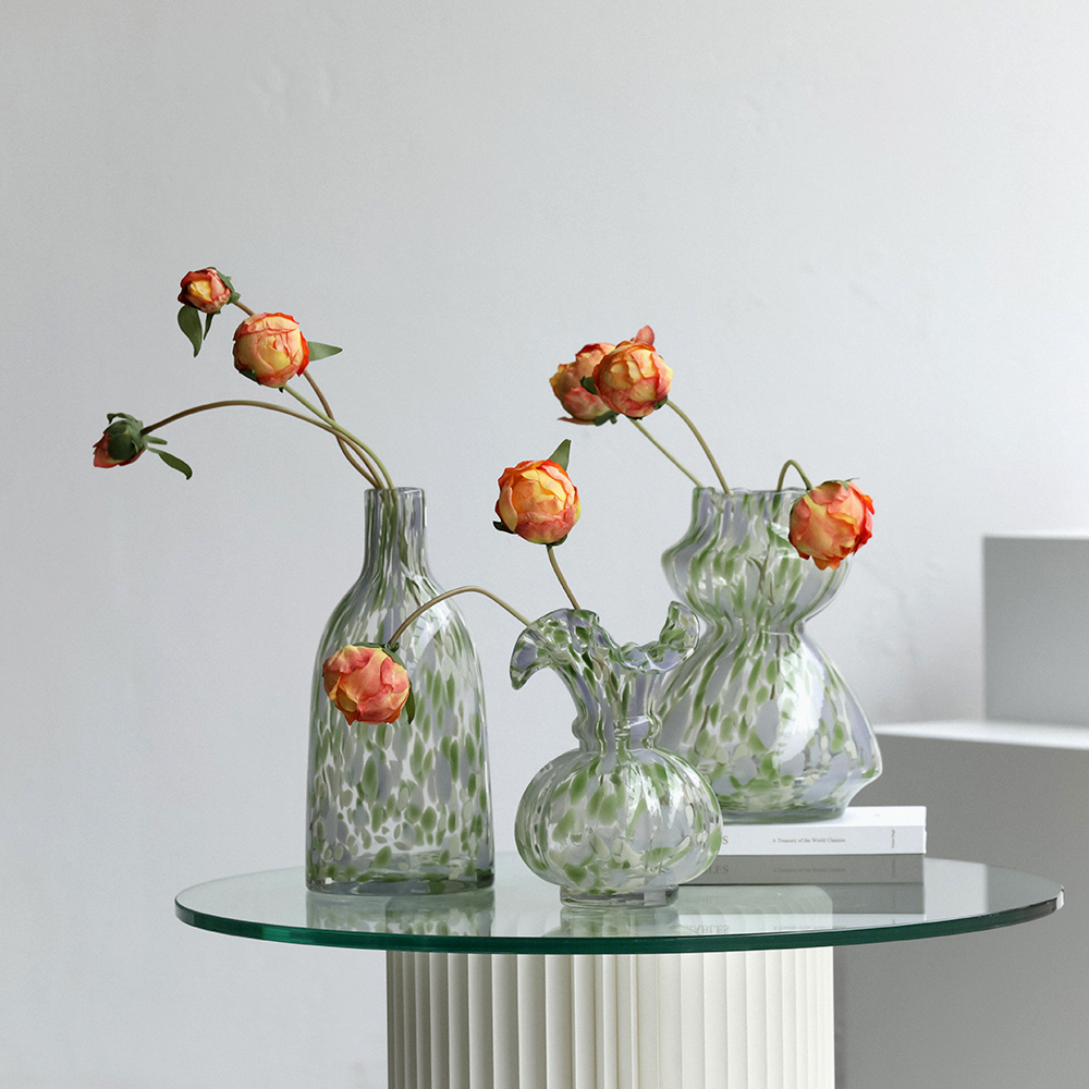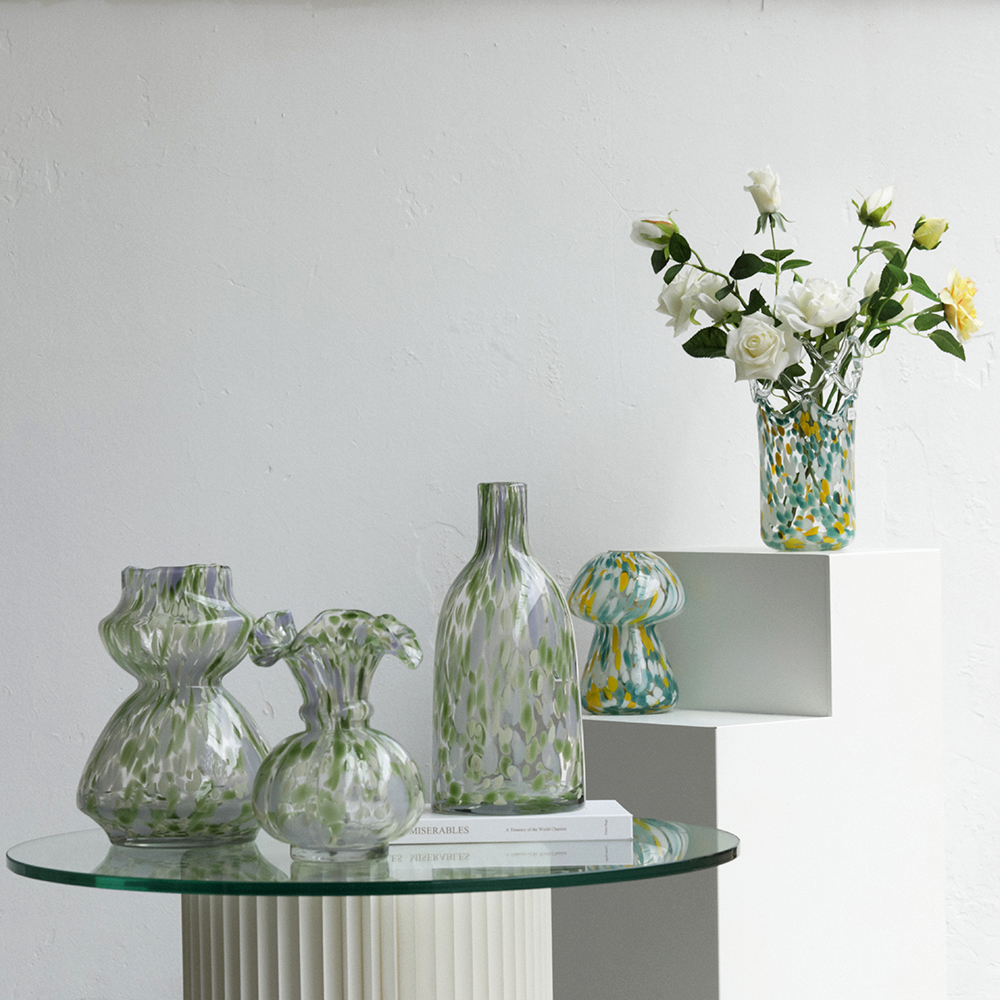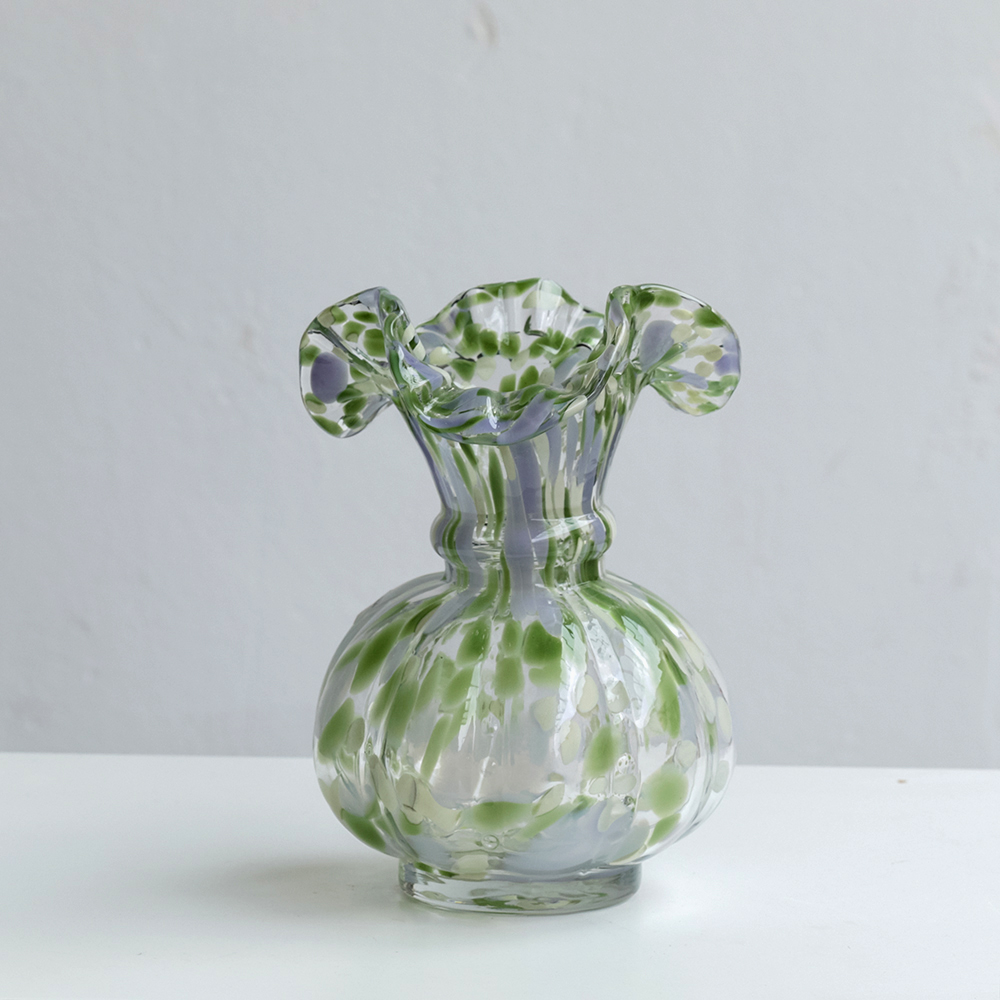 磁粉点点玻璃花瓶摆件饰品餐桌器皿花边口卷边花器