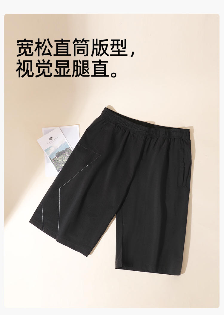 熳洁儿 男士舒适透气梭织休闲短裤五分裤百搭黑色夏季商场同款23203921