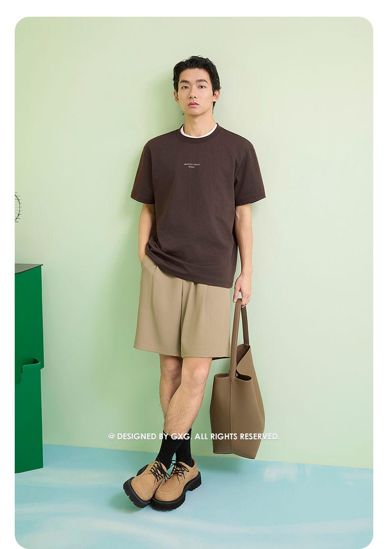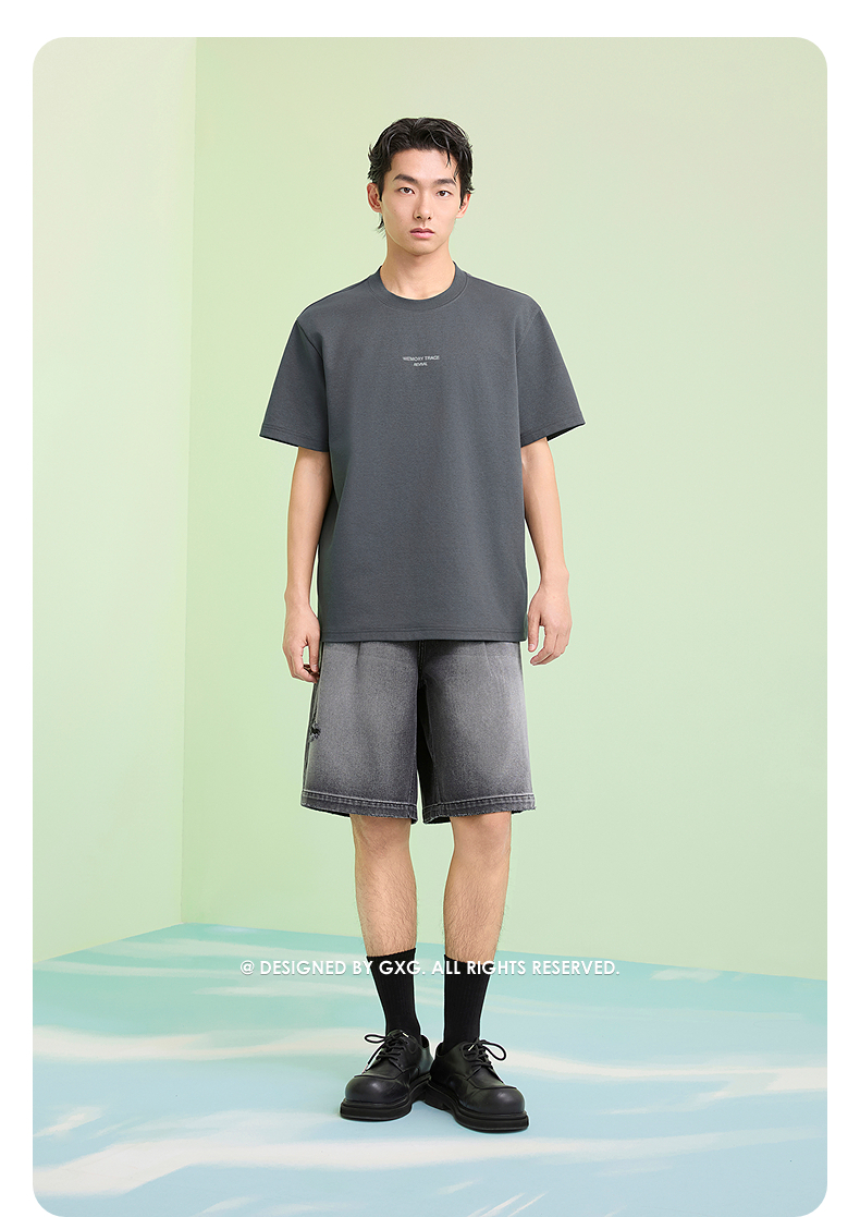 GXG男装 圆领T恤分割线上衣美式复古短袖针织 2025夏季新品