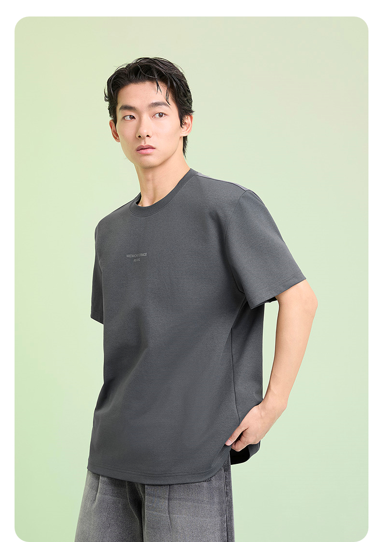 GXG男装 265g重磅字母绣花简约时尚圆领短袖T恤男士 夏季新品