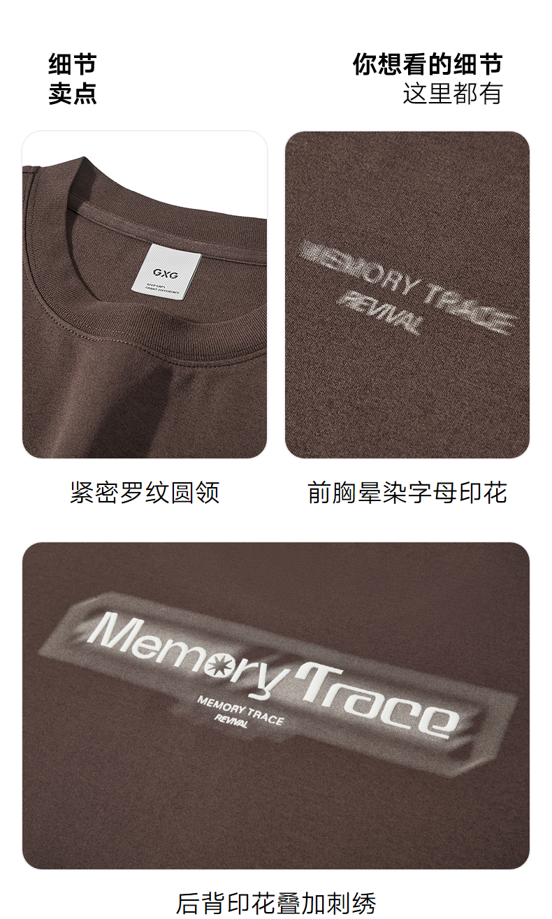 GXG男装 棕色后背印花圆领卫衣 24年春季热卖GFX13100231