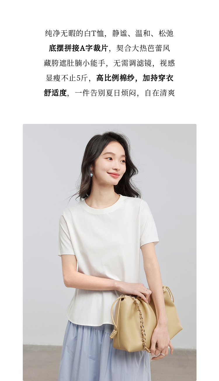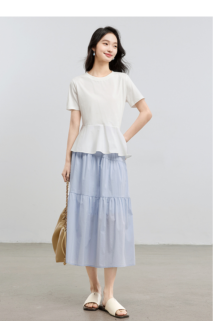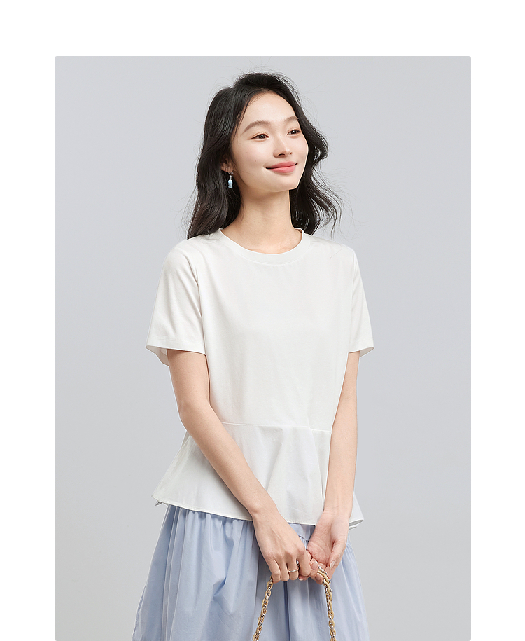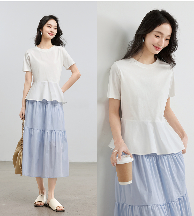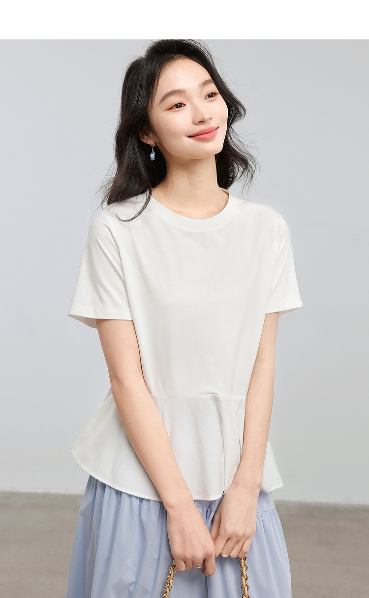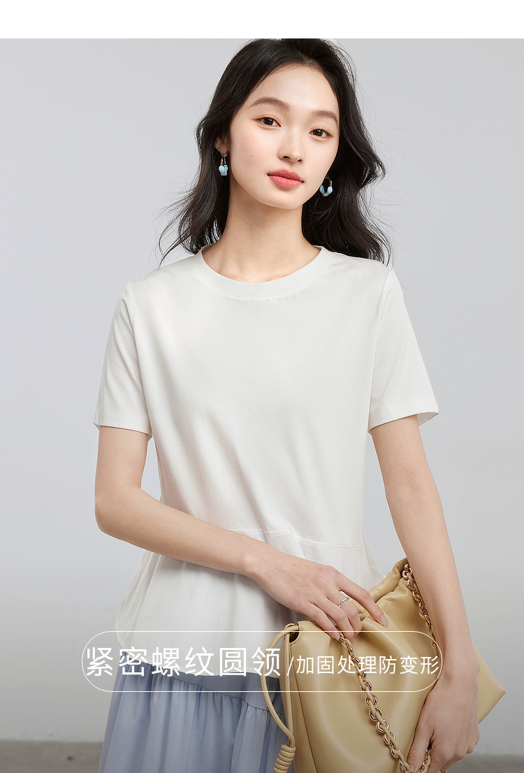 熙世界荷叶边下摆拼接短袖t恤女设计感白色体恤上衣2025夏日新款