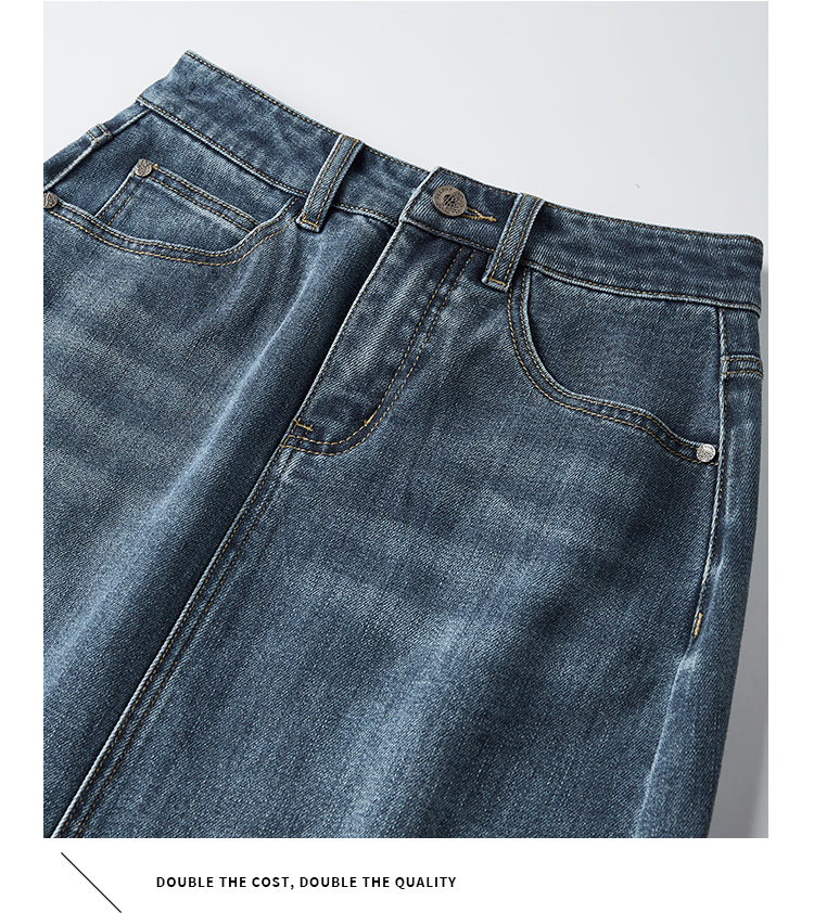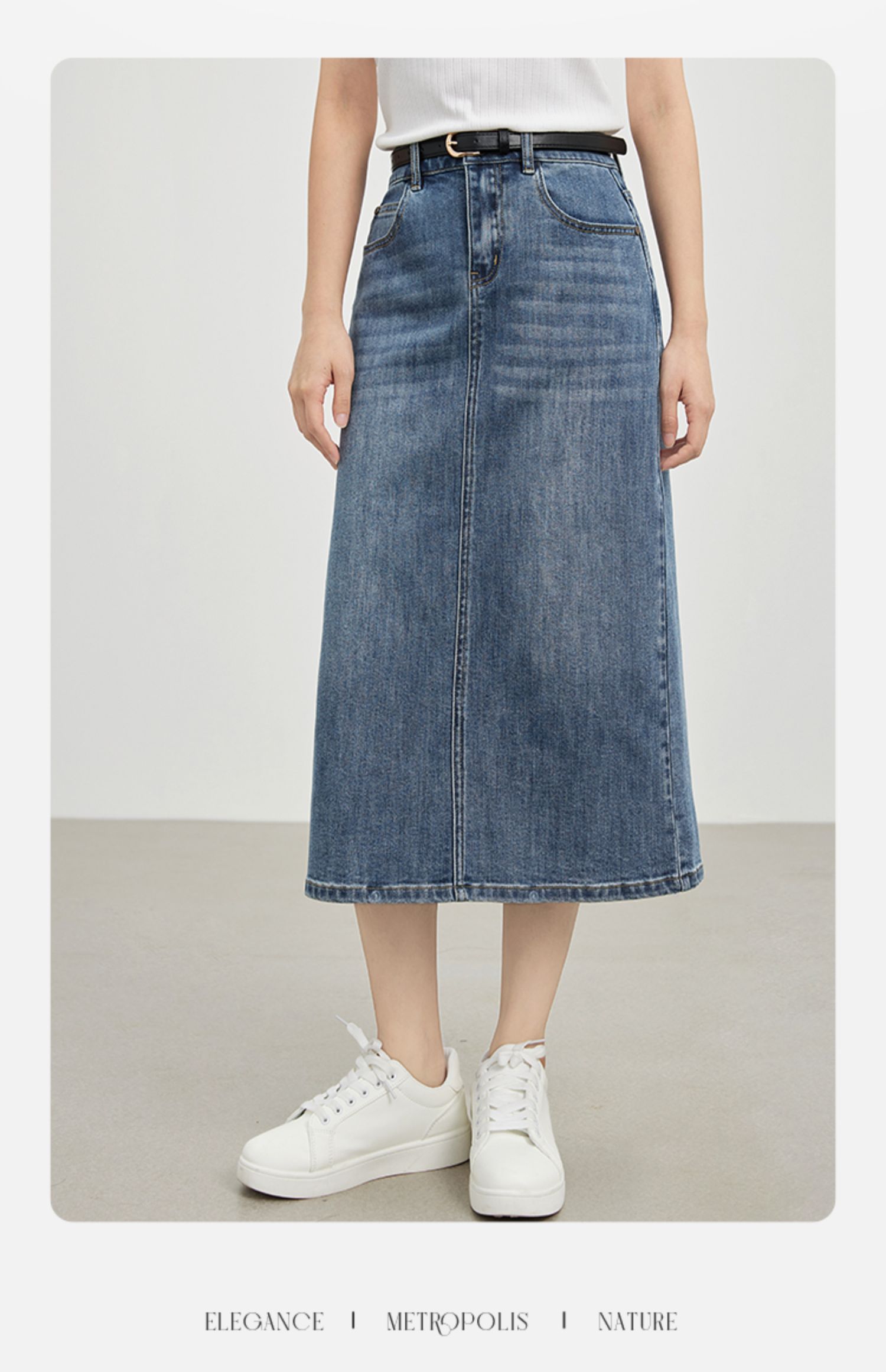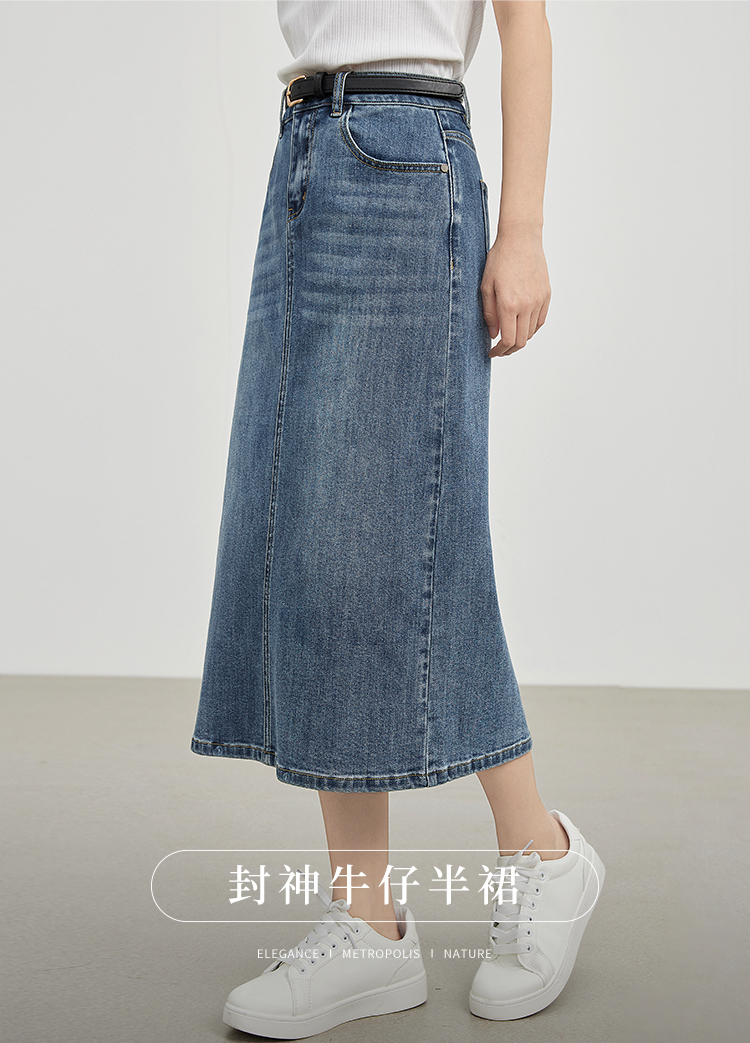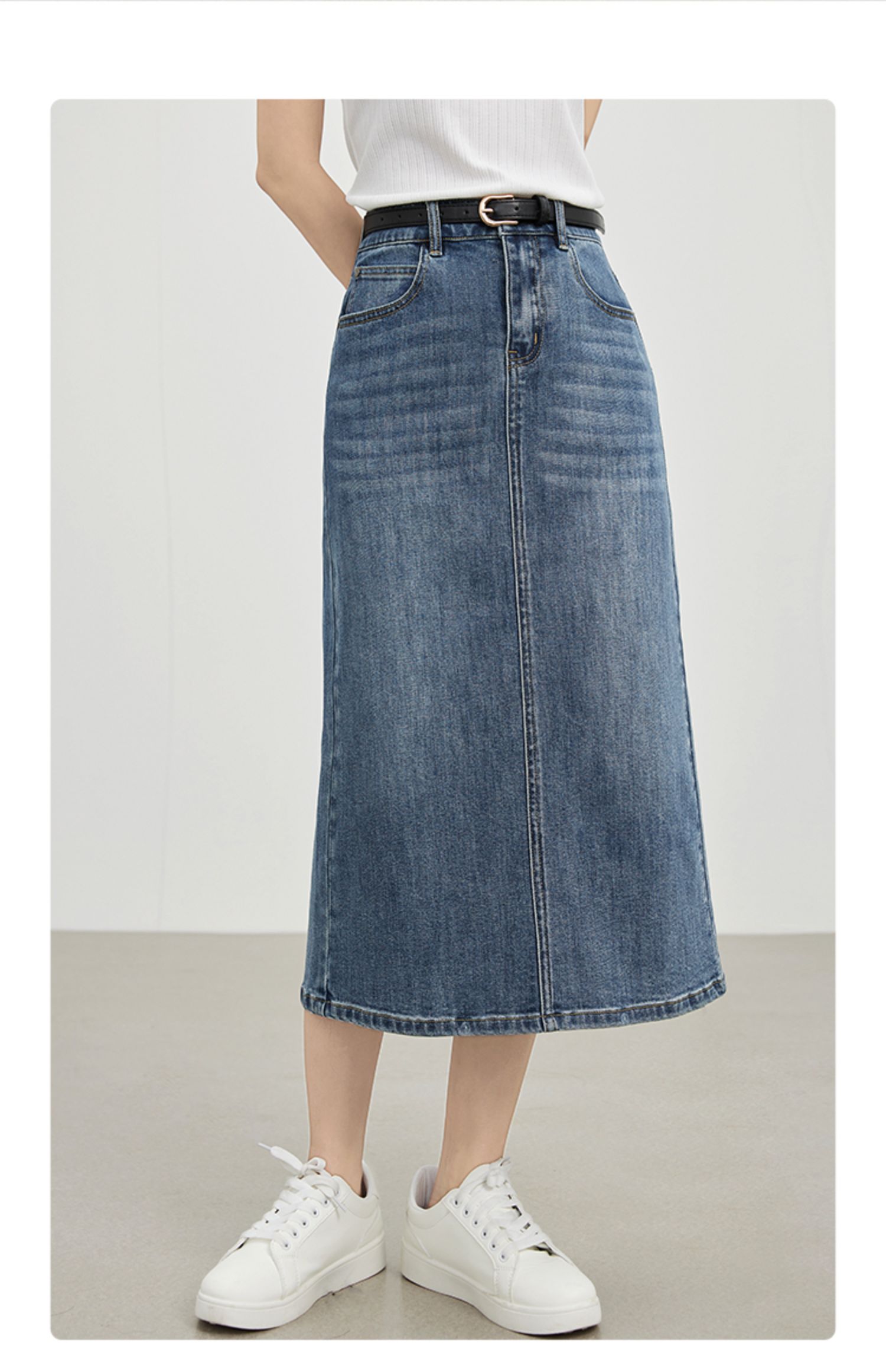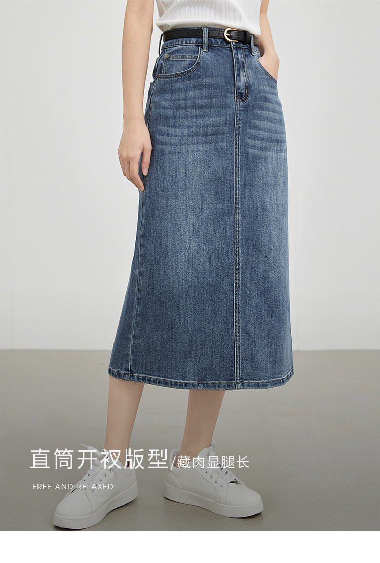 【五折购】熙世界梨型身材牛仔半身裙女2025秋新款高腰复古直筒A字中长裙