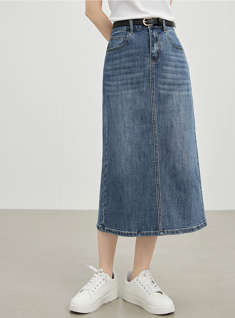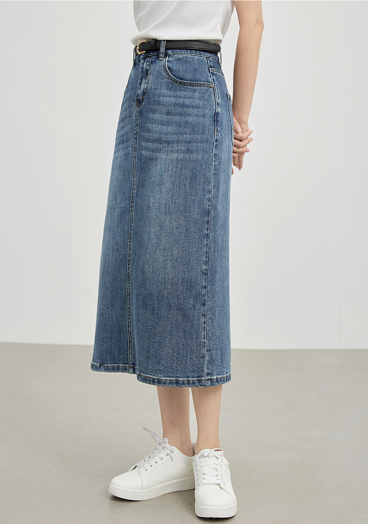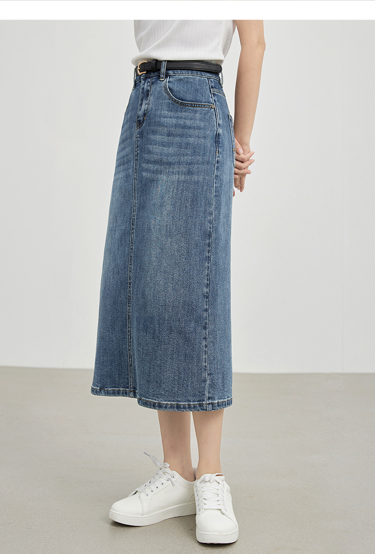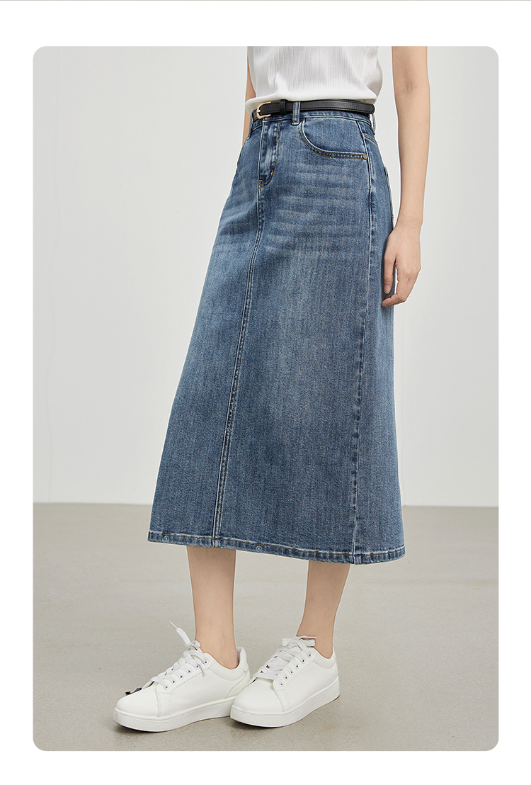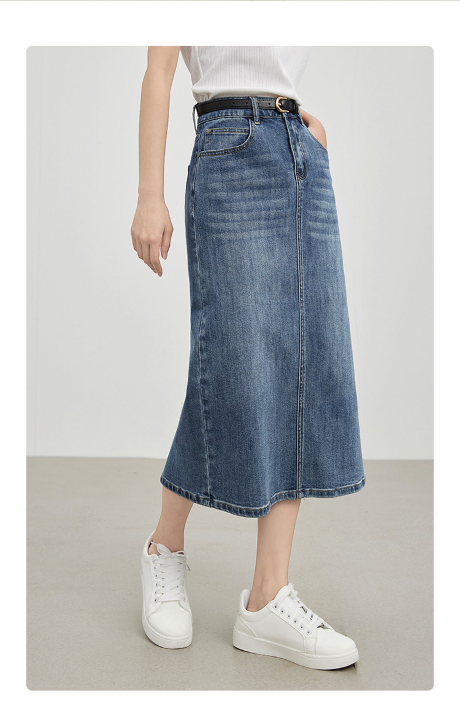 【五折购】熙世界梨型身材牛仔半身裙女2025秋新款高腰复古直筒A字中长裙