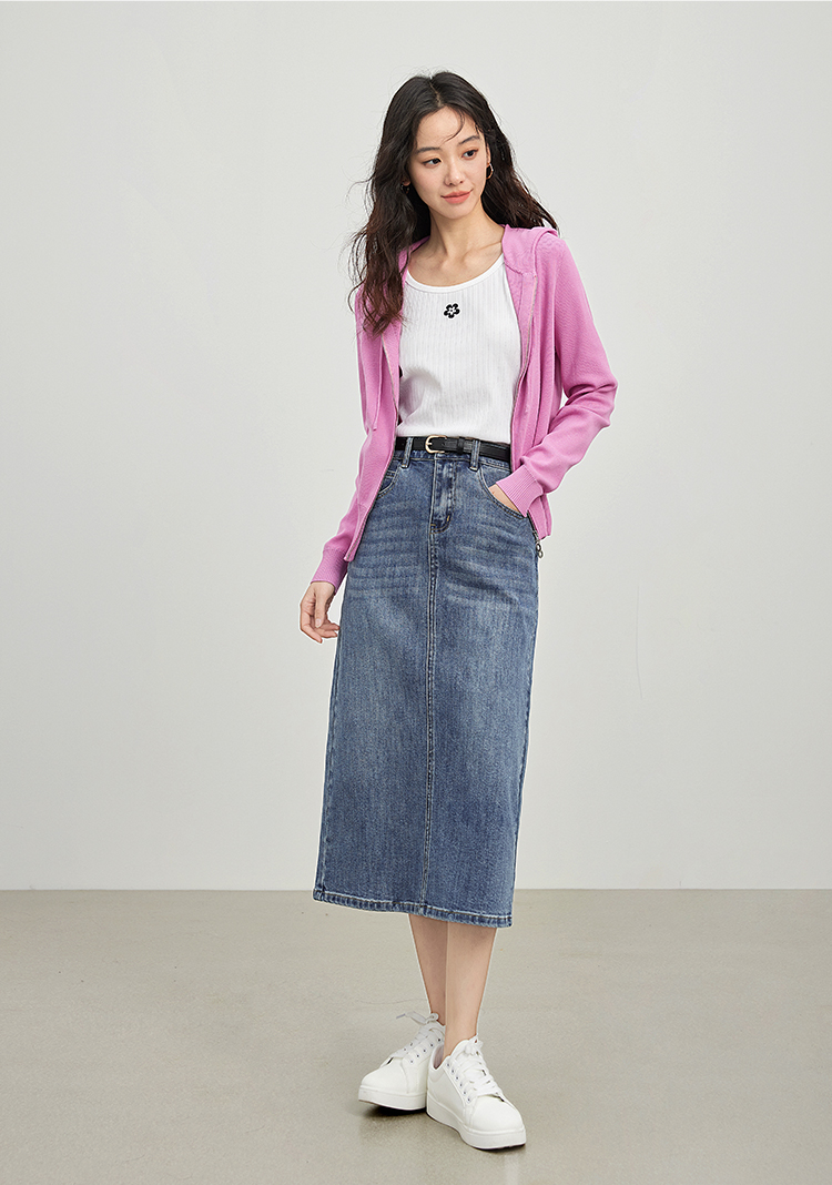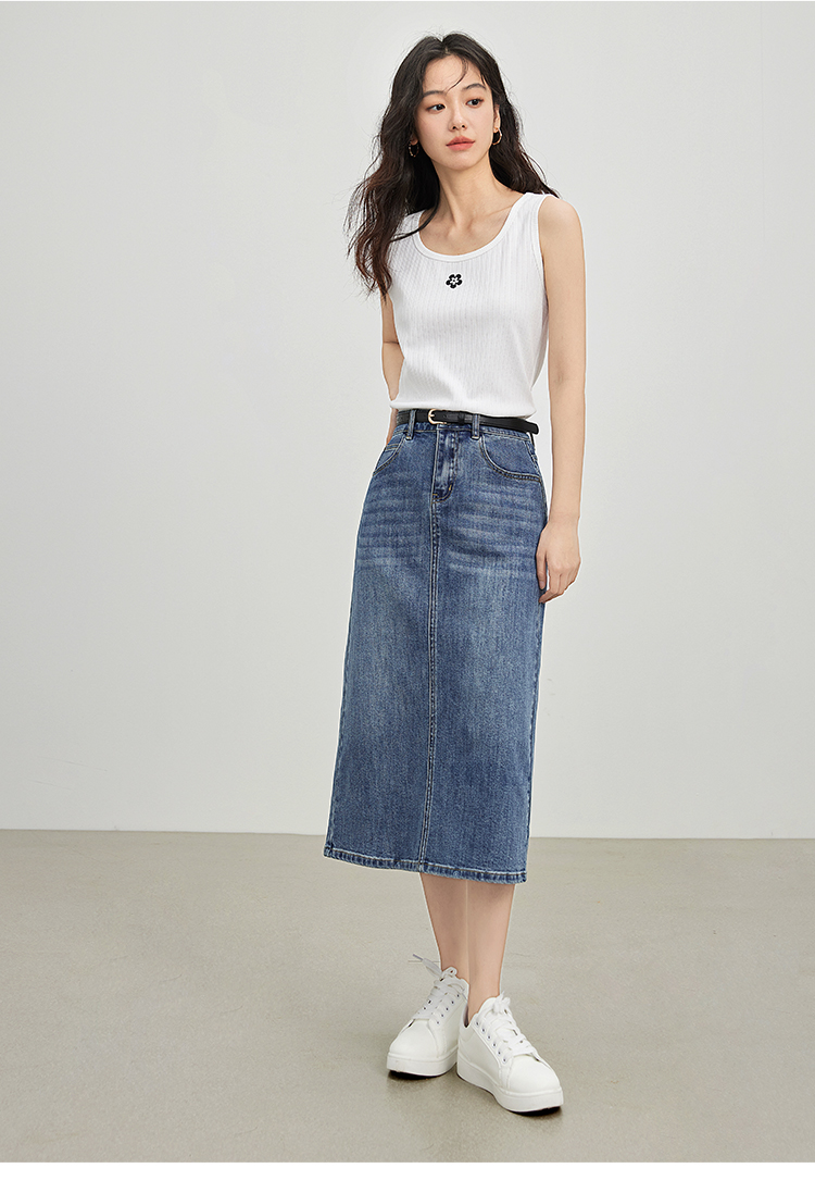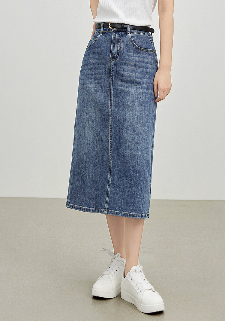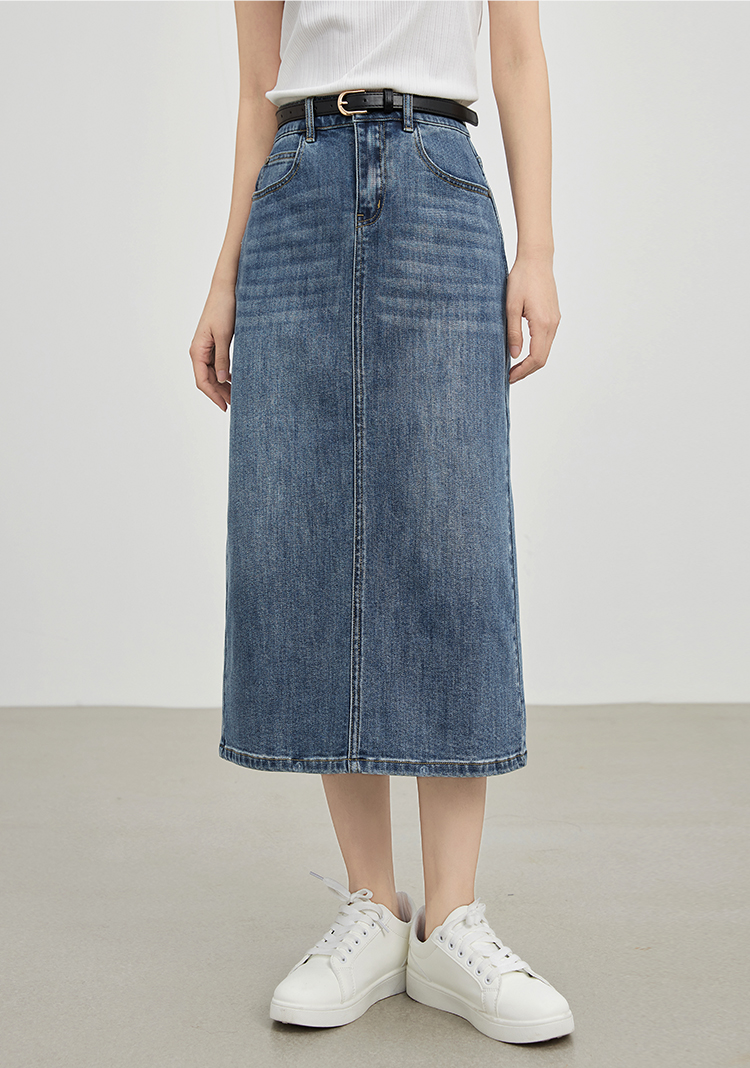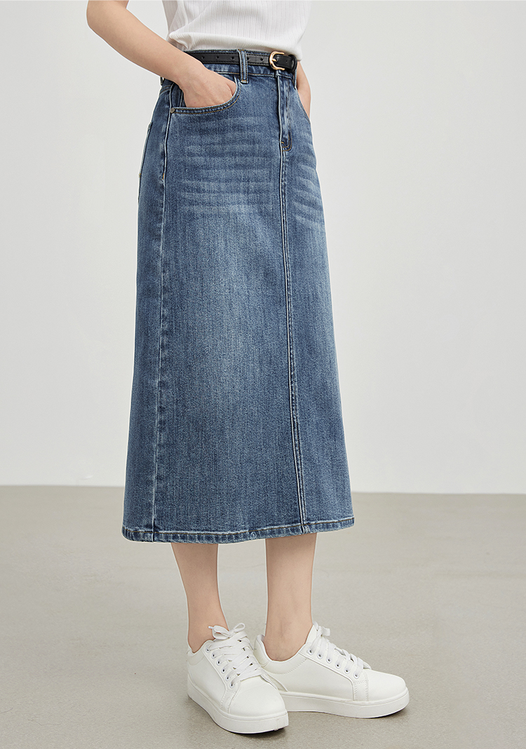 【五折购】熙世界梨型身材牛仔半身裙女2025秋新款高腰复古直筒A字中长裙