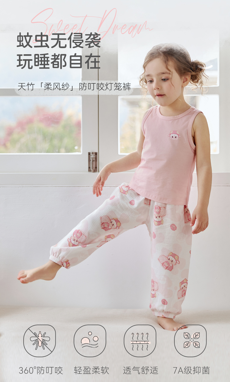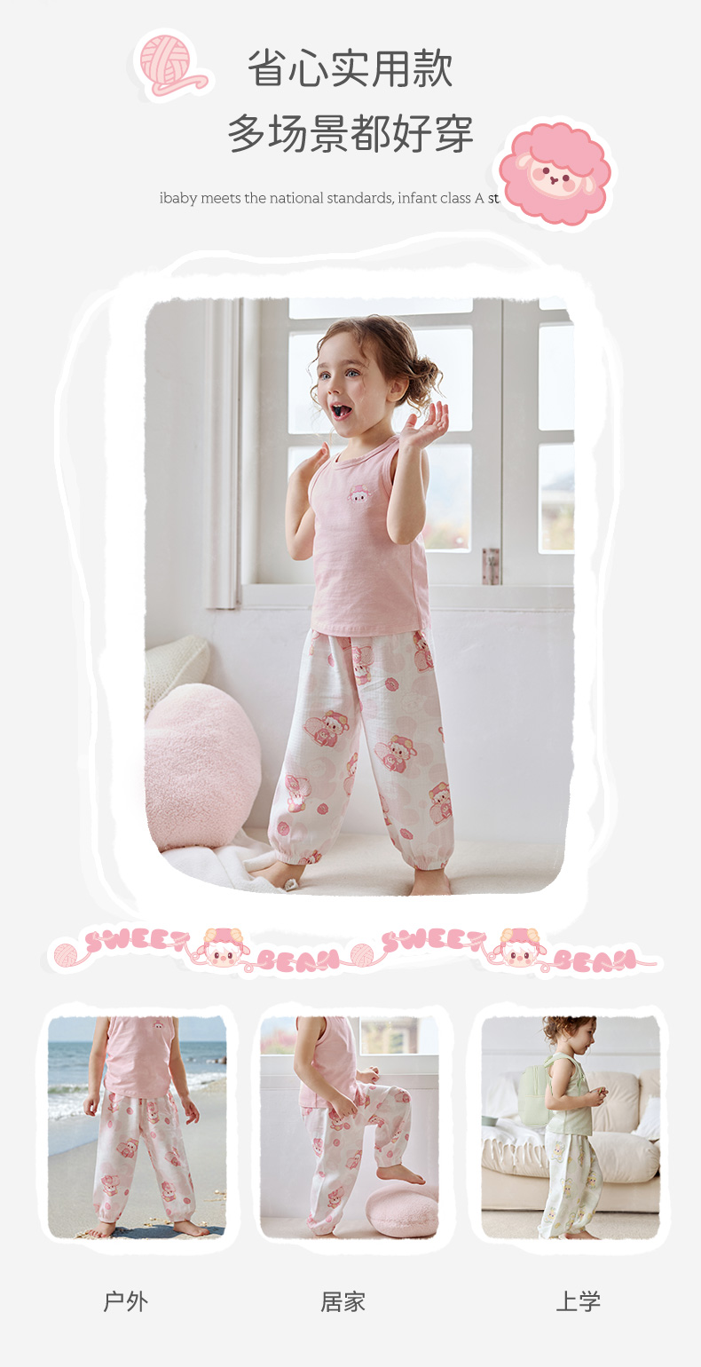 【2025年春夏新品】i-baby/英伦宝贝泡泡玛特纱布儿童防蚊裤男女宝宝灯笼裤 春夏季婴幼儿纱布长裤透气