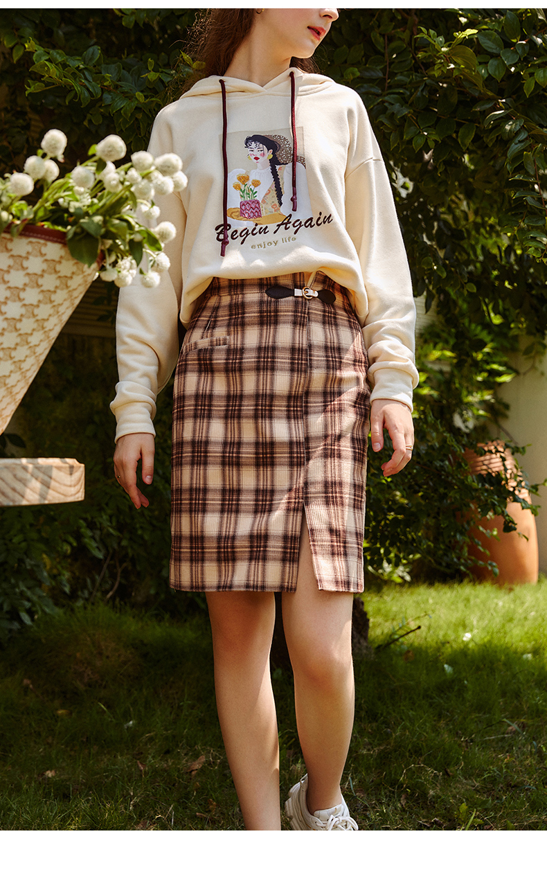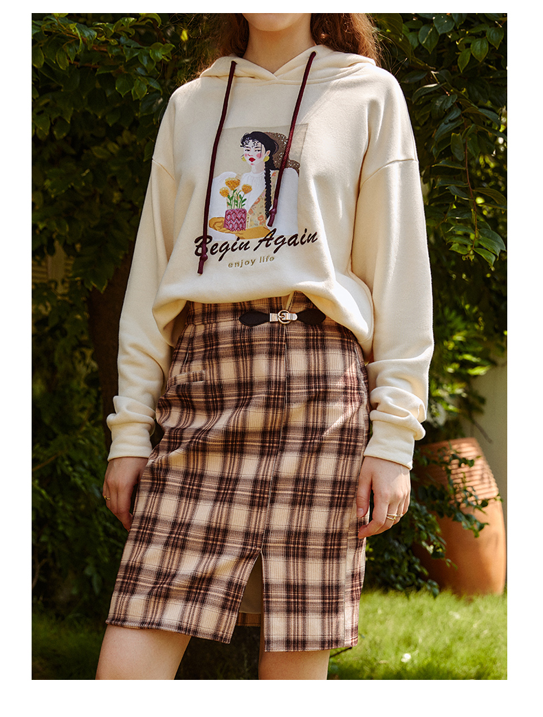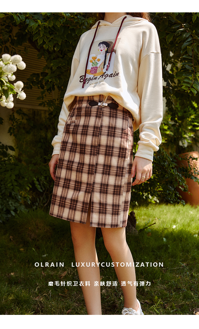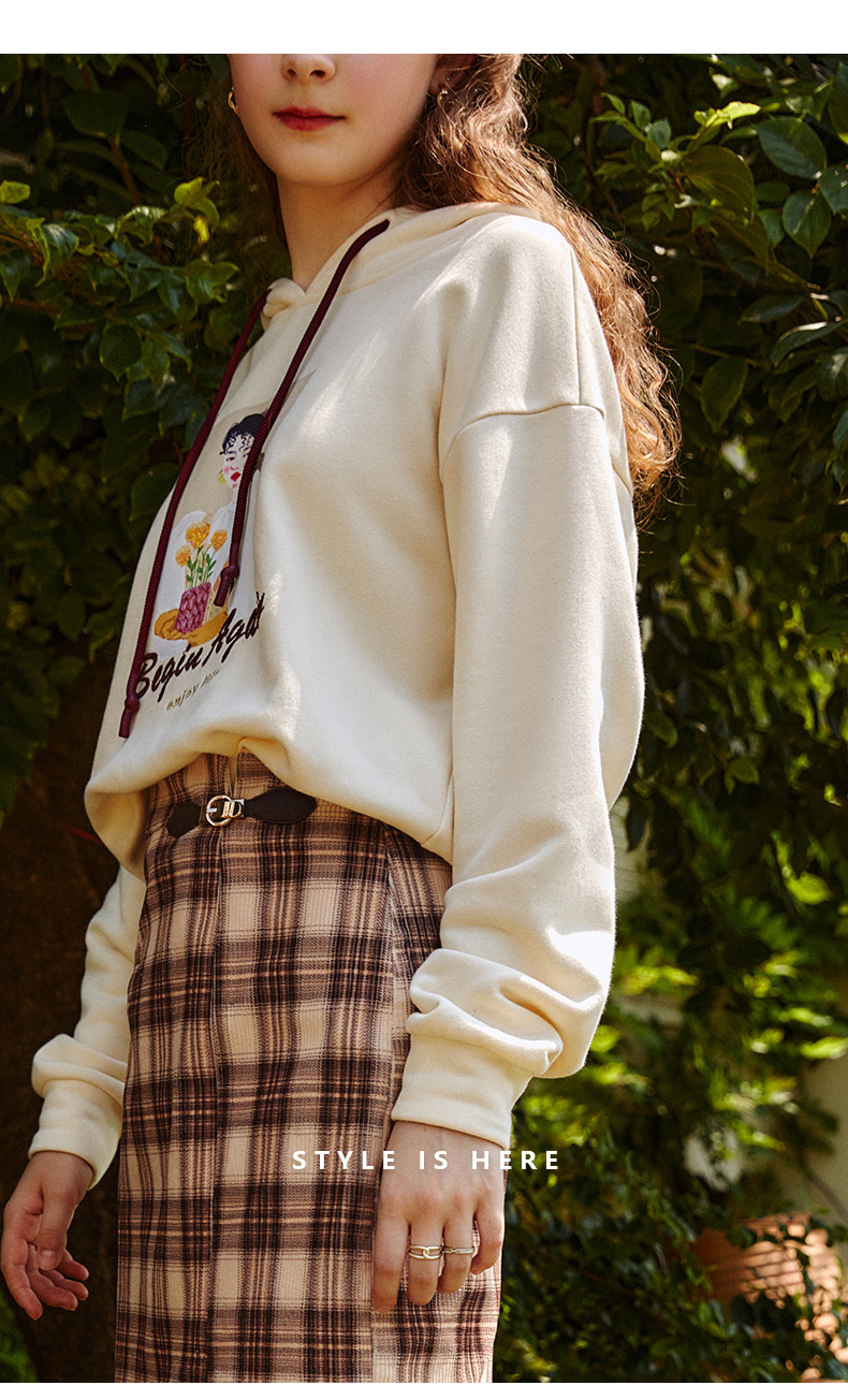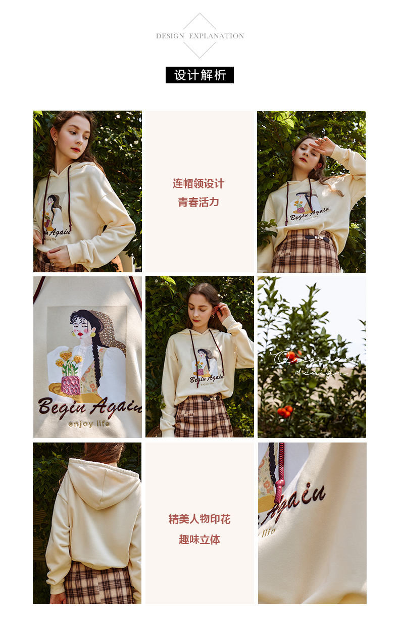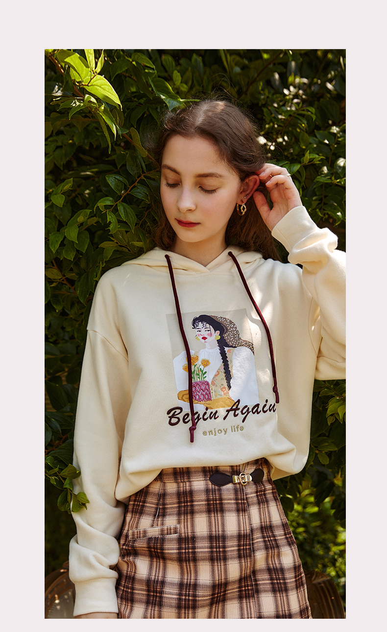 欧芮儿连帽卫衣女冬季2025年新款宽松显瘦慵懒风印花磨毛针织上衣