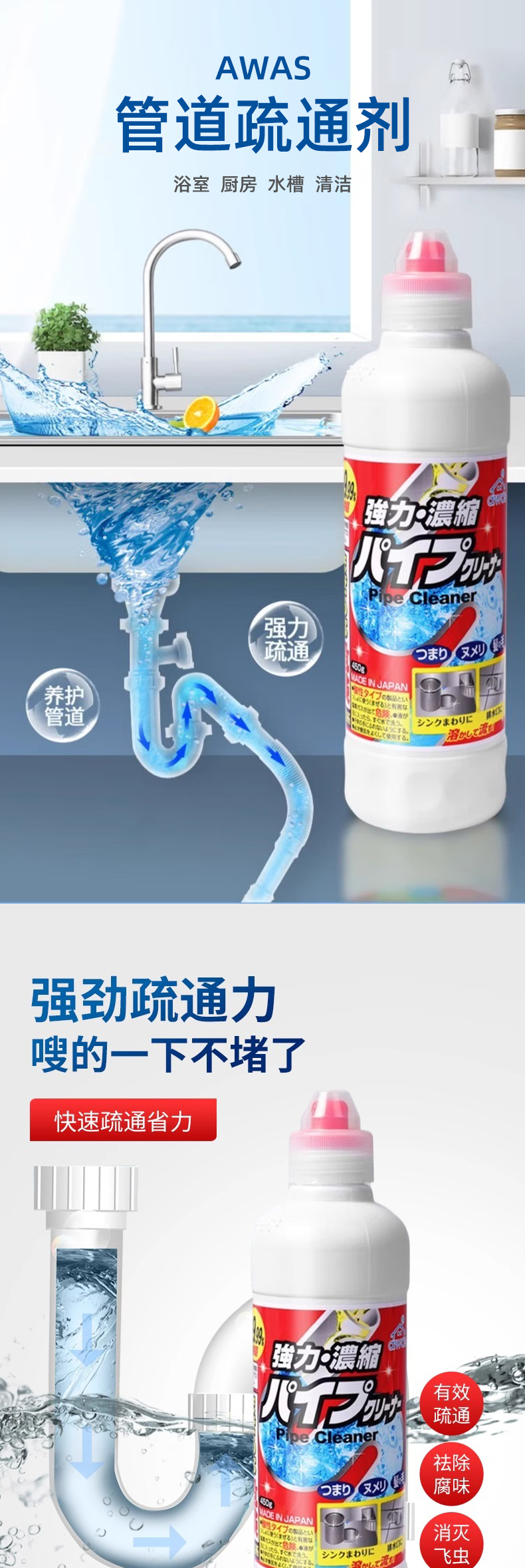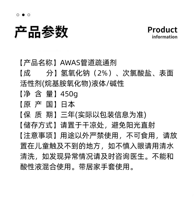 日本进口AWAS管道疏通剂450g
