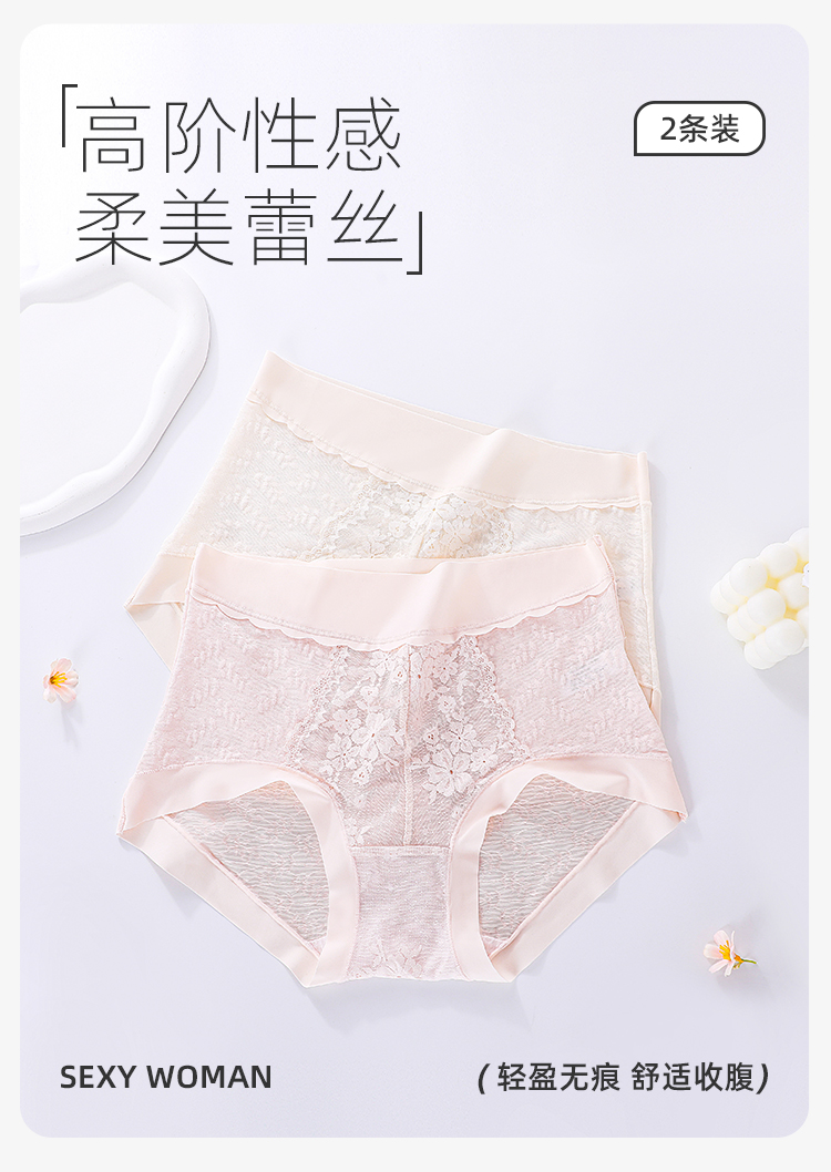 【2条装】熳洁儿 性感蕾丝内裤女士微收腹提臀高腰24752105