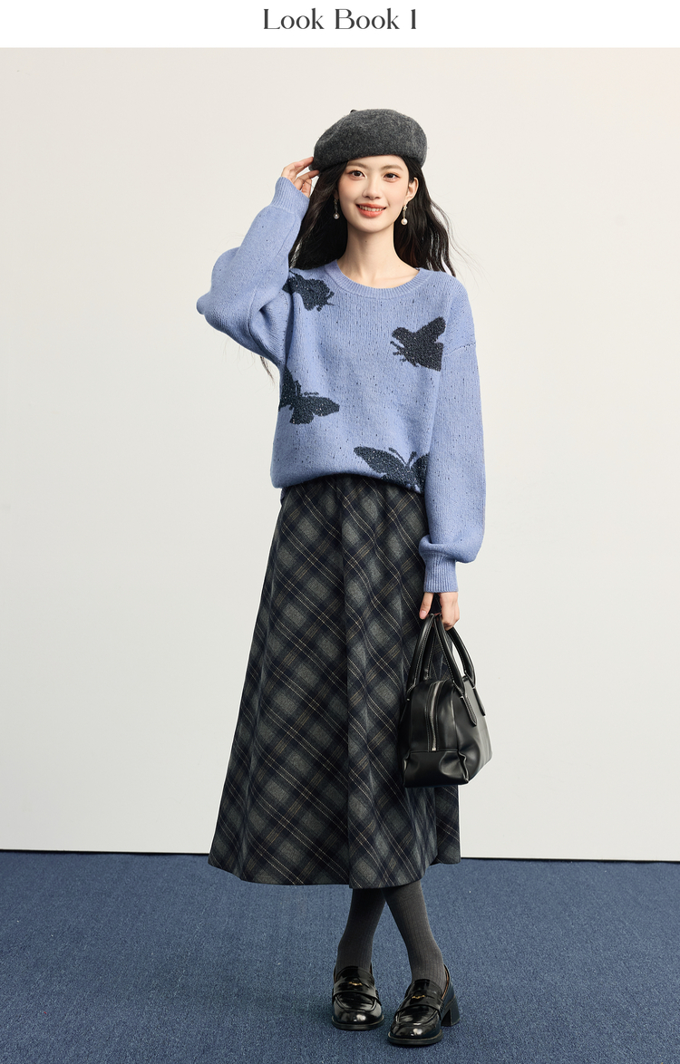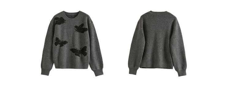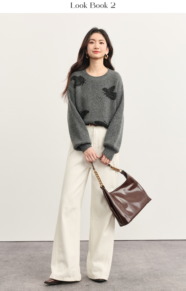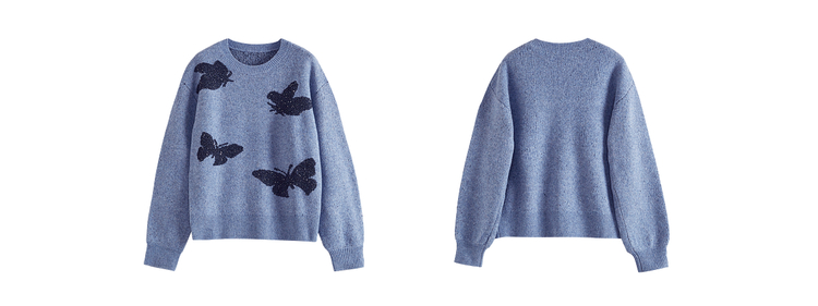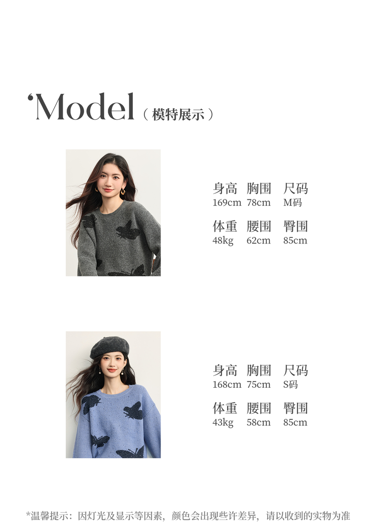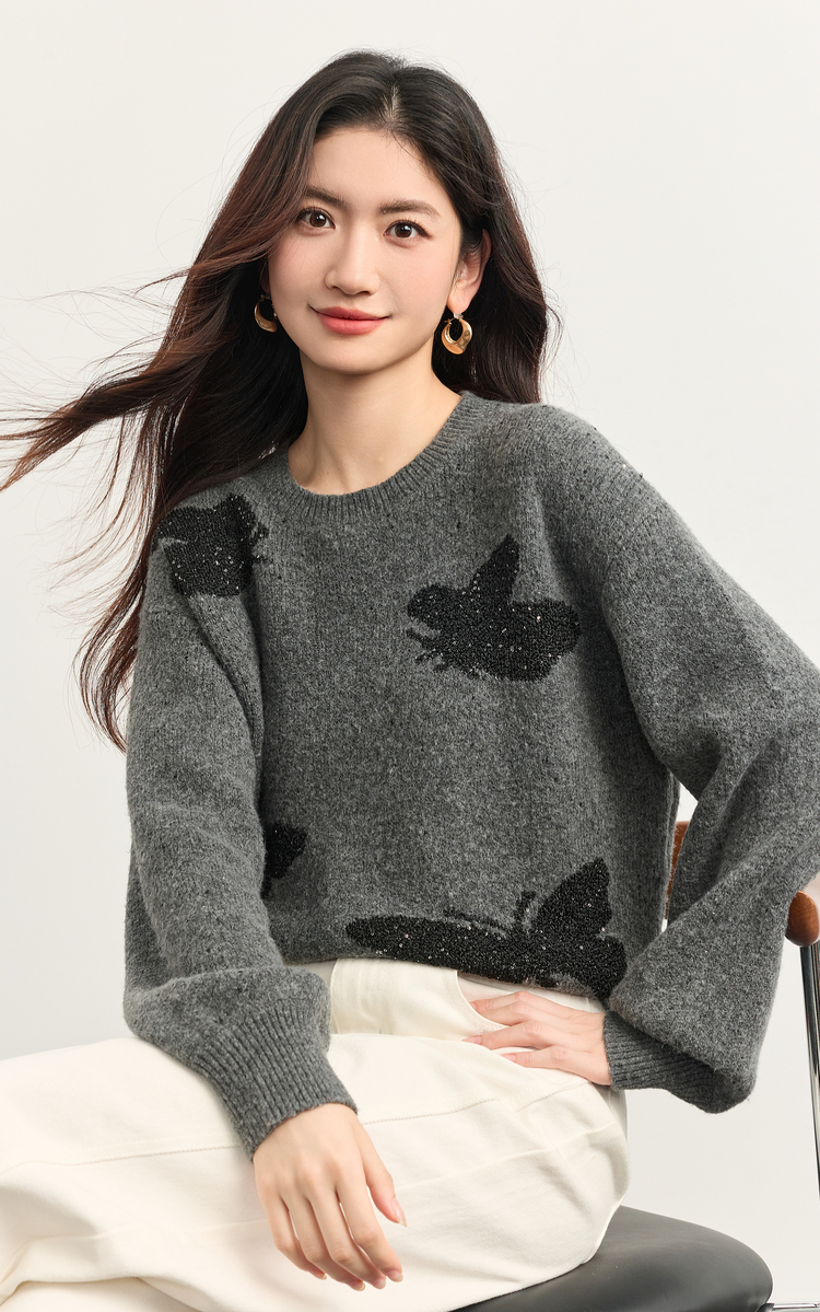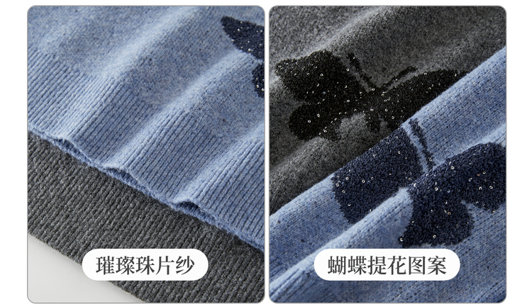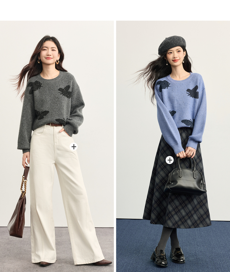 【周末秒杀】熙世界仿牛绒提花蝴蝶毛衣女秋冬2025新款宽松圆领厚款针织衫上衣