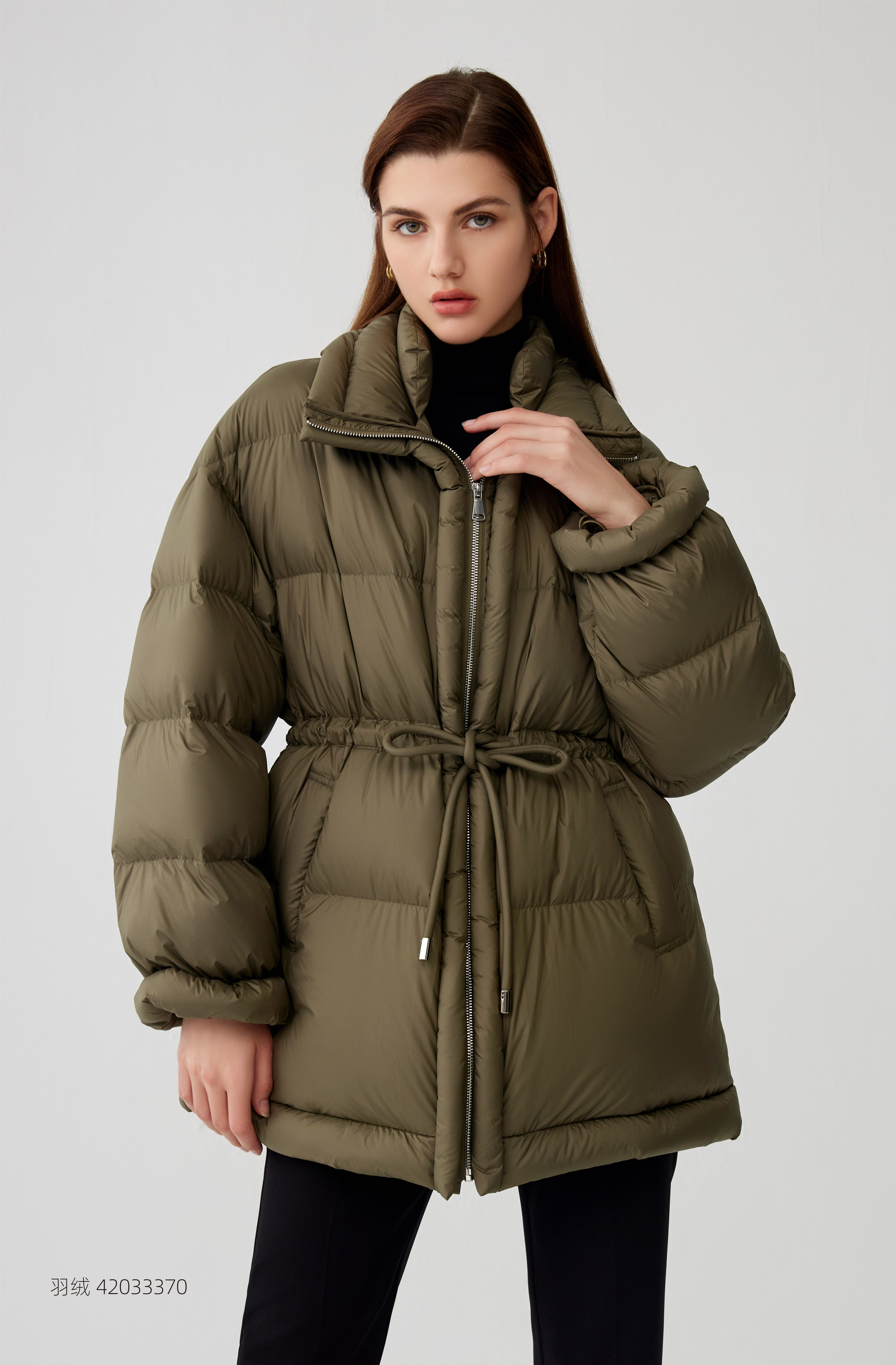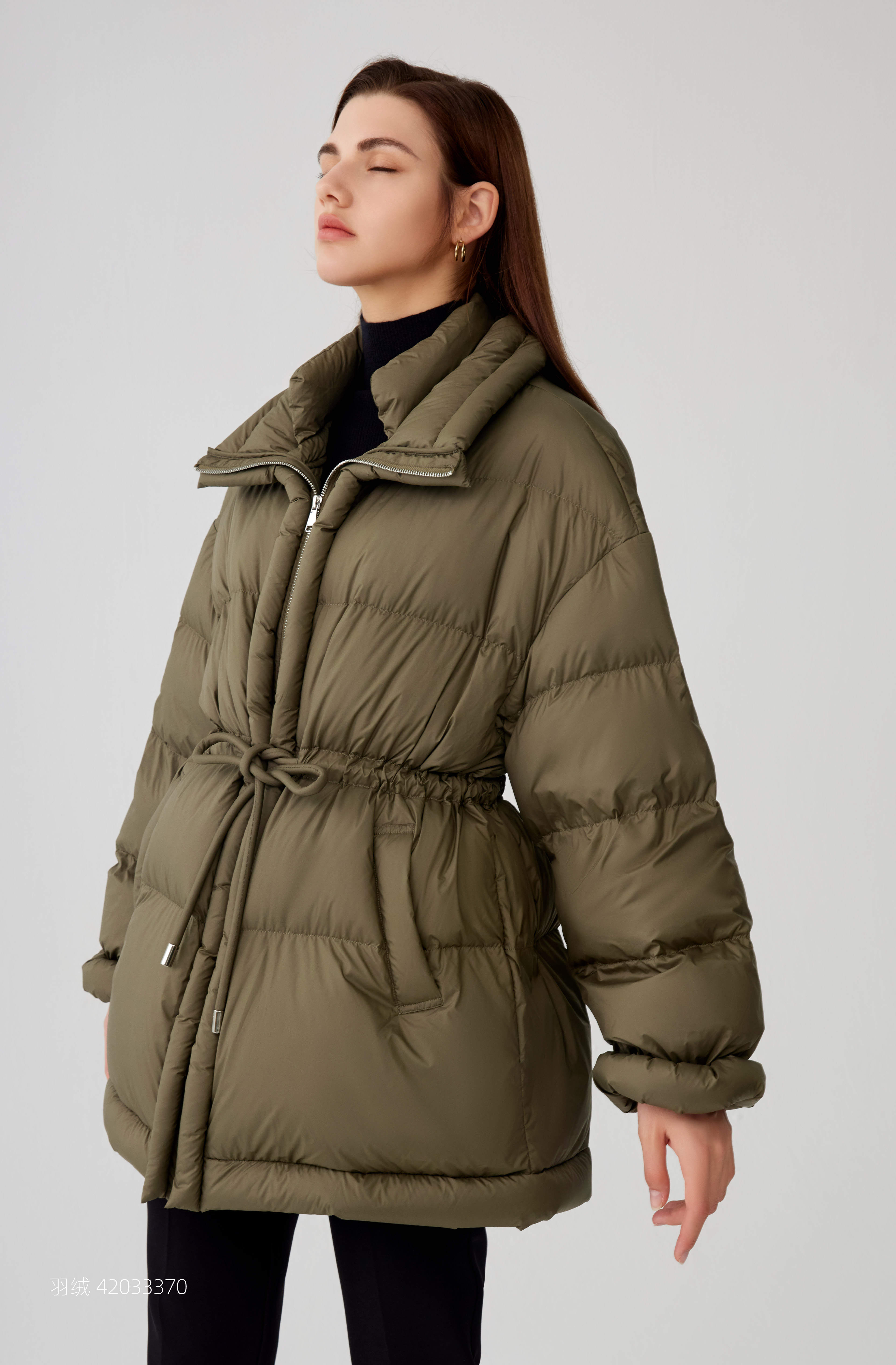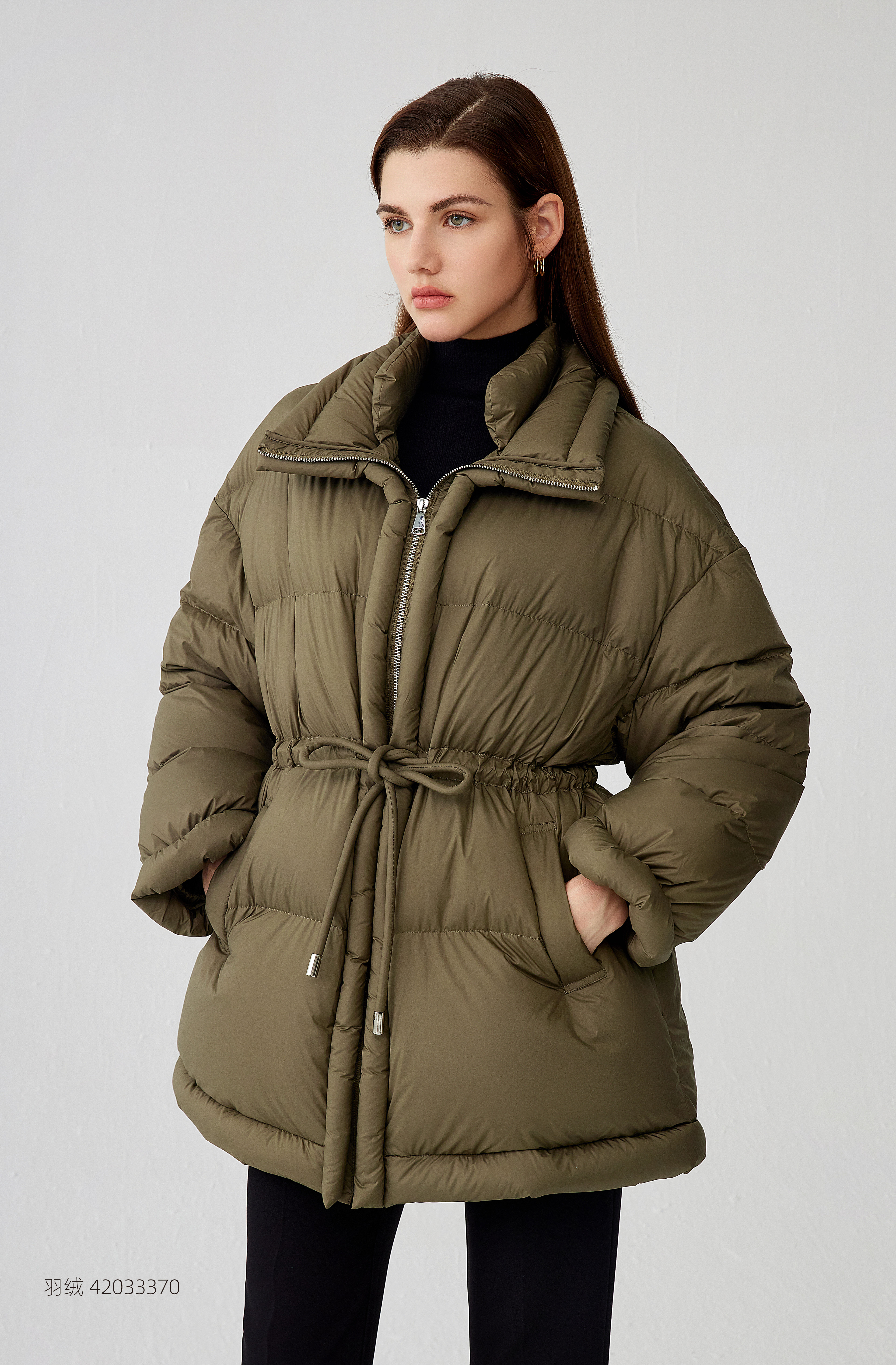 【中长款抽绳羽绒服】2023年秋冬新品女士90白鹅绒羽绒服加厚保暖羽绒外套