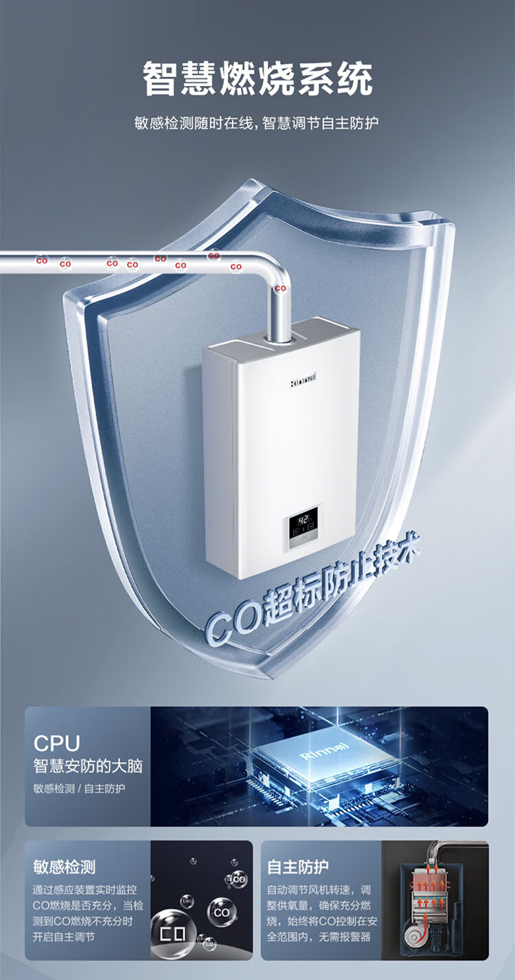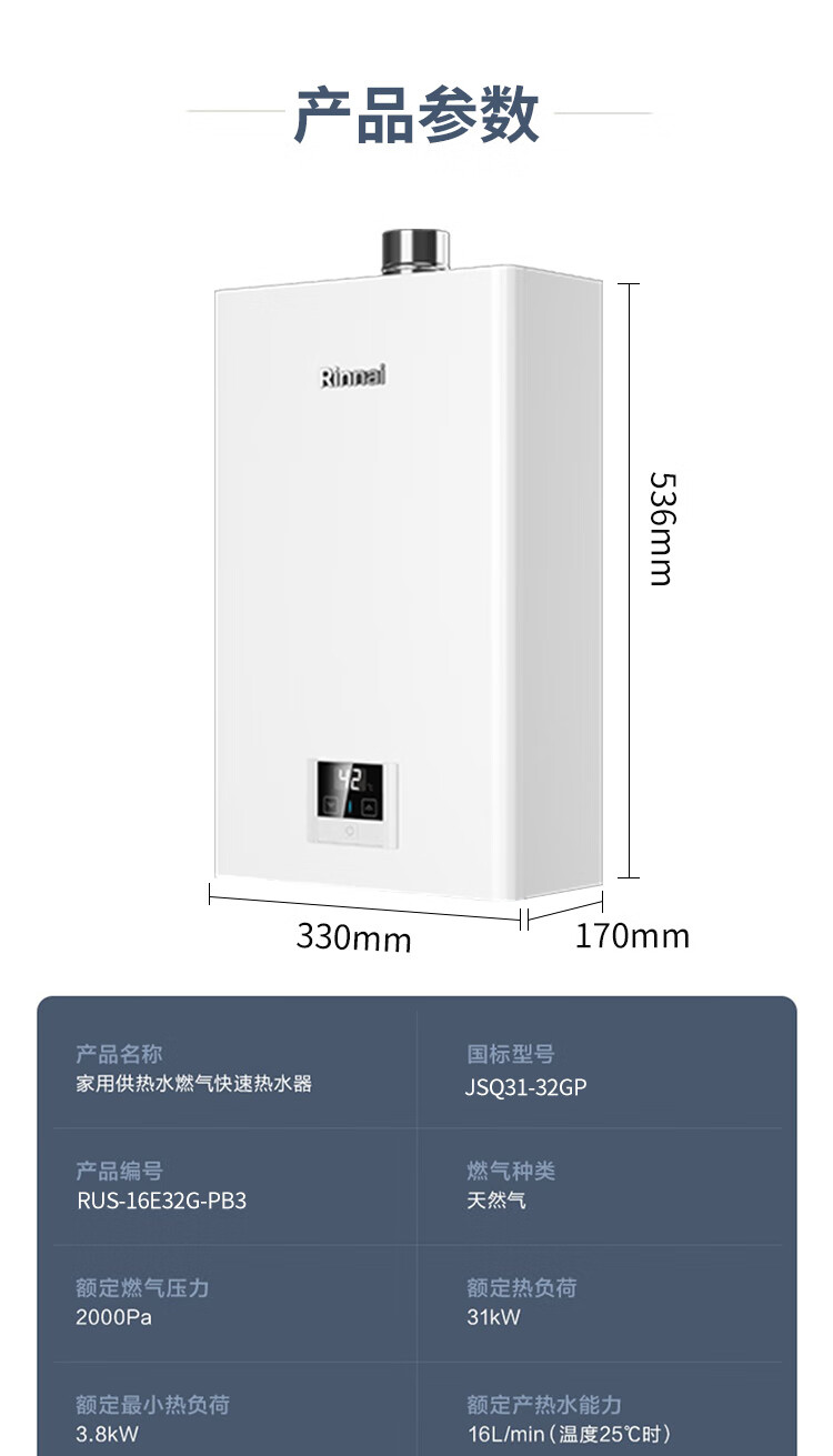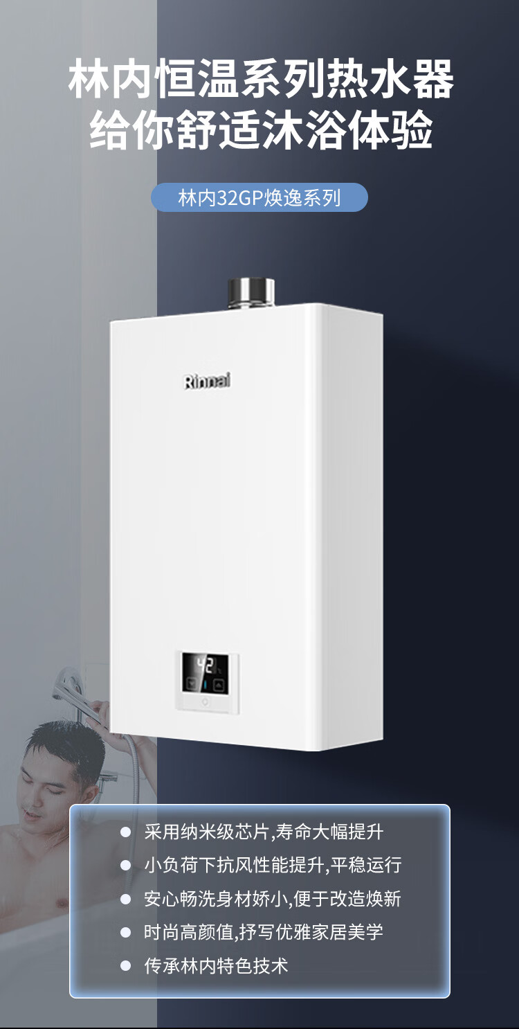 林内RUS-16E32G-PB3 全新升级CPU 肤感恒温家用热水器无氧铜16L天然气 16L RUS-16E32G-PB3 天然气