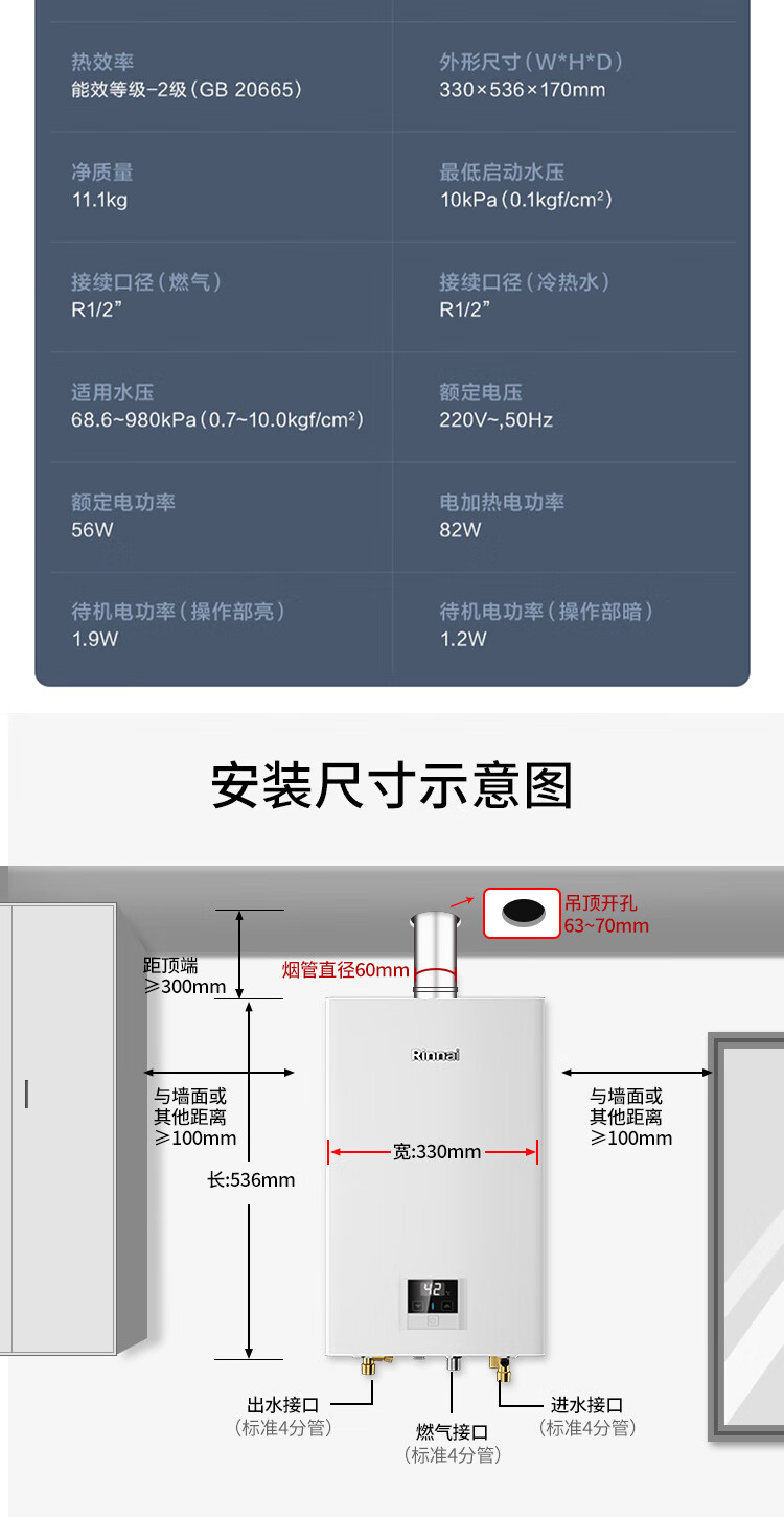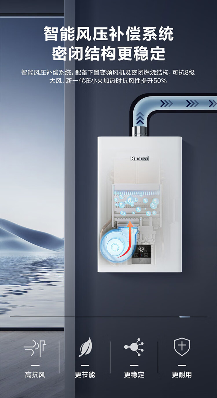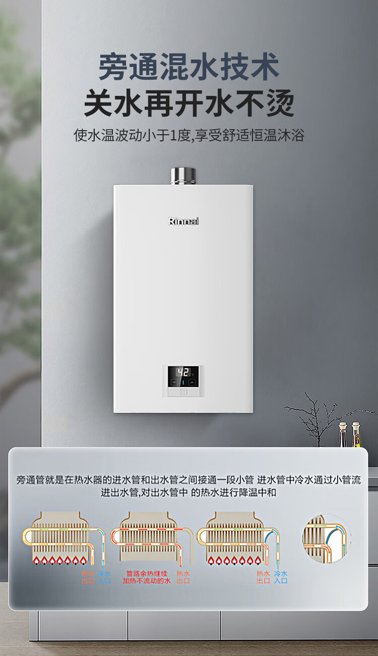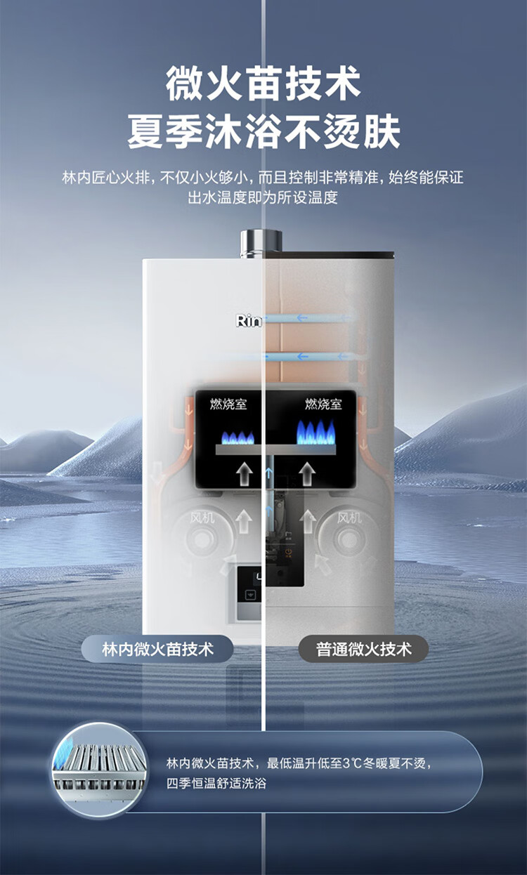 林内RUS-16E32G-PB3 全新升级CPU 肤感恒温家用热水器无氧铜16L天然气 16L RUS-16E32G-PB3 天然气