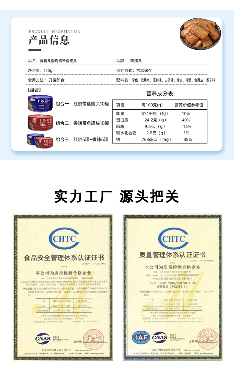 【规格】下饭带鱼罐头(香辣味)150g;下饭带鱼罐头(红烧味)150g;