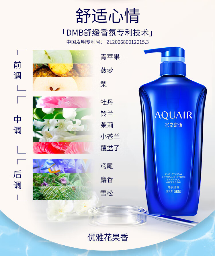 水之密语(AQUAIR)净润臻养洗发露(控油型)600ml 控油蓬松 平衡水油男女士通用