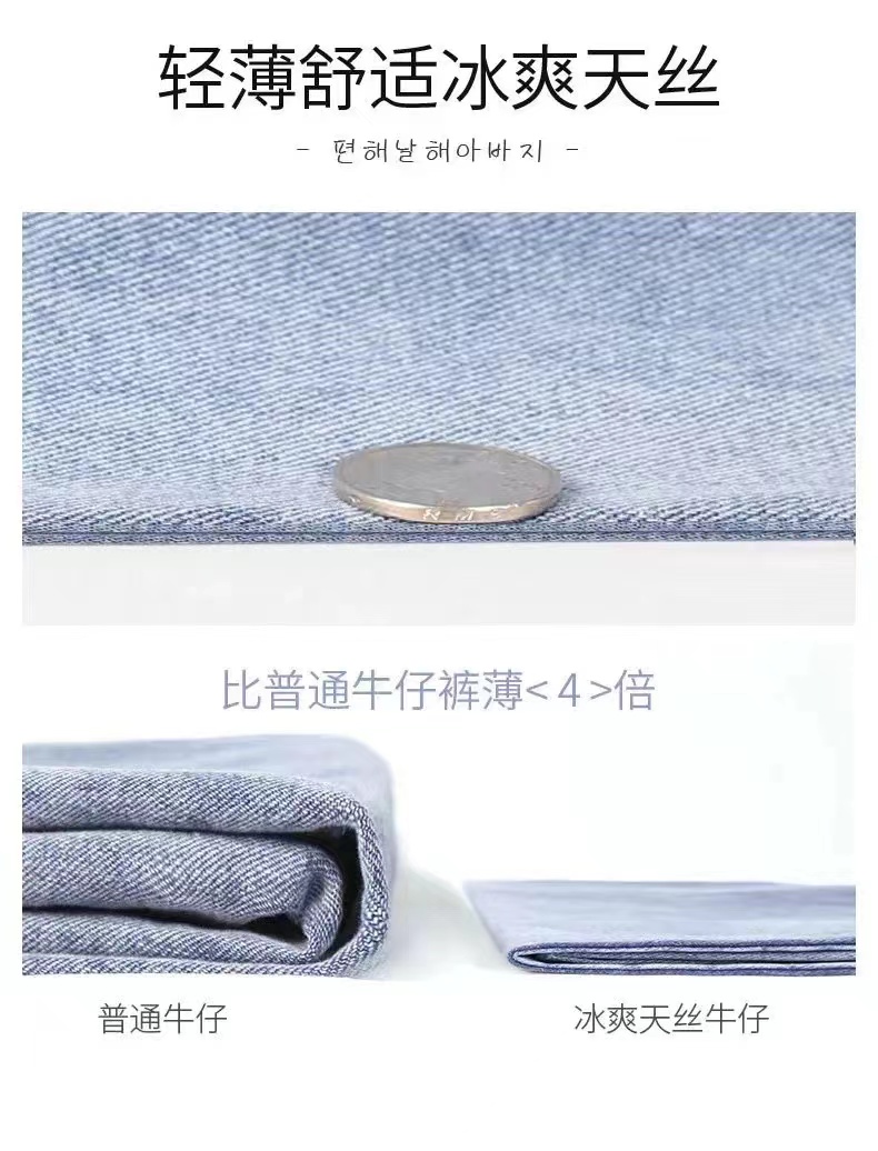 一点厚重的感觉都没有,拿到手,同样对折一次,肉眼可见地比普通牛仔裤薄很多,一对比更是薄上4倍不止!