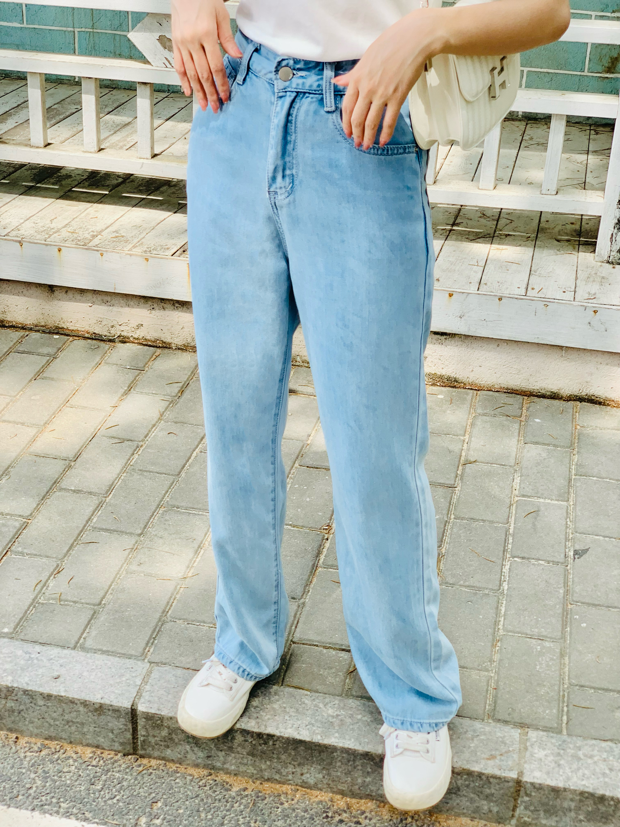 它的版型是直筒版型,最爱!真的什么时候都穿不腻宽松的裤腿,太能藏了!完美的掩盖了腿部的缺陷,什么小粗腿、X型腿、0型腿,都能通通遮住!