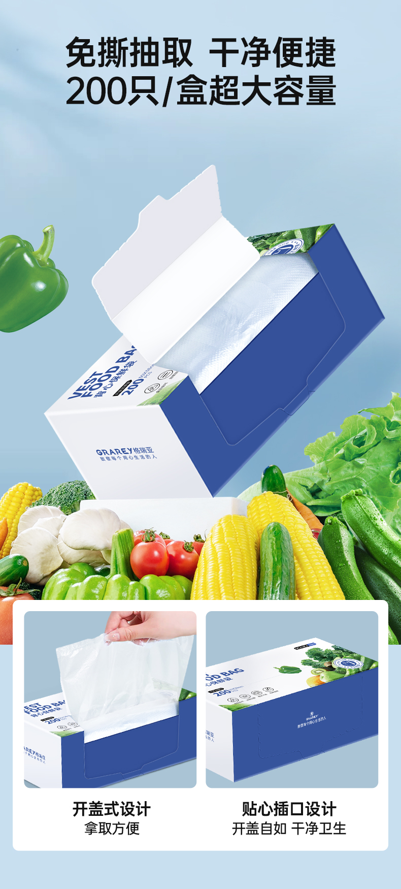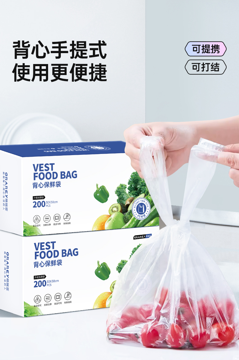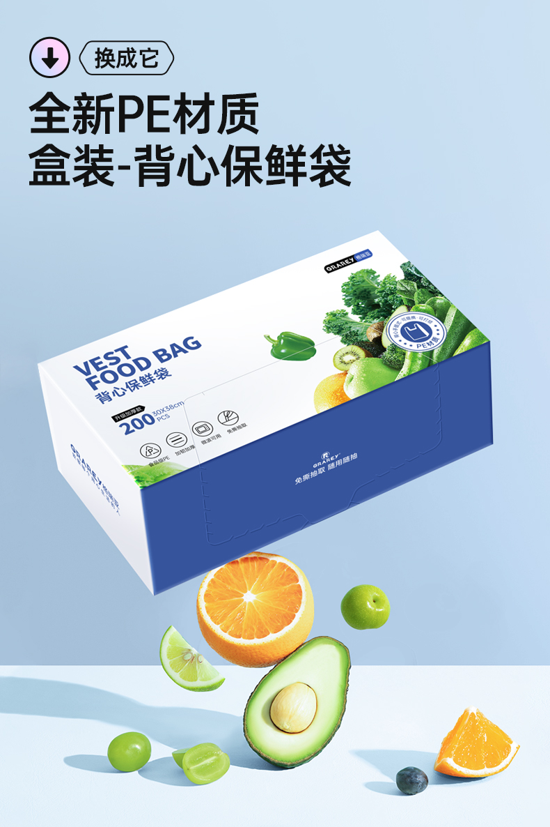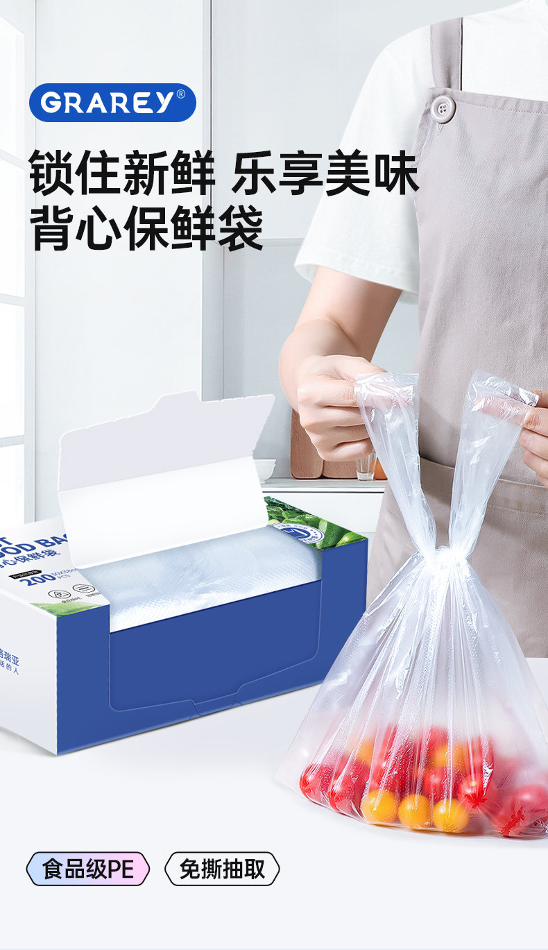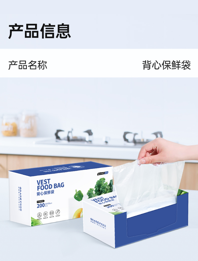 Grarey背心保鲜袋(200枚/盒 展开尺寸:30*38cm)