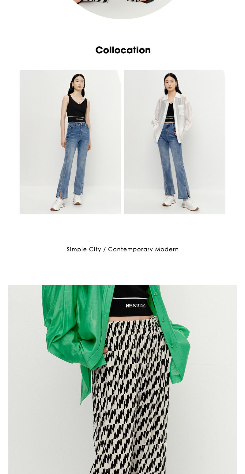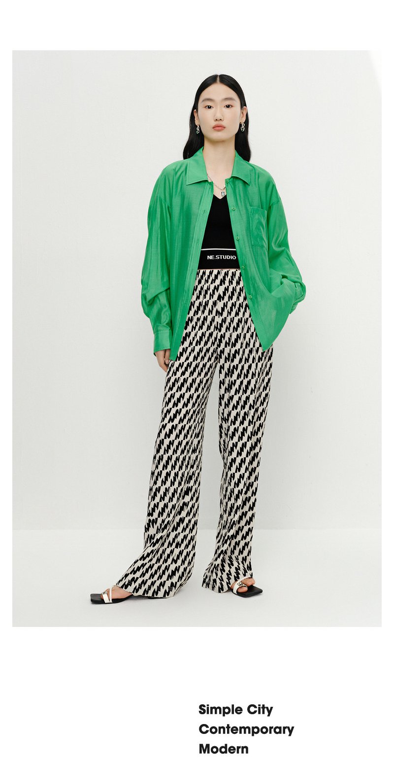 NEELLY纳俪商场同款夏季新款个性休闲裤女百搭薄款宽松垂感阔腿裤N25054H04637