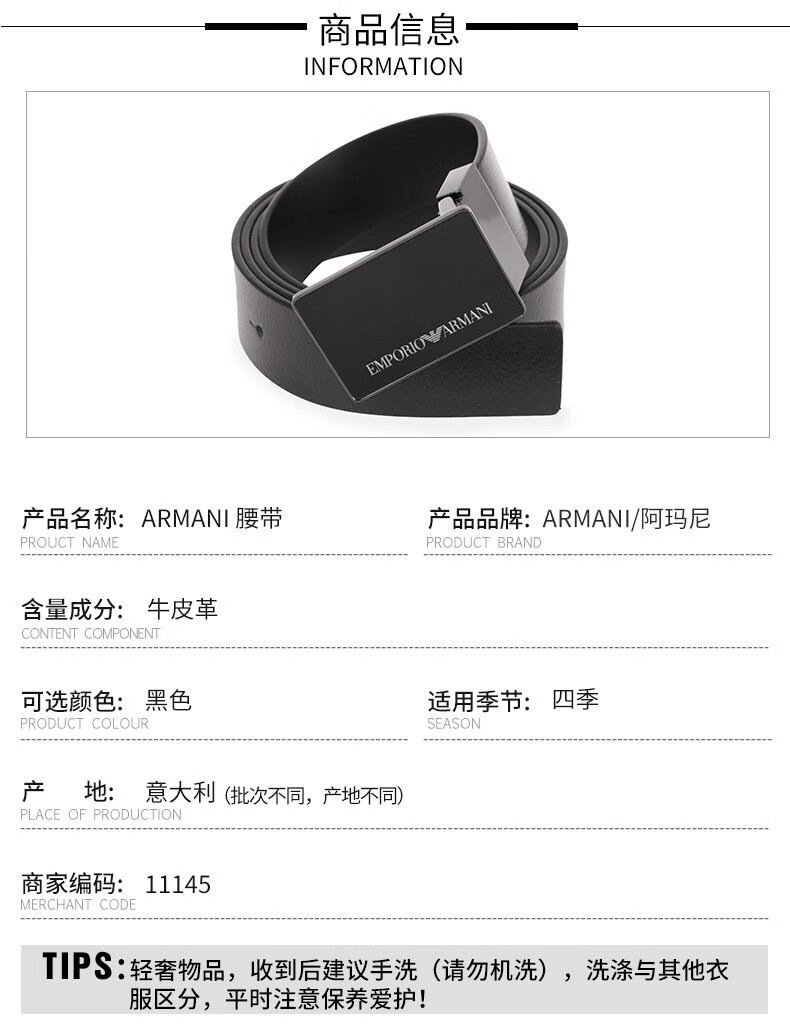 阿玛尼(ARMANI)男士 时尚潮流男士商务休闲真皮腰带 11145