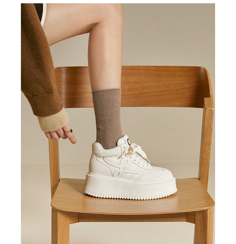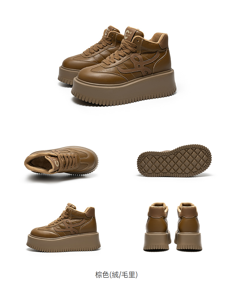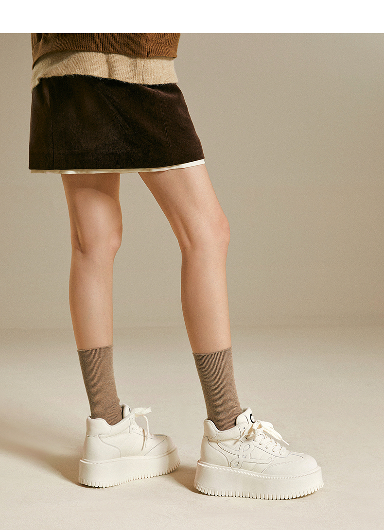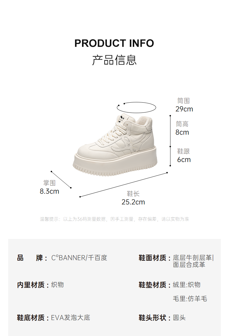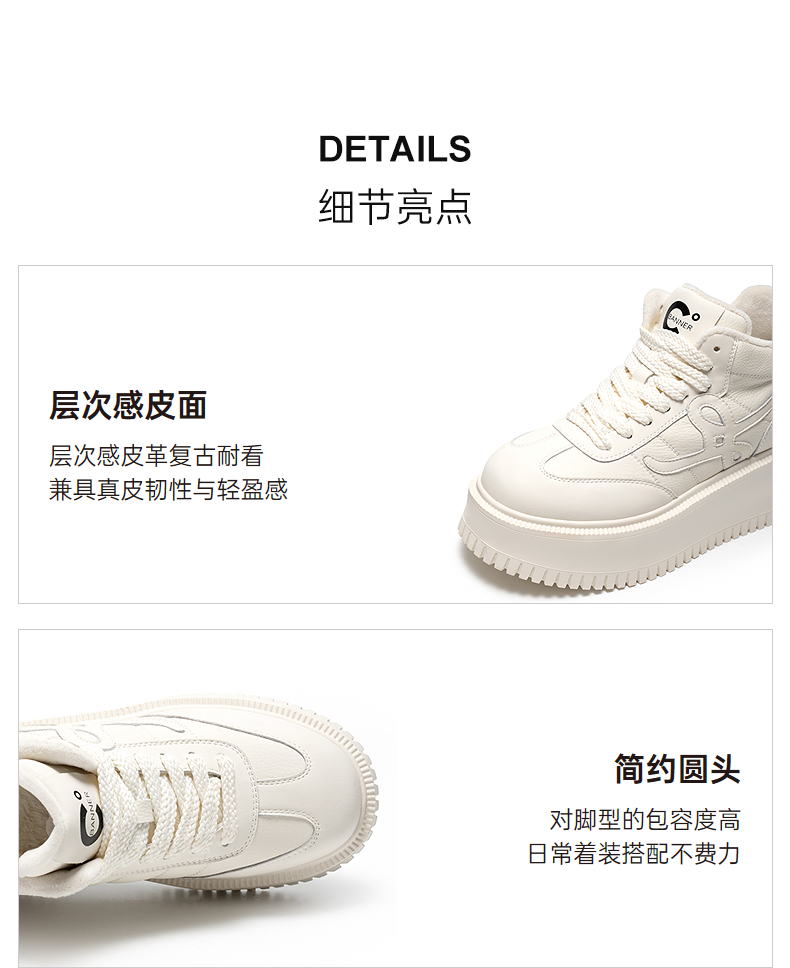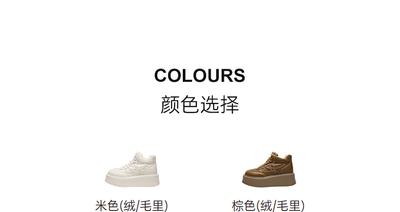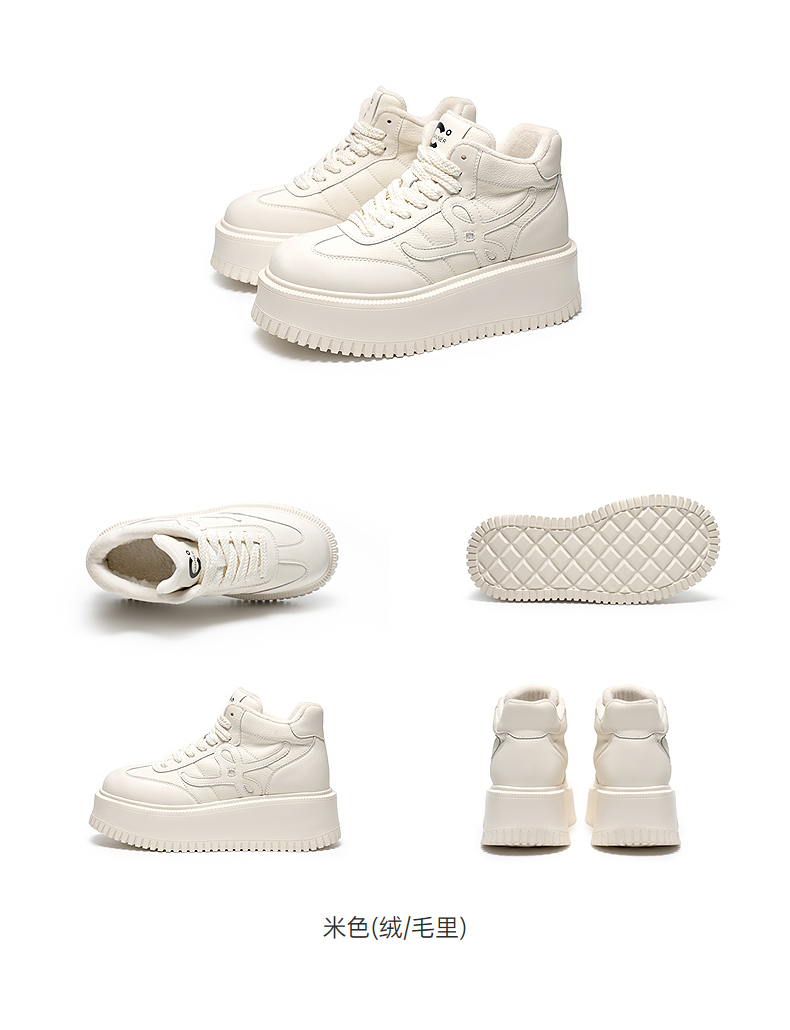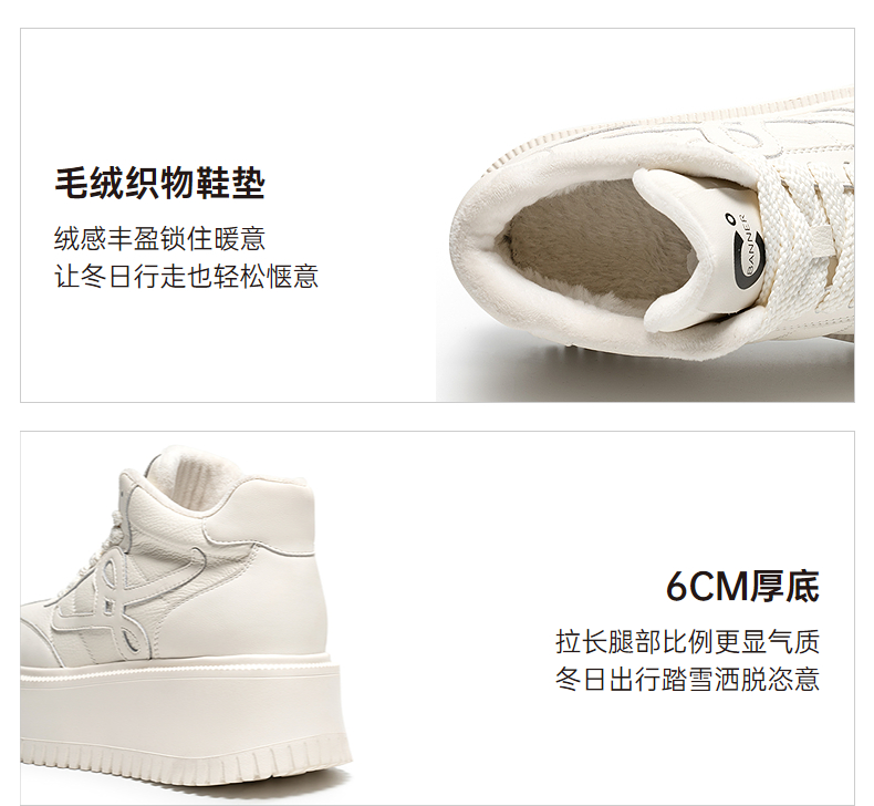 千百度厚底板鞋女款加绒高帮鞋小白鞋增高运动休闲鞋A25687095